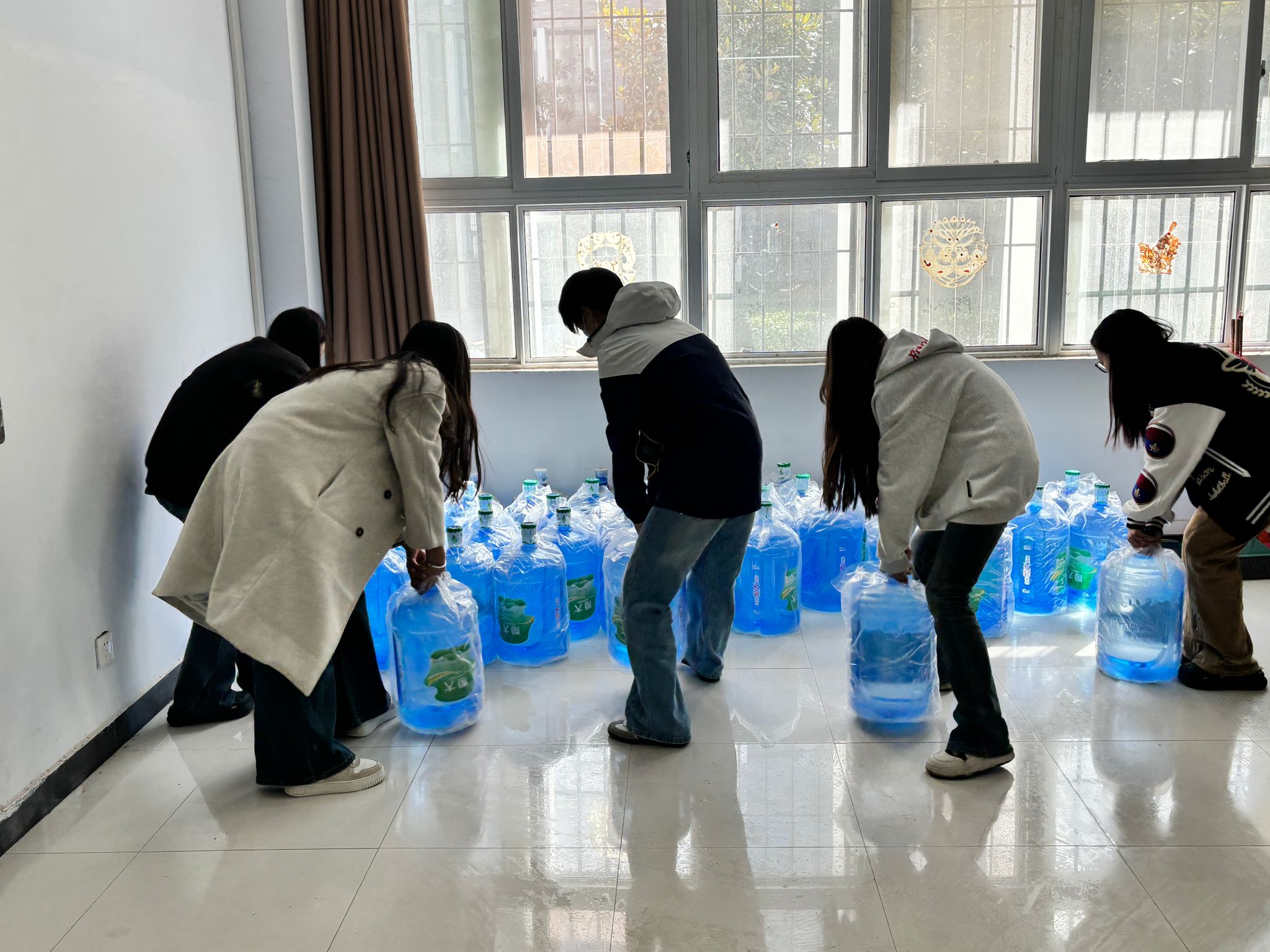 学员们分为“清洁组”与“搬运组”,迅速投入清扫,秉持“安全、彻底、高效”原则。清洁组持工具从门口向室内推进,用长柄刷清理蛛网角落,拿专门工具去除口香糖残渣,不放过任何卫生死角。搬运组干劲十足,合理分工,几人抬桌椅、两人搬展板,有人负责抱水桶,将重物搬运到指定位置摆整齐,高效完成任务,让杂物室布局规整有序。