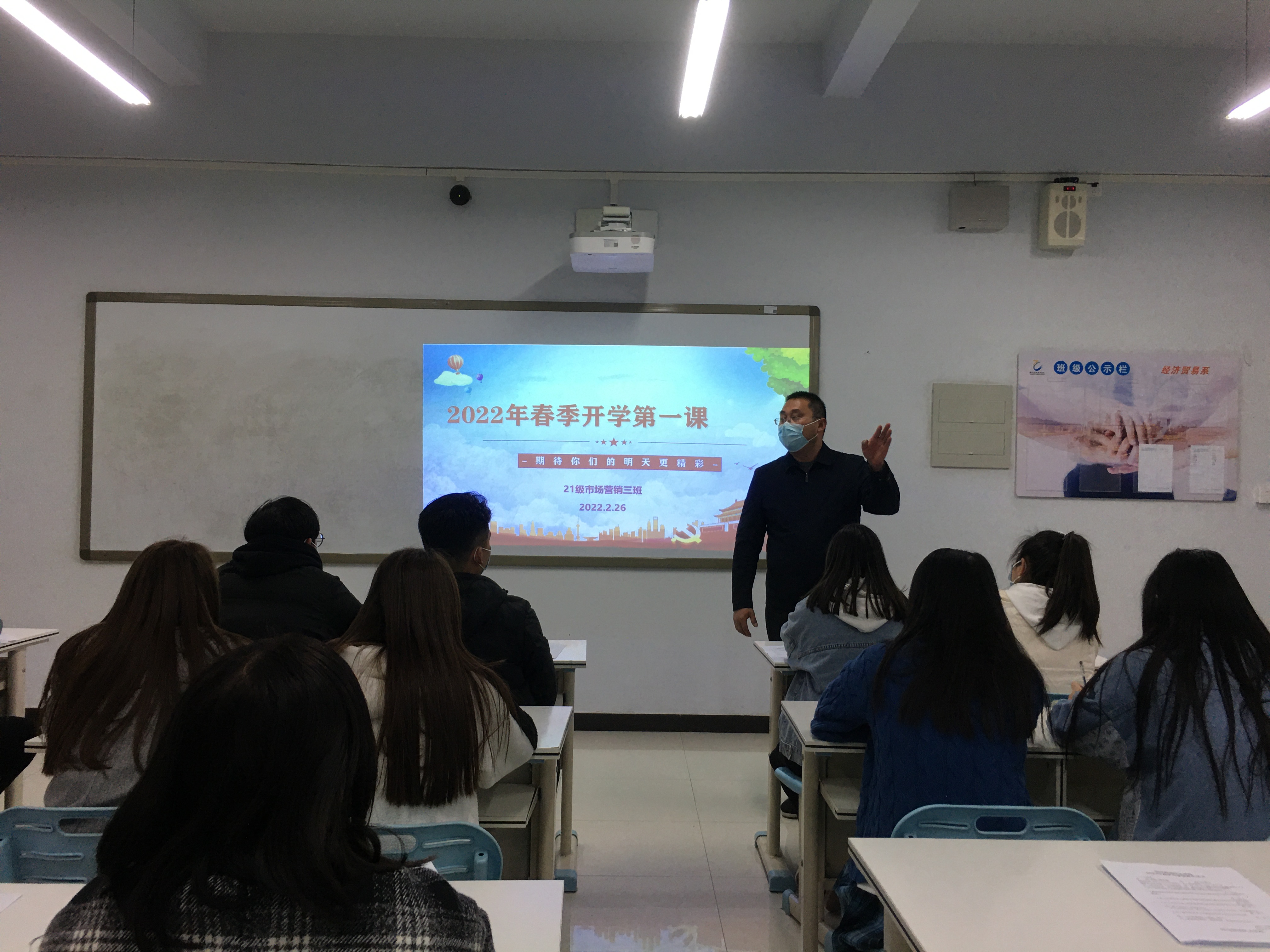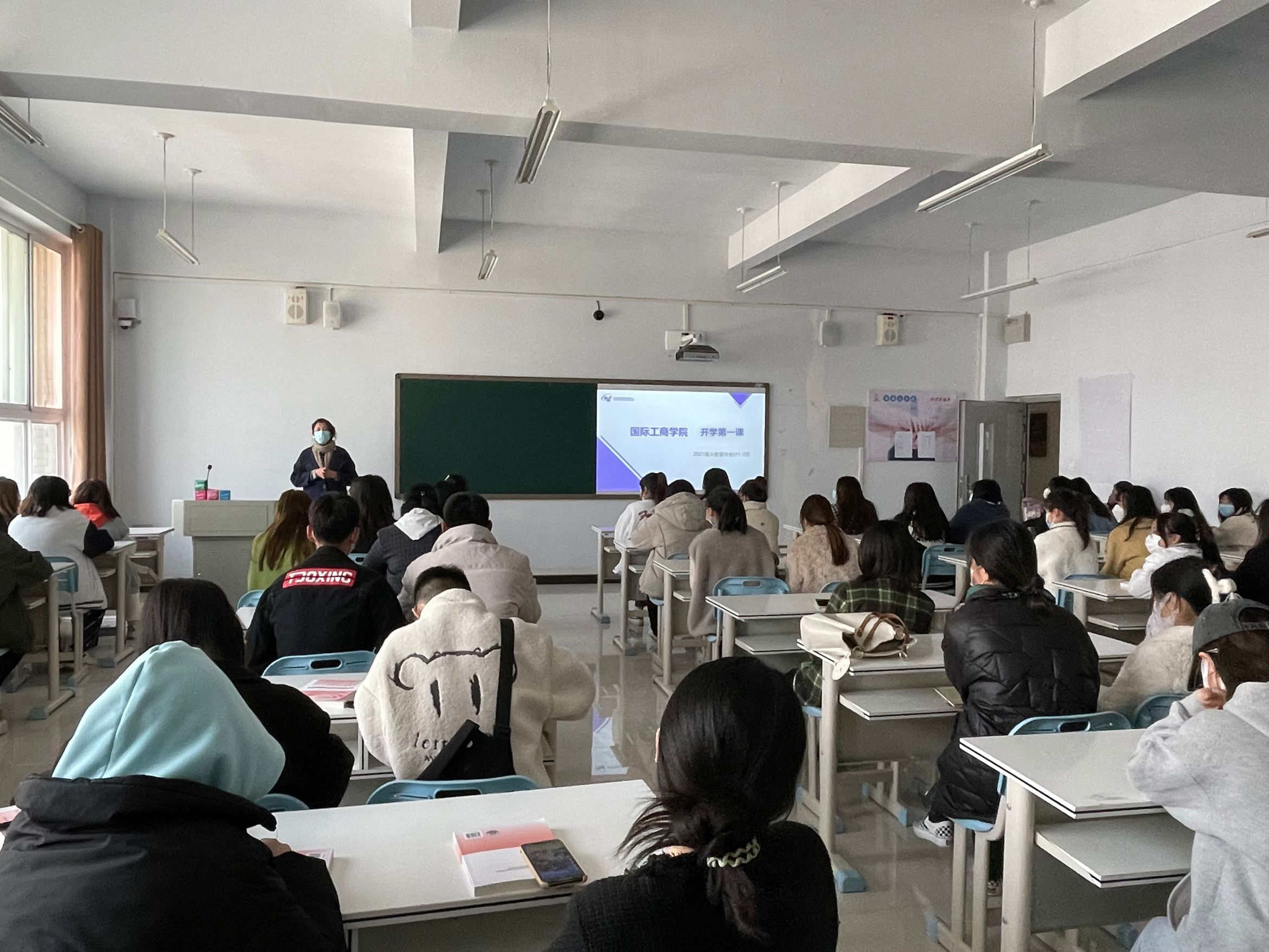 在开学第一课中,国际工商学院院长孙权深入各班为学生带来新学期寄语:梦想、计划、行动、规矩。他希望同学们在新的学期,及时调整状态,加强身体锻炼,做好日常防疫,追逐梦想,科学计划,行动迅速,素养培养,以崭新的面貌开启新生活。