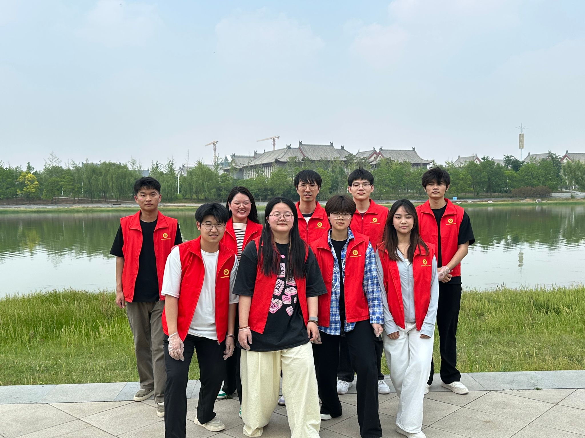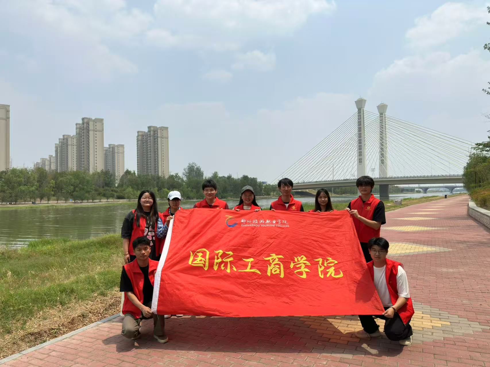 为深入贯彻“绿水青山就是金山银山”的绿色发展理念,将“立足岗位做贡献”的精神切实融入到每次行动,用青春力量为守护美好家园添砖加瓦,5月28日下午,国际工商学院学生党支部书记葛秀丽老师、志愿者领队李书舟老师带领入党积极分子和青志部志愿者开展了“立足岗位做贡献,贾鲁净岸护清波”主题志愿活动,志愿者们以党旗为指引,用“志愿红”晕染“生态绿”,在贾鲁河畔书写新时代青年的担当诗篇。