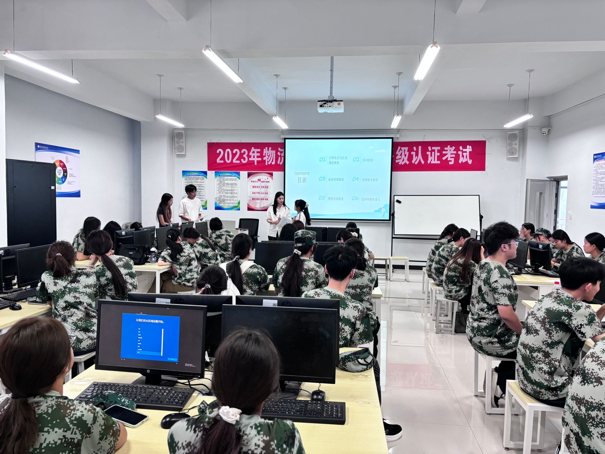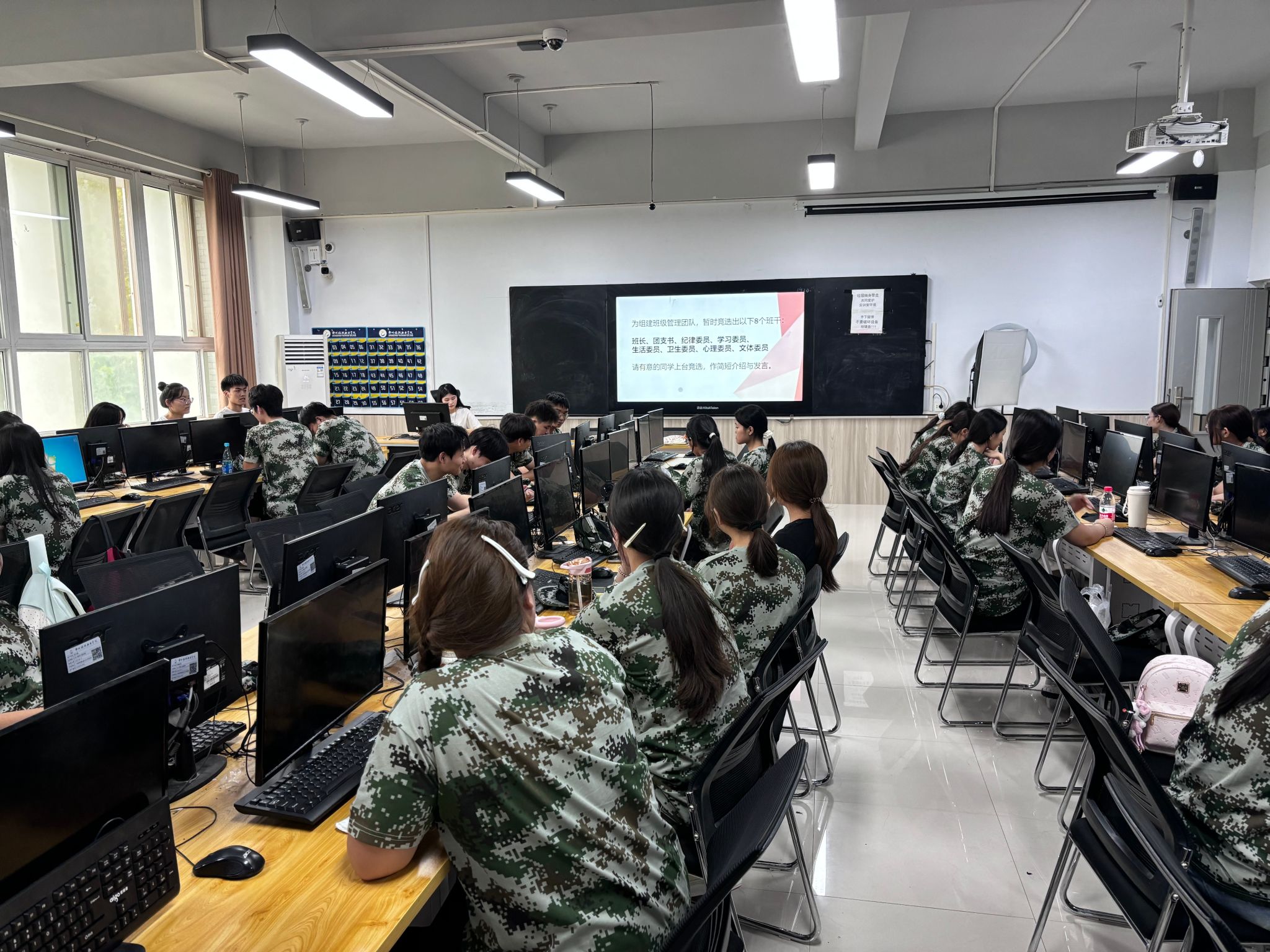 接着,班主任结合新生实际情况,进一步强调军训对于提升个人纪律性、塑造集体意识的作用,引导学生正视军训挑战,以团结协作的态度迎接训练。同时,辅导员老师进入班级向同学们明确军训期间的注意事项:着装方面需严格按照要求穿戴军训服装,保持整洁规范;纪律上要严格遵守军训作息时间,做到不迟到、不早退、不缺勤;身体方面若有不适要及时报告教官、班主任或辅导员,避免硬撑;训练中要认真听从教官指令,规范完成每一个动作。同时,要求同学之间要相互关照,看到他人有困难主动伸出援手。