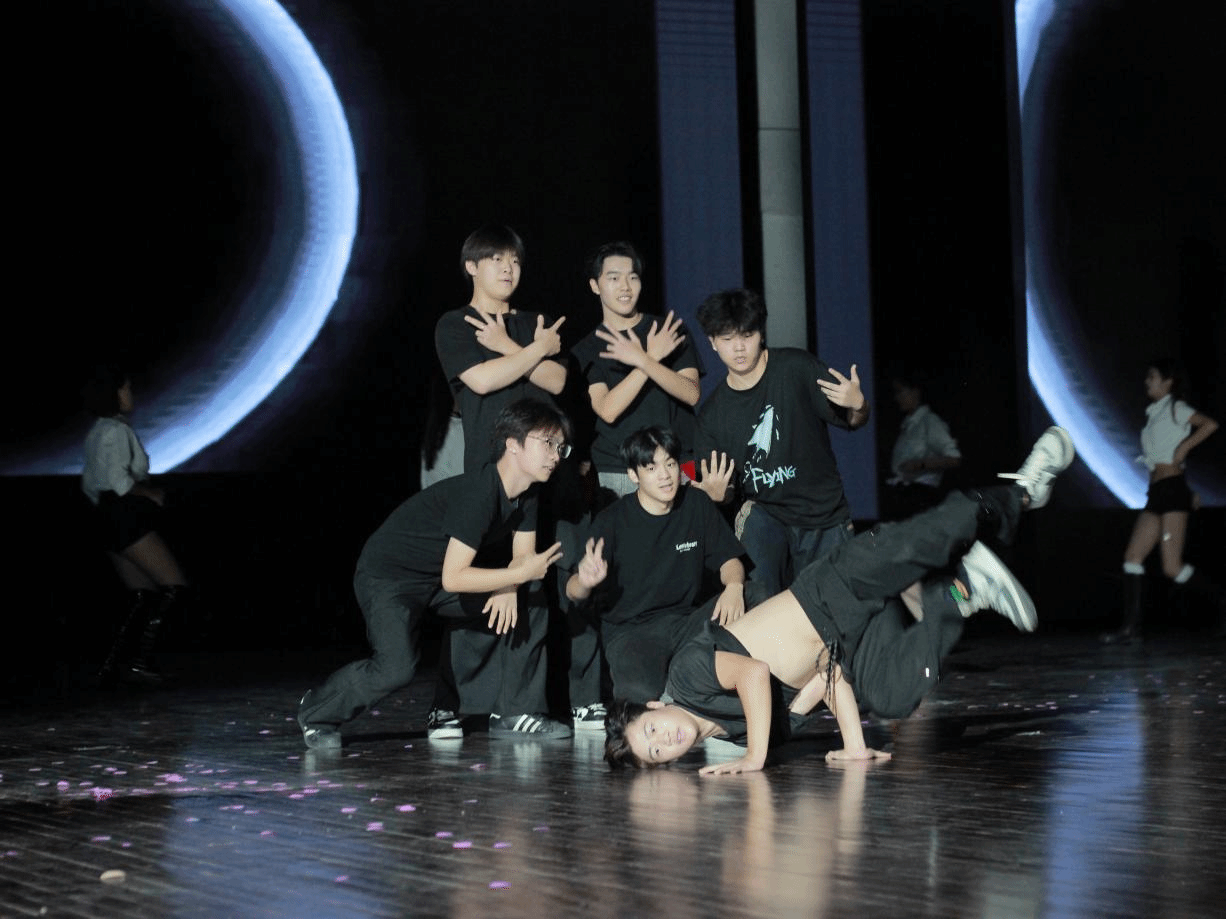 晚会其他节目同样亮点纷呈:街舞社带来的《Dance Shot》,以酷炫的动作、强劲的爆发力,展现出学子们的张扬与自信;吉他社弹唱的《海阔天空》,悠扬琴声搭配深情演唱,引发全场师生跟唱;歌曲《向云端》以清澈嗓音传递对未来的憧憬;民族古典舞《青花瓷》则以优雅的舞姿、古典的韵味,将传统文化之美展现得淋漓尽致。