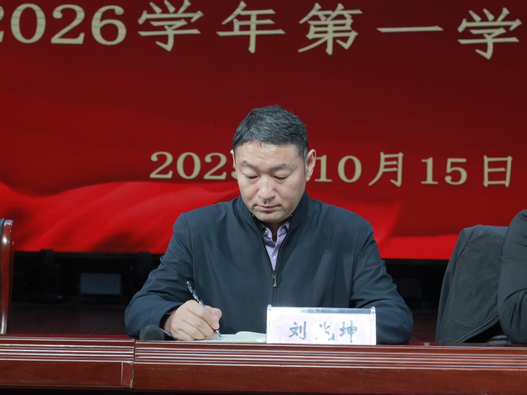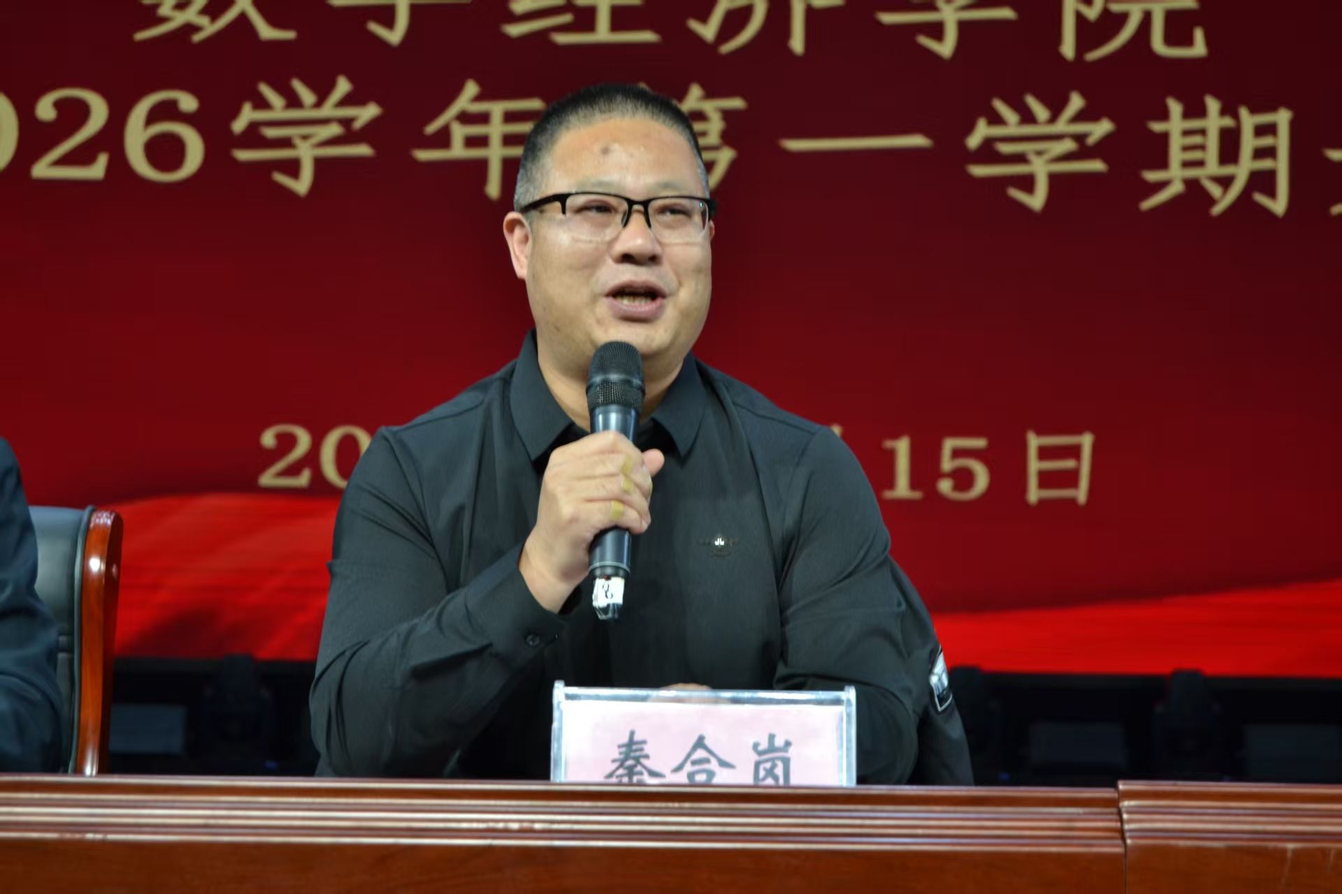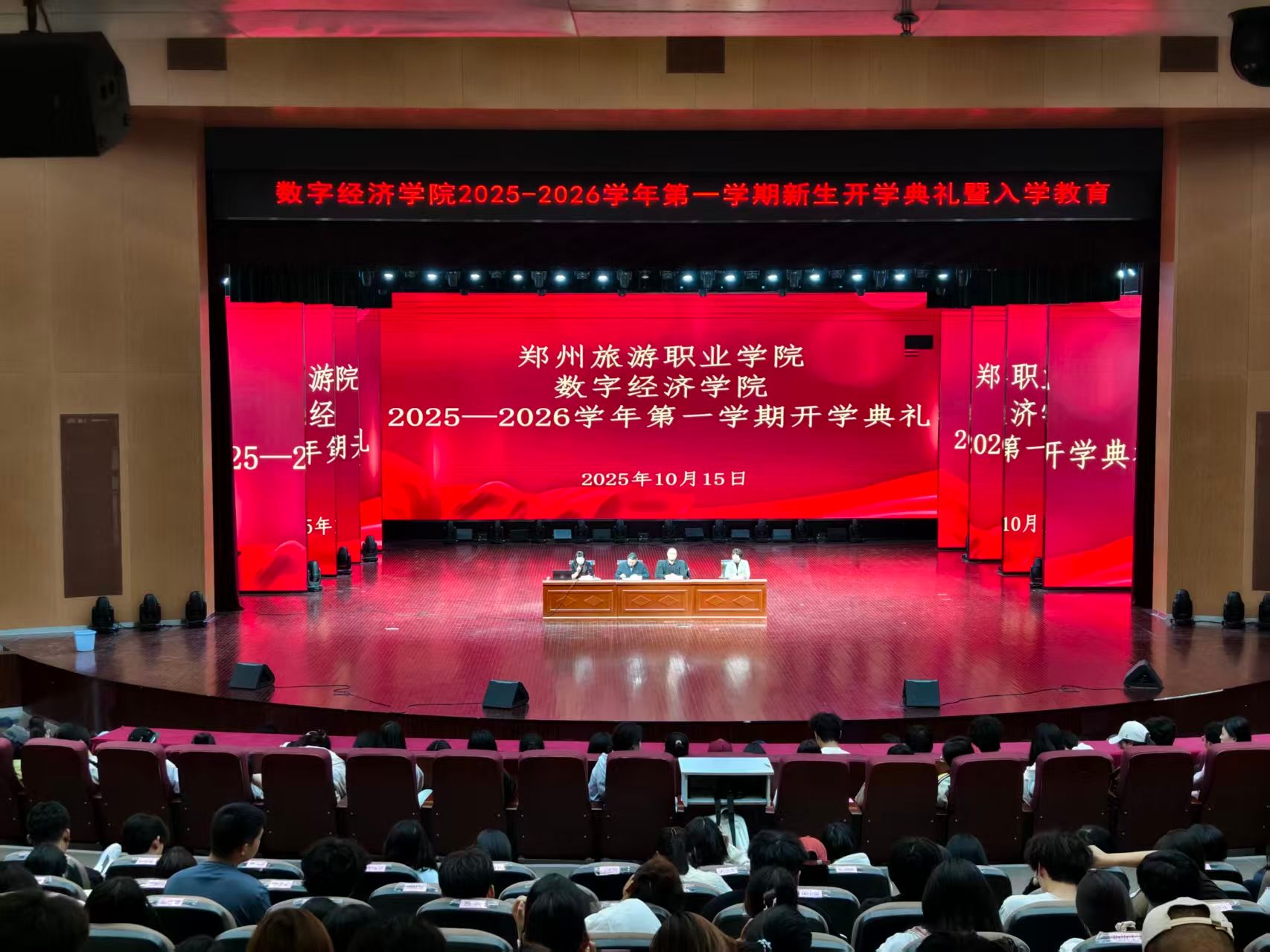 为助力新生开启美好大学生活,凝聚学院发展新力量,10月15日,pp电子游戏平台网站数字经济学院2025 - 2026学年第一次开学典礼于学院礼堂举行。学院党总支书记刘兆坤、院长秦合岗、副院长郭崖、团总支书记谢锡莹和学工办主任葛秀丽及全体新生辅导员到场,与全体新生共赴这场青春之约。