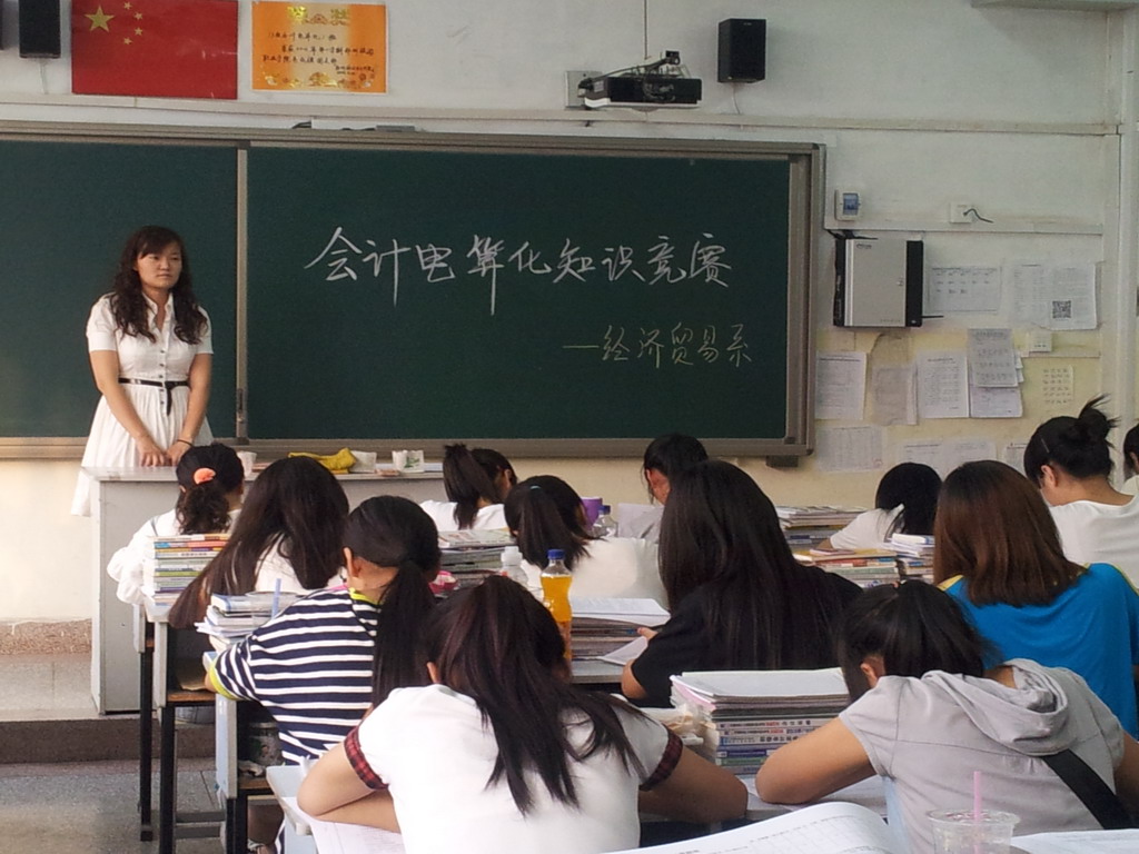 为了巩固会电专业知识,锻炼财会思考能力,展示会计风采,使同学们对会计基础知识更全面、更深入的了解,同时能将所学到的知识应用于日常生活中去。在经济贸易系孙主任的关心支持、会电专业教研室熊玮主任的统一协调组织下,2014年6月4日下午举办了会计电算化知识竞赛。
