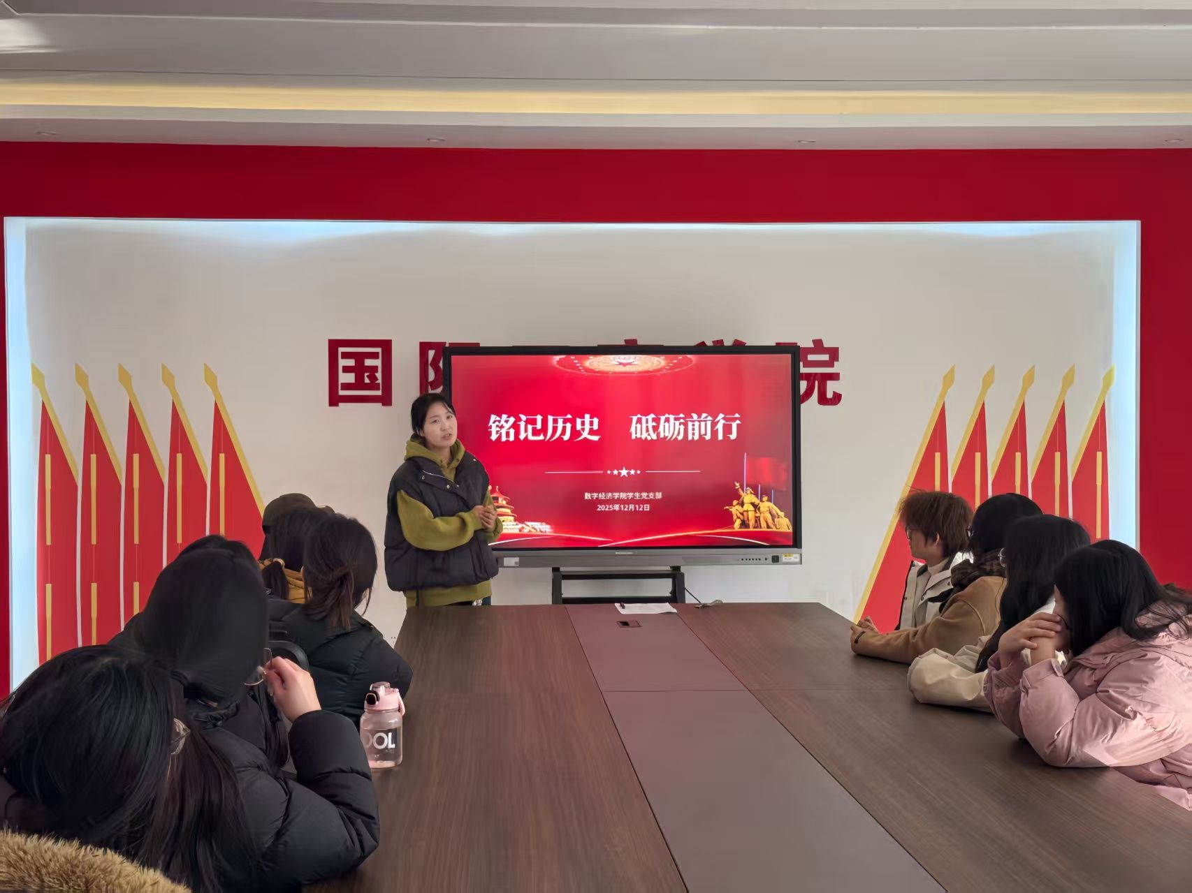 为深切缅怀南京大屠杀遇难的同胞,弘扬伟大爱国主义精神、伟大抗战精神,2025年12月12日,数字经济学院学生党支部在1B303党建活动室组织开展了“铭记历史、砥砺前行”主题观影活动。