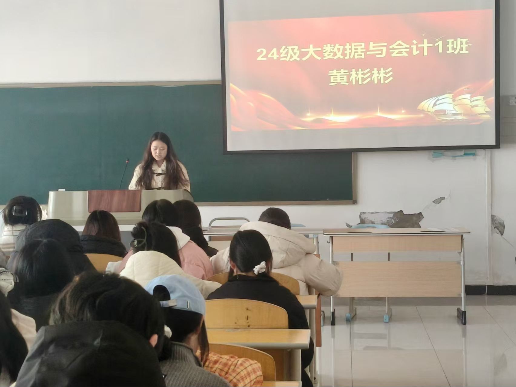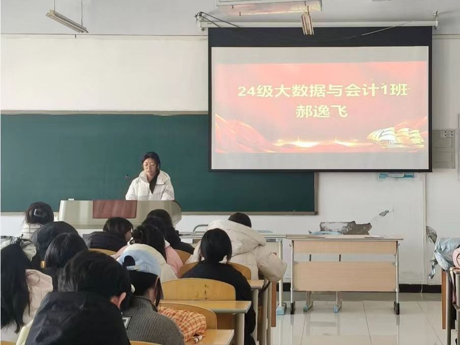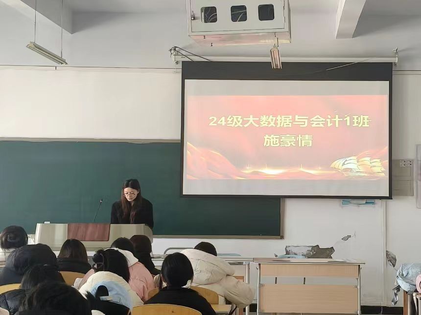 会议伊始,24级大数据与会计班的三位获奖者郝逸飞、黄彬彬和施豪情率先登场分享。郝逸飞同学聚焦英语高效记忆策略等核心要点,展开深入讲解,为同学们提供了实用的英语学习方法。黄彬彬和施豪情同学则分别从学习规划与调整方法两个板块切入,结合自身经验娓娓道来。现场氛围热烈融洽,干货满满,同学们听得全神贯注,不时记录要点。