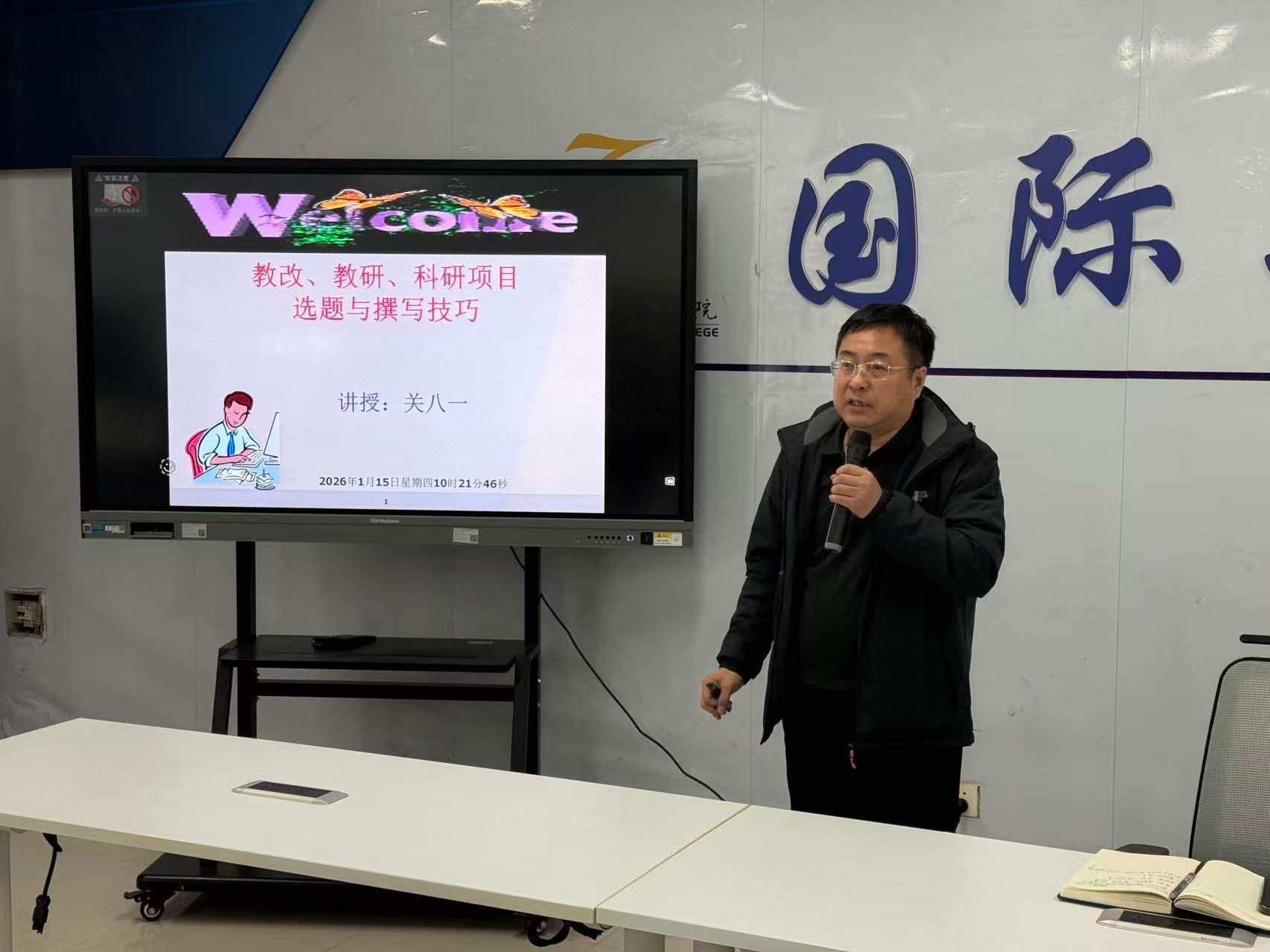 为提升学院教师的教改、教研与科研项目申报能力,助力教师在项目选题与撰写上突破瓶颈,1月16日,数字经济学院于 1B304 会议室举办专题培训,学院副院长、教授关八一担任主讲人,全体教职工参与此次学习。