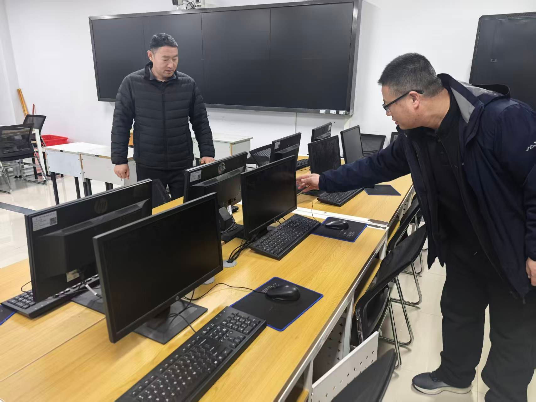 此次排查聚焦安全关键领域,重点对教学楼公共区域及教学实训场所进行全面排查。在公共区域,检查人员逐一核查门窗锁具完好情况,细致检查消火栓、灭火器等消防设施的压力数值、有效期及摆放位置,确保应急通道畅通无阻、消防器材随时可用;深入教室与实训室后,对电子教学设备、空调、配电箱等用电设施进行全面“体检”,重点排查线路老化、设备漏电、开关故障等潜在风险,确保排查无死角、无盲区。针对检查中发现的细微隐患,现场立即落实整改,实现“即查即改、立行立改”,及时将风险消除在萌芽状态。