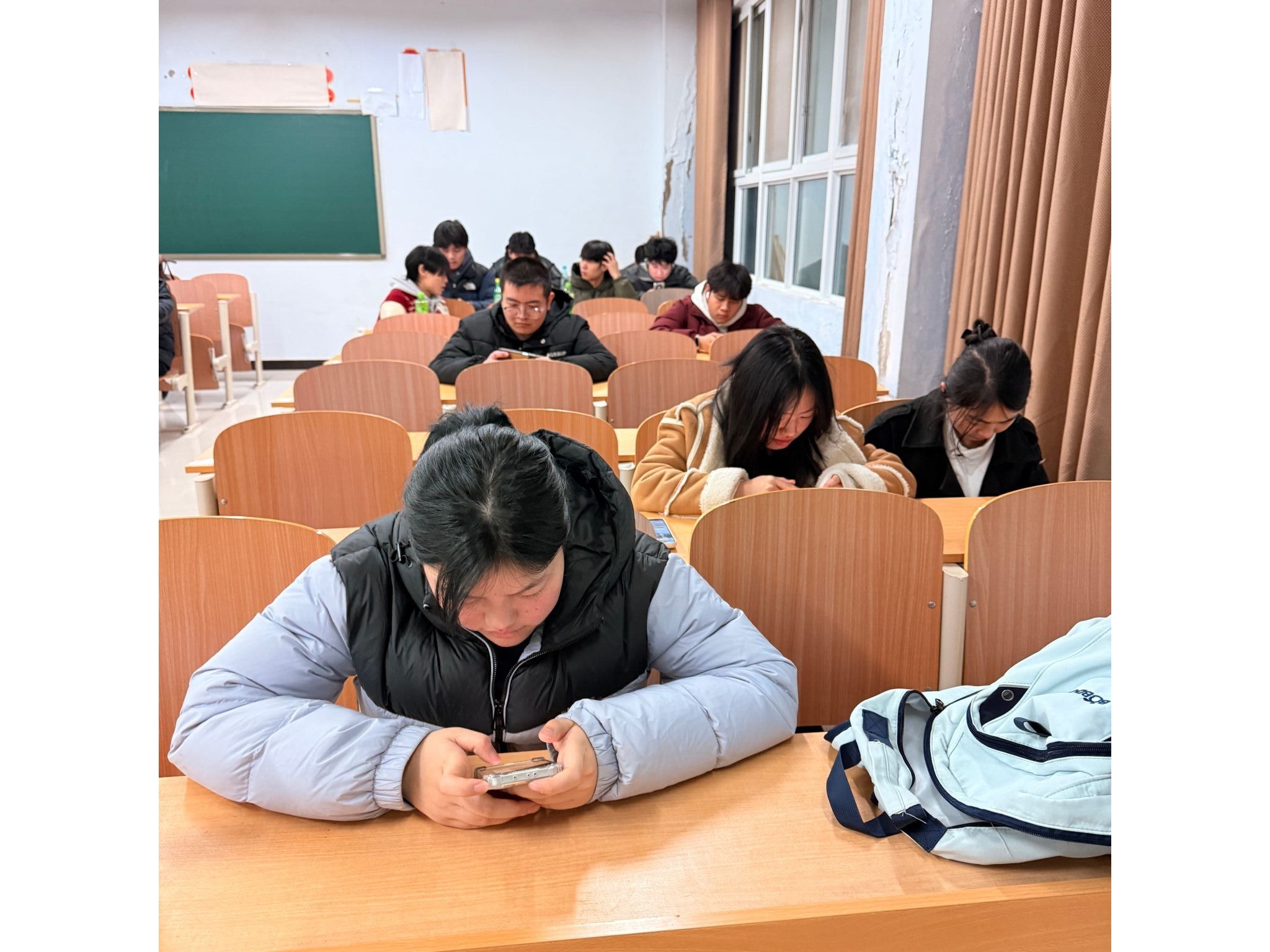 (学生用手机在线上进行心理测评)
