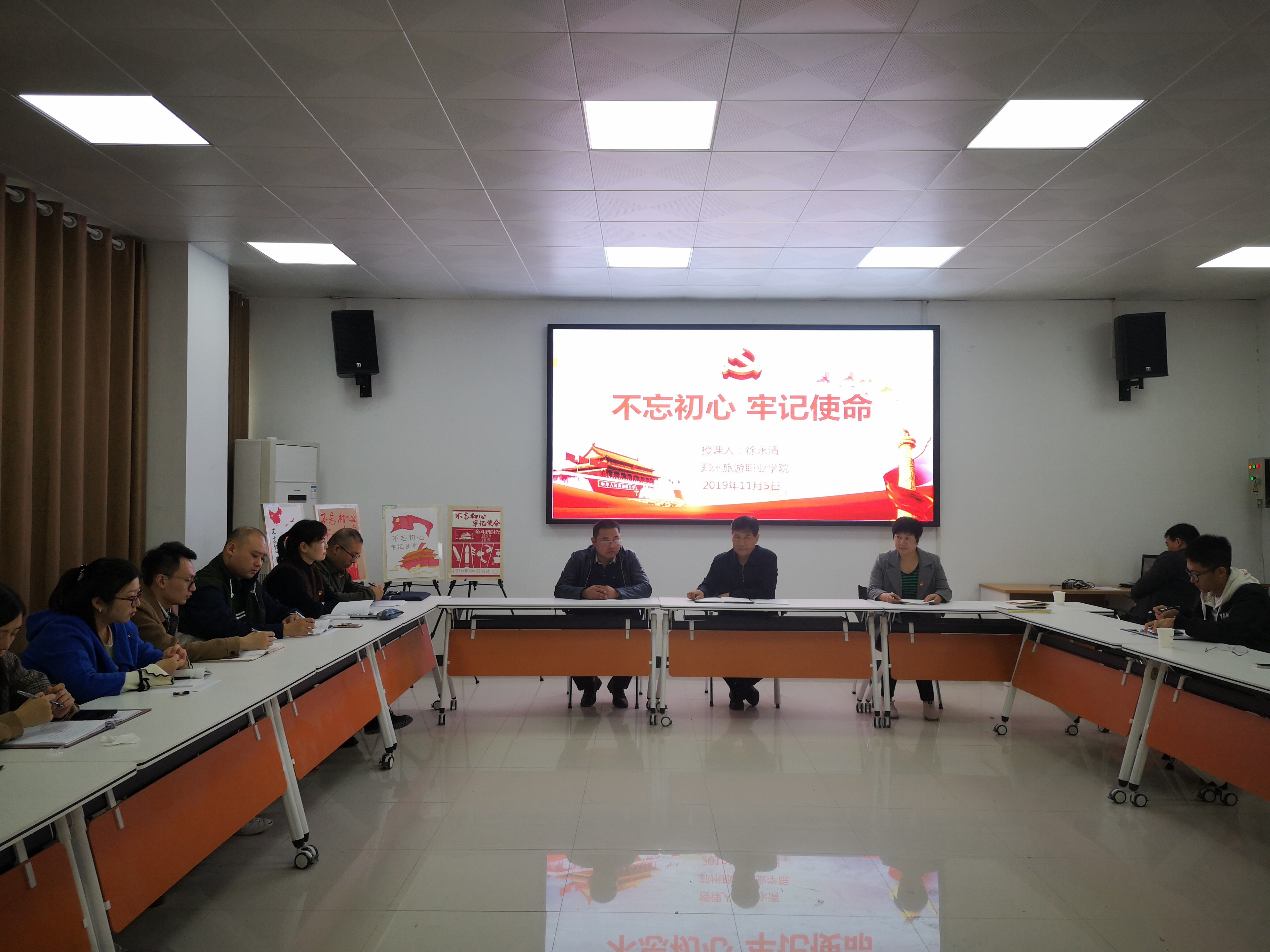 2019年11月5日下午,pp电子游戏平台网站经济贸易系邀请到徐永清院长为经济贸易系党总支全体党员讲授党课,徐院长以“不忘初心、牢记使命”为题进行授课,党课在教学楼1A103会议室开展,此次党课由经济贸易系主任孙权主持,旅院经济贸易系全体师生党员20余人参加。