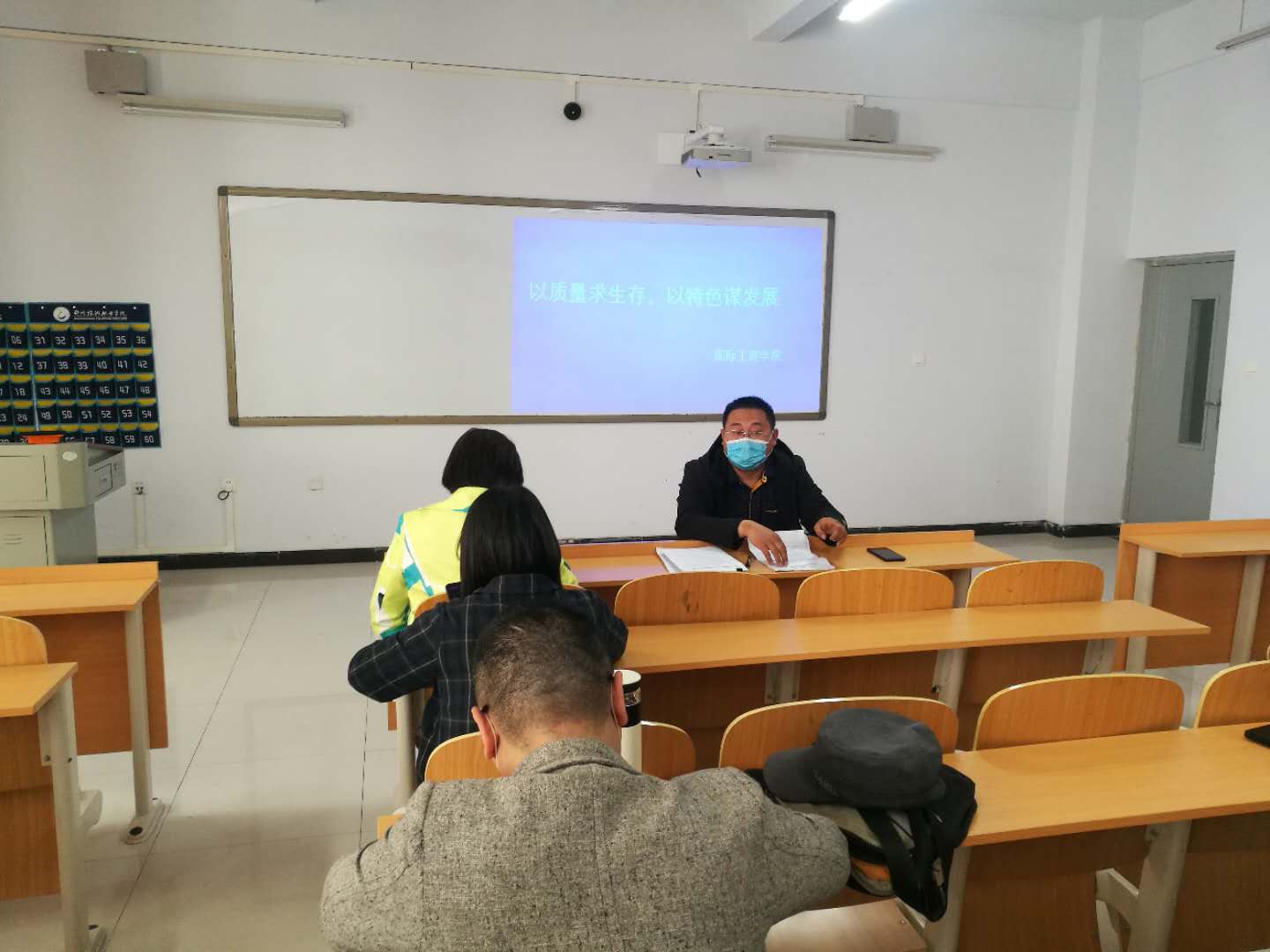4月29日中午1点半,国际工商学院教学楼203教室,我院副科级以上干部、新校区所有辅导员、新校区各在校班级班主任到校参加演练工作动员会,会议由国际工商学院院长孙权主持。
