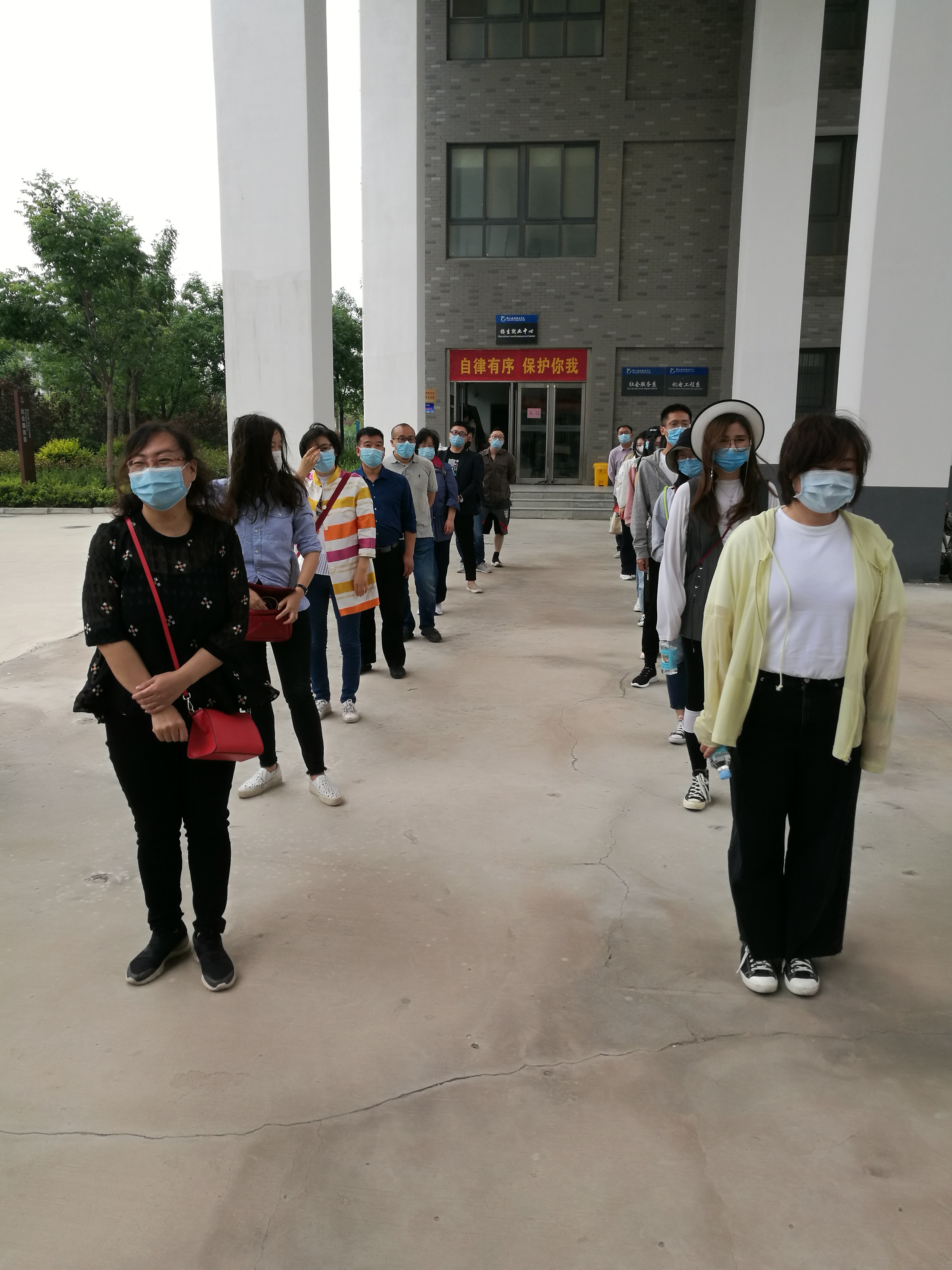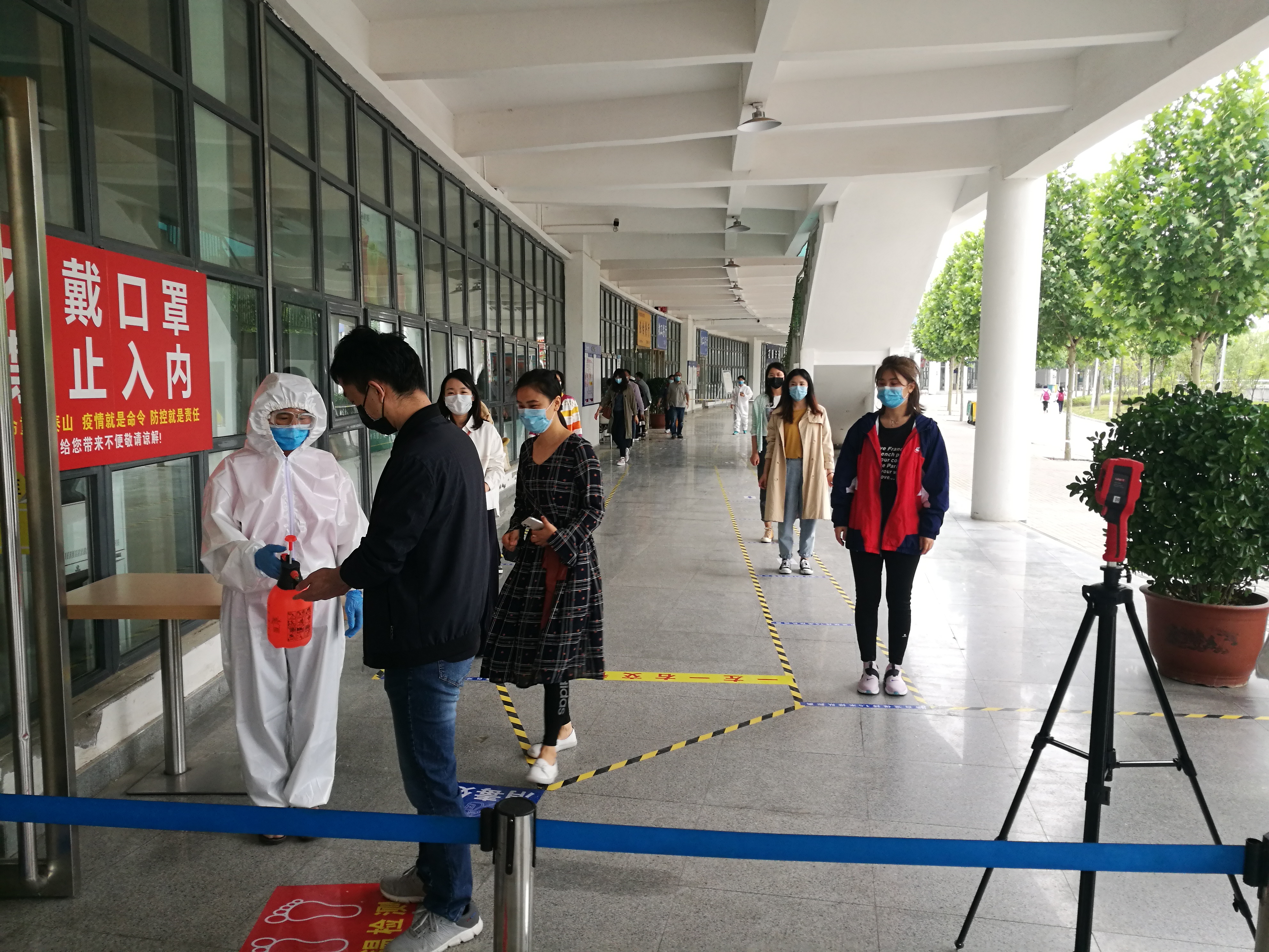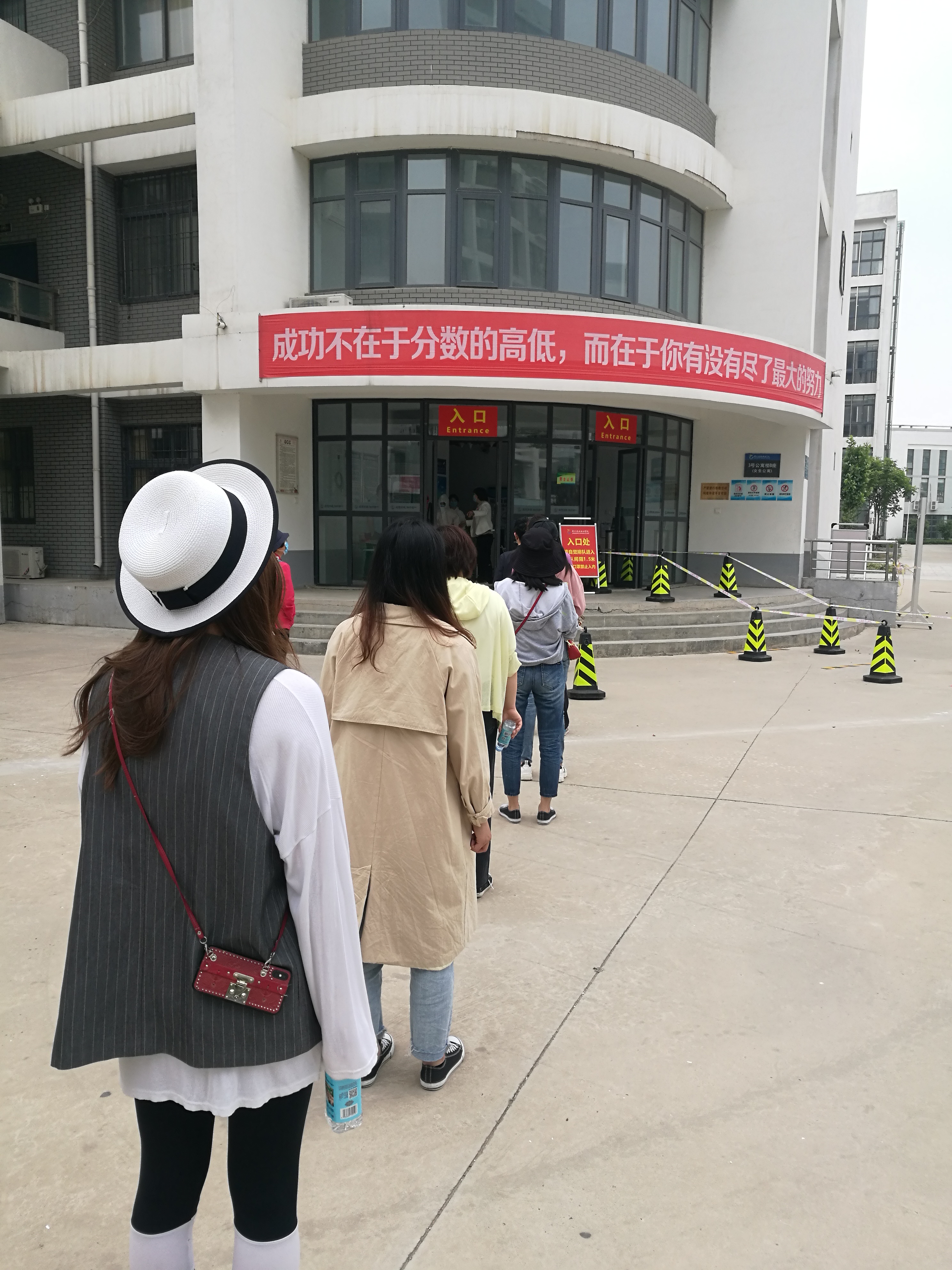 间隔一米排队准备进入宿舍
