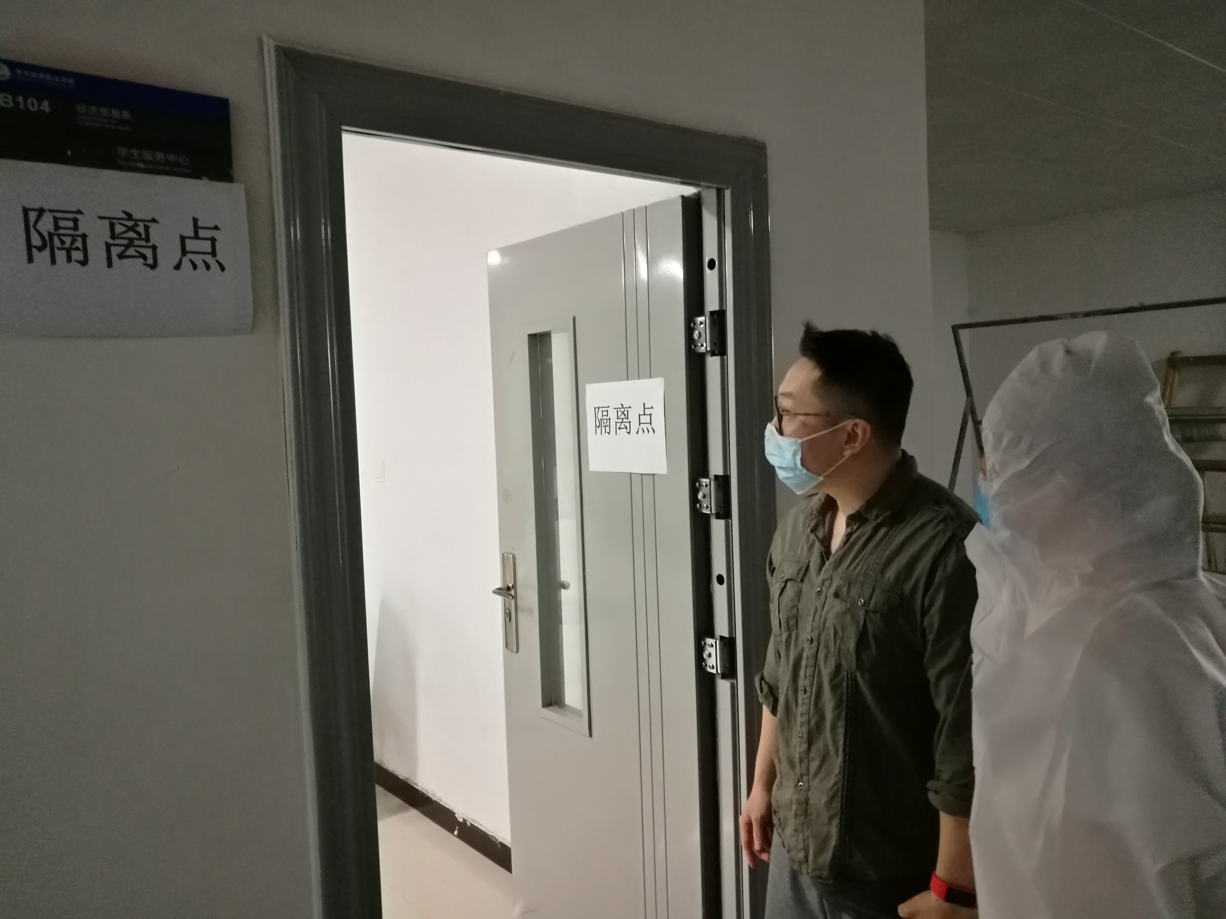 演练从教学楼门口到教室,从食堂到宿舍,始终严格按照学院要求:进出口分离、每人间隔一米、进门检查健康码、测量体温、手部清洁。并设有隔离室,安排老师演练发热情况处理流程。
