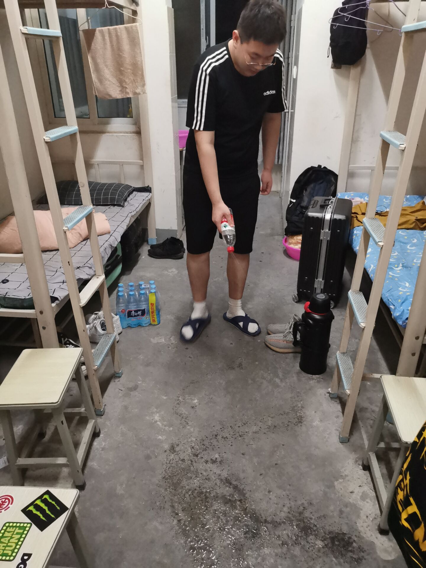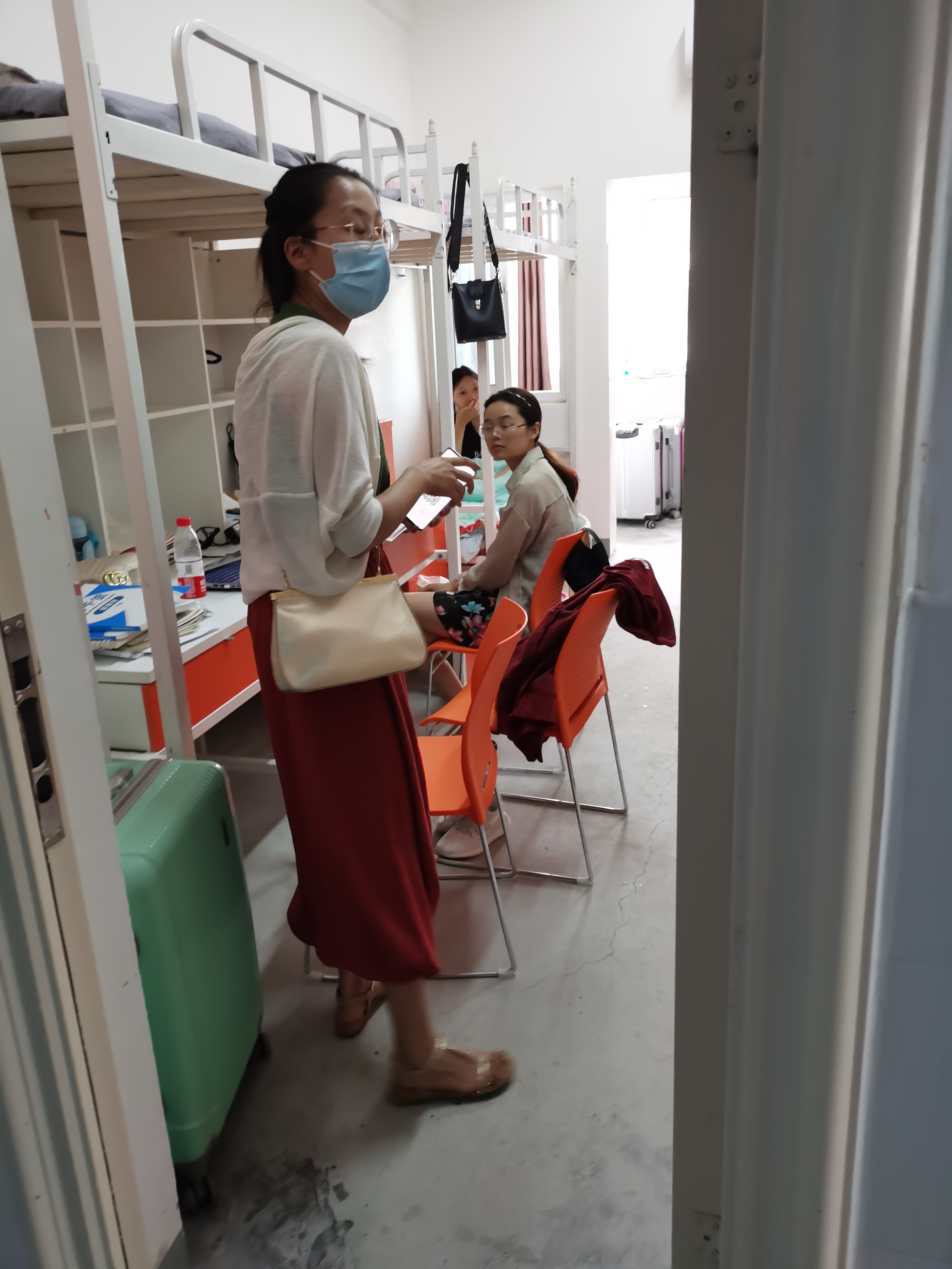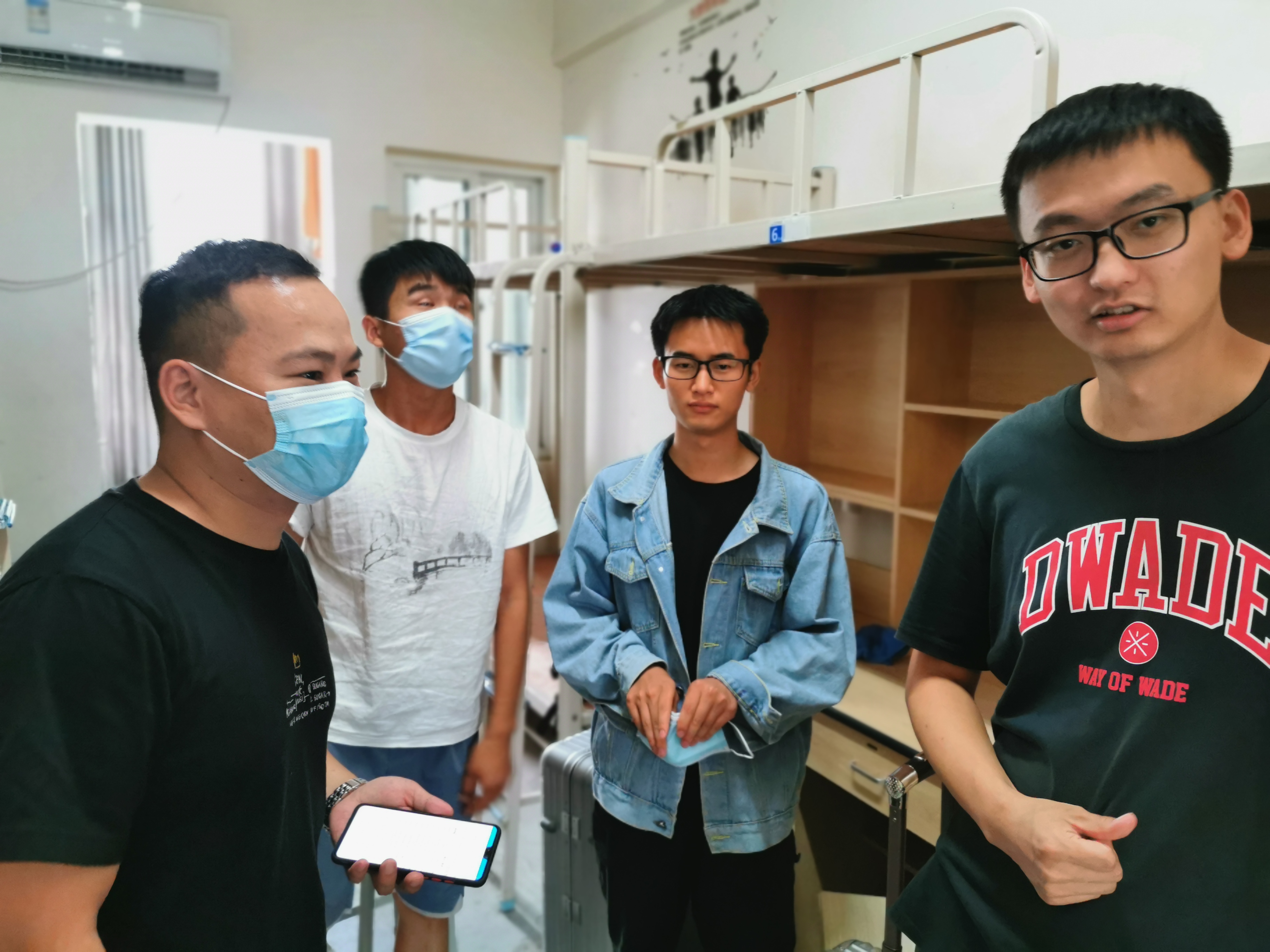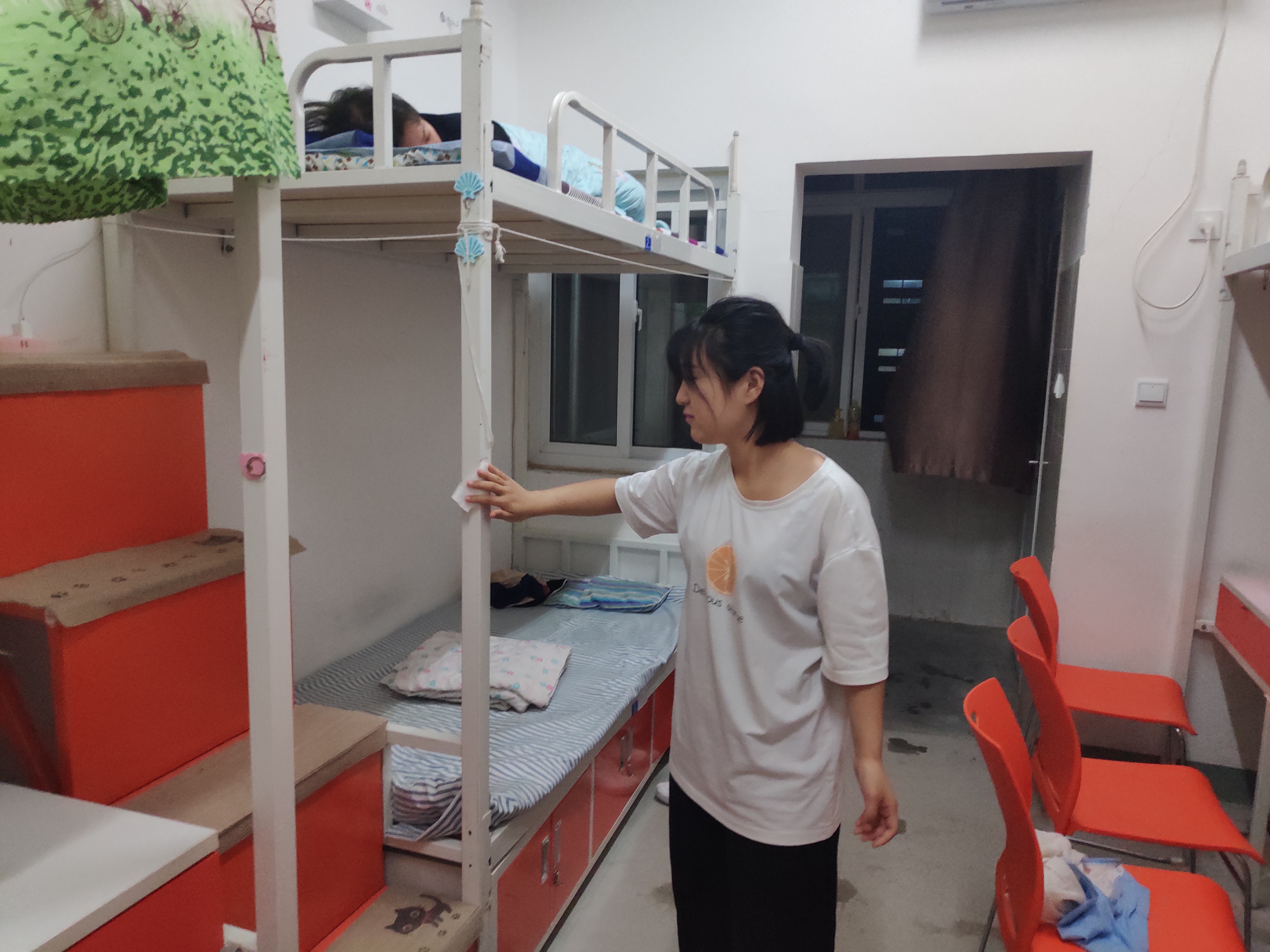 陈新老师查看学生宿舍