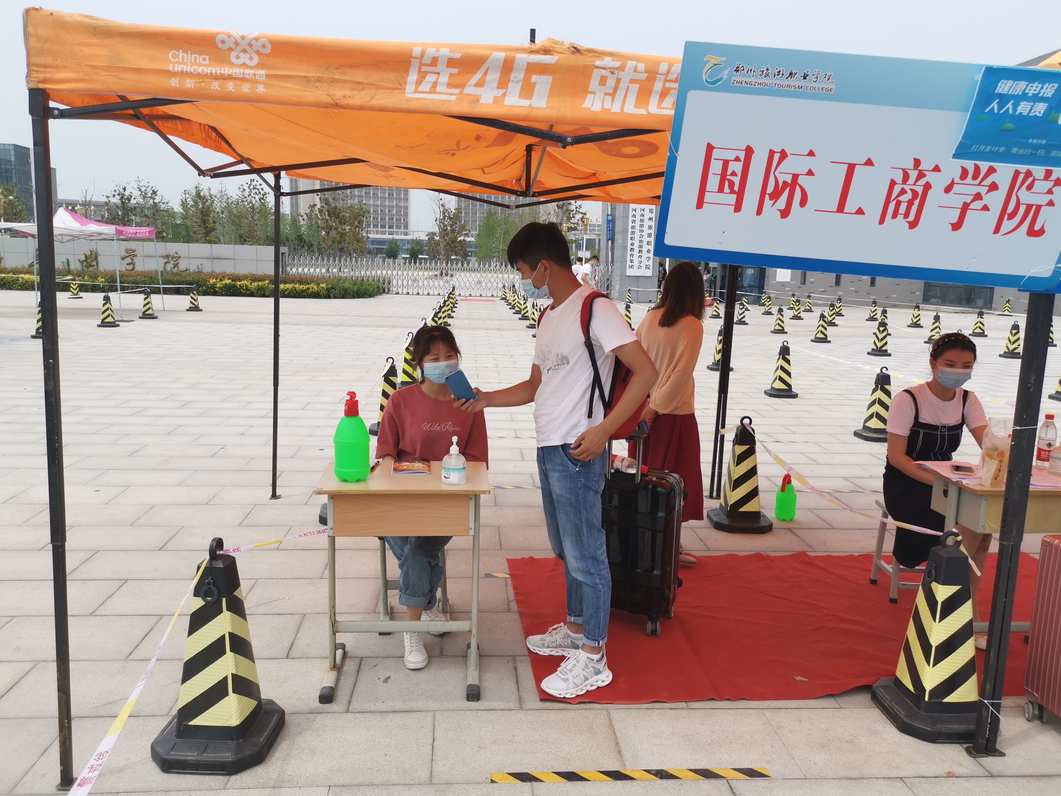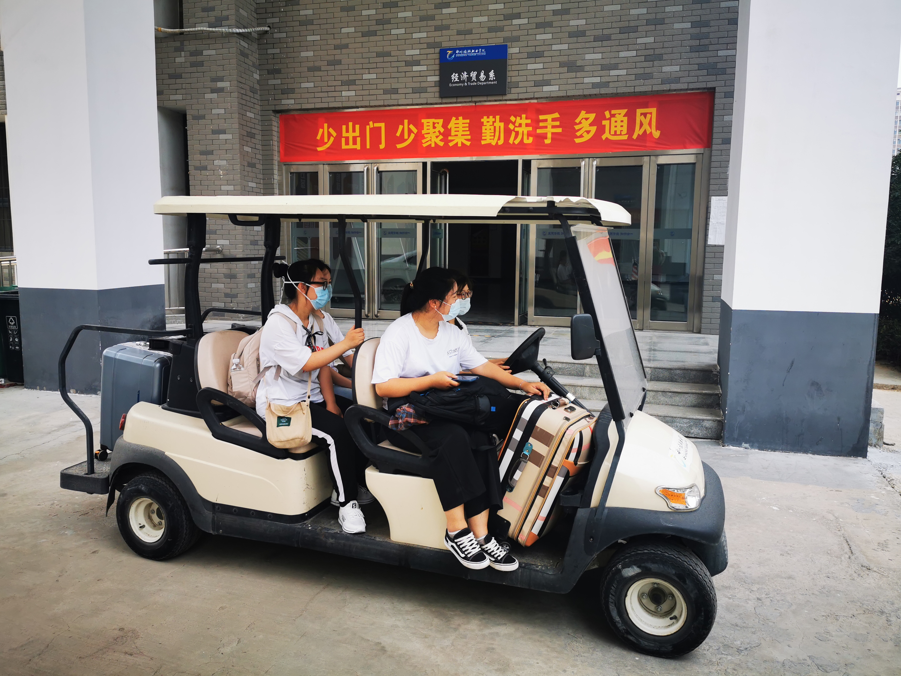 我院返校报到现场工作环环相扣,秩序井然。按照学校防疫要求,学生抵达校门口后,需完成行程扫码、来郑日期扫码、行李消杀、体温测量和出示钉钉健康打卡记录,经查验合格后方可入校。入校后,学生来到学院接待地点,向班主任提交个人健康记录表、办理返校手续,并领取《pp电子游戏平台网站校园疫情防控学习手册》、宿舍钥匙、消杀物品等。此外,我院专门从后勤处借来行电车帮助学生运送行李至宿舍,解决其行李运送难的问题。