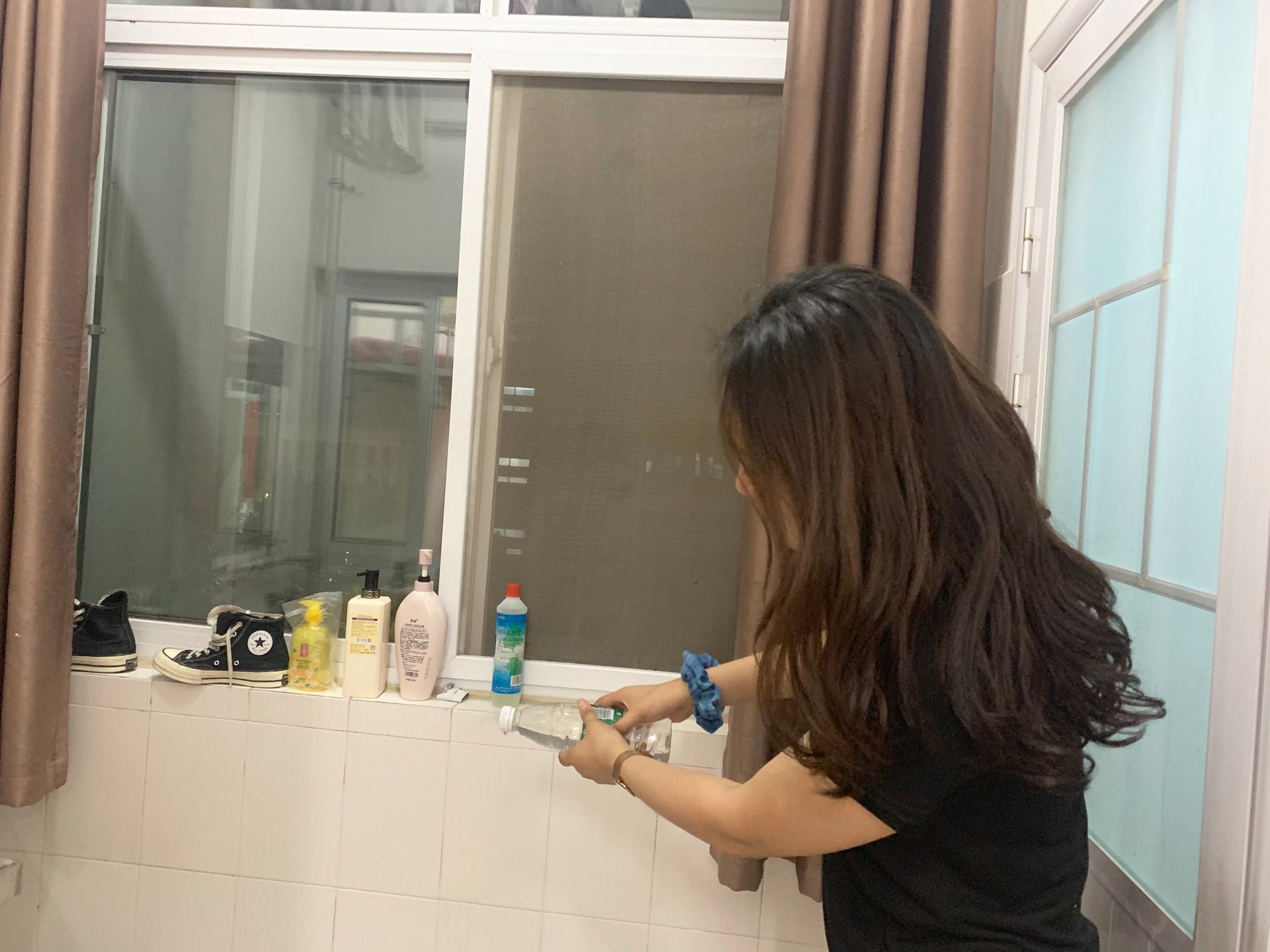 学生进行宿舍消毒
