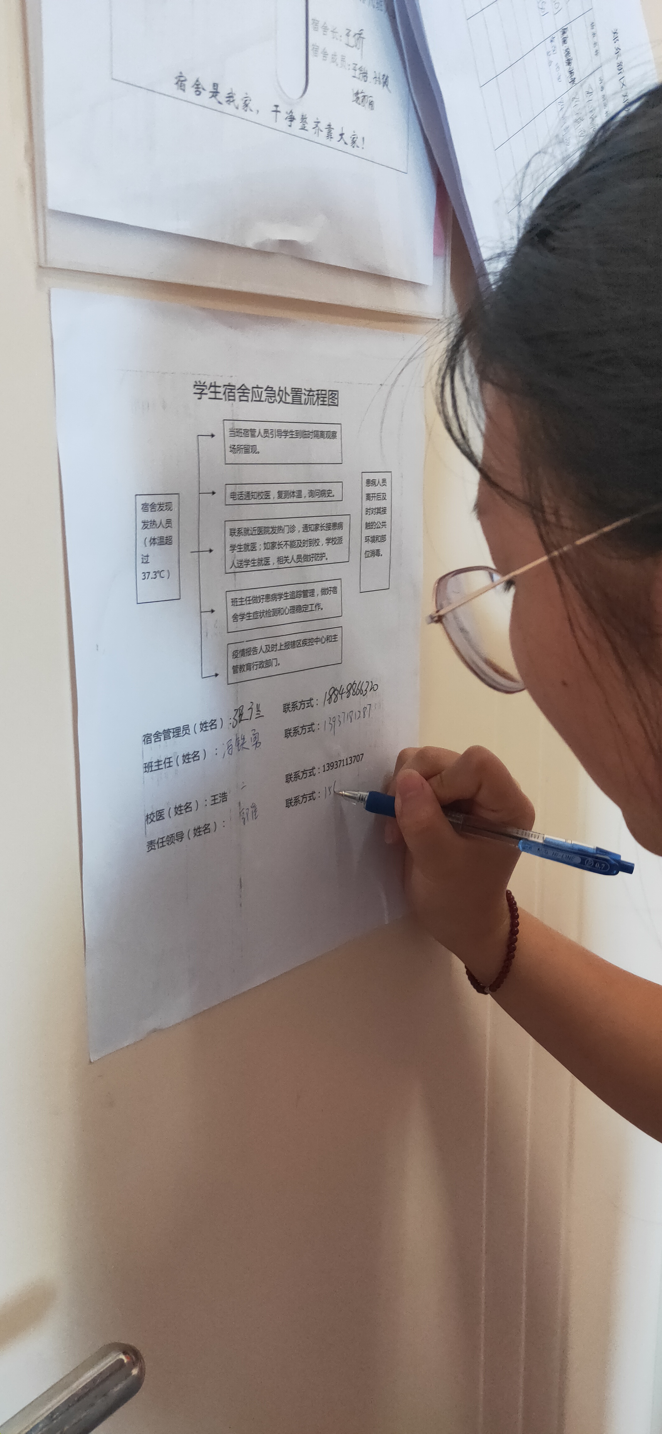 学生填写宿舍应急处置流程