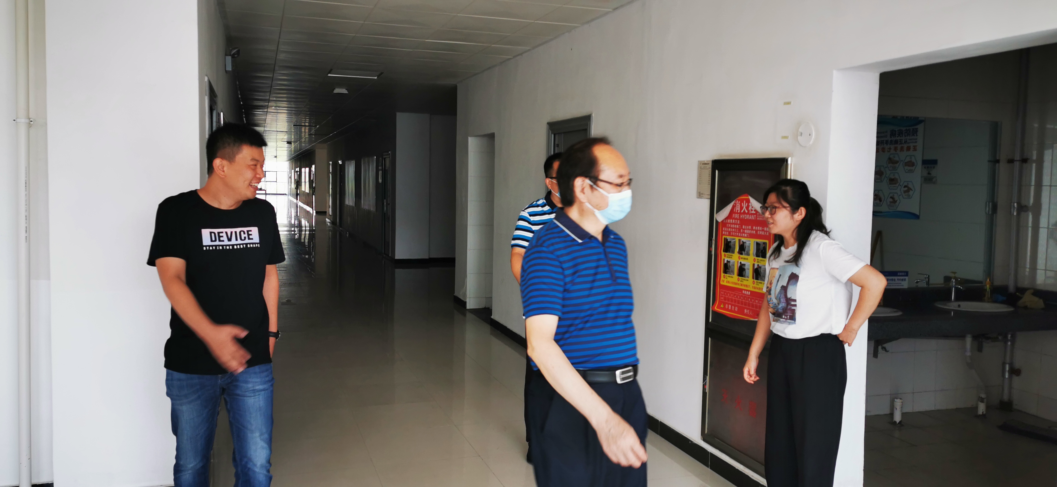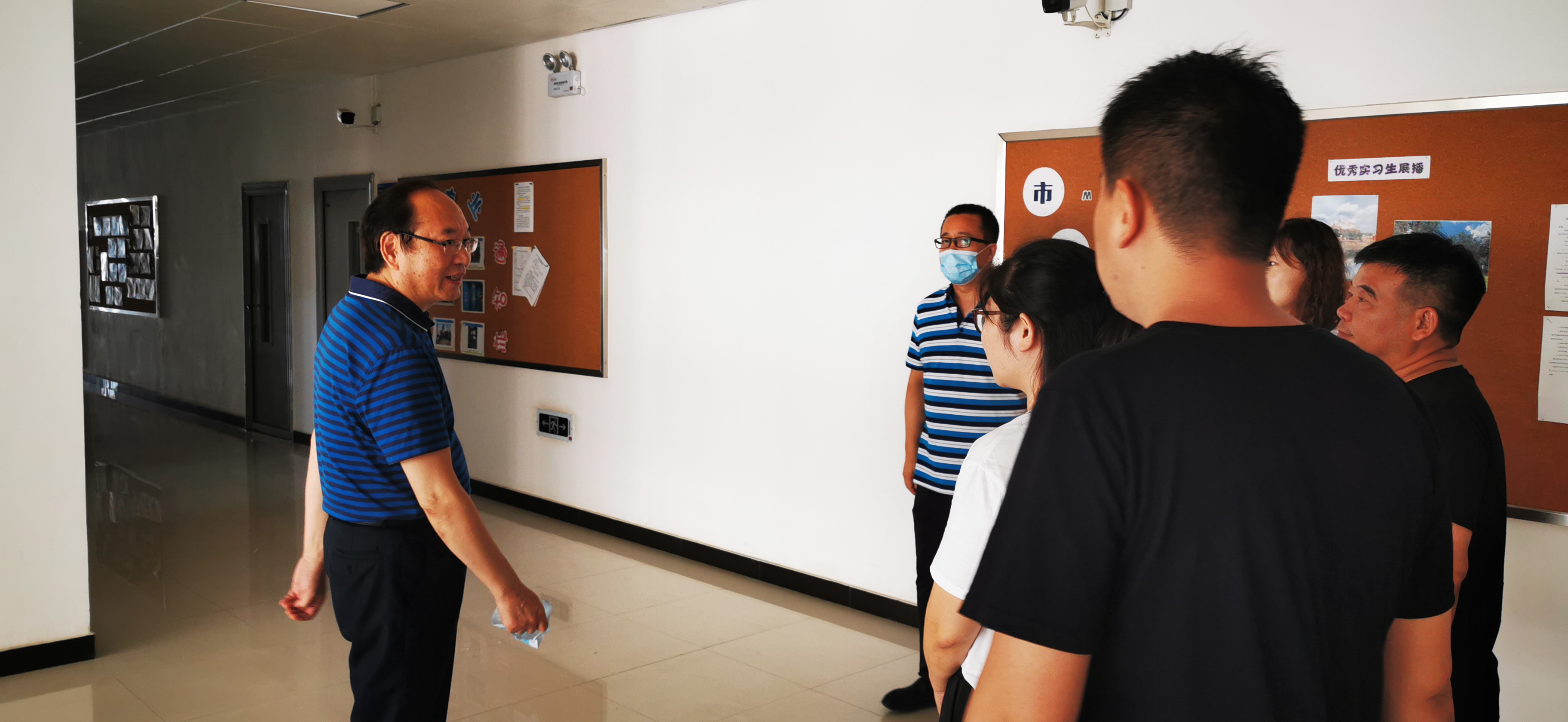 文院长一行实地查看我院防疫物资和落实情况并听取我院相关教师汇报工作。目前我院已落实学院要求,严格做好返校学生的疫情防护准备。随后,文院长到办公室查看了开学后教师的准备情况和到岗情况,并和教师们进行了亲切的交谈。