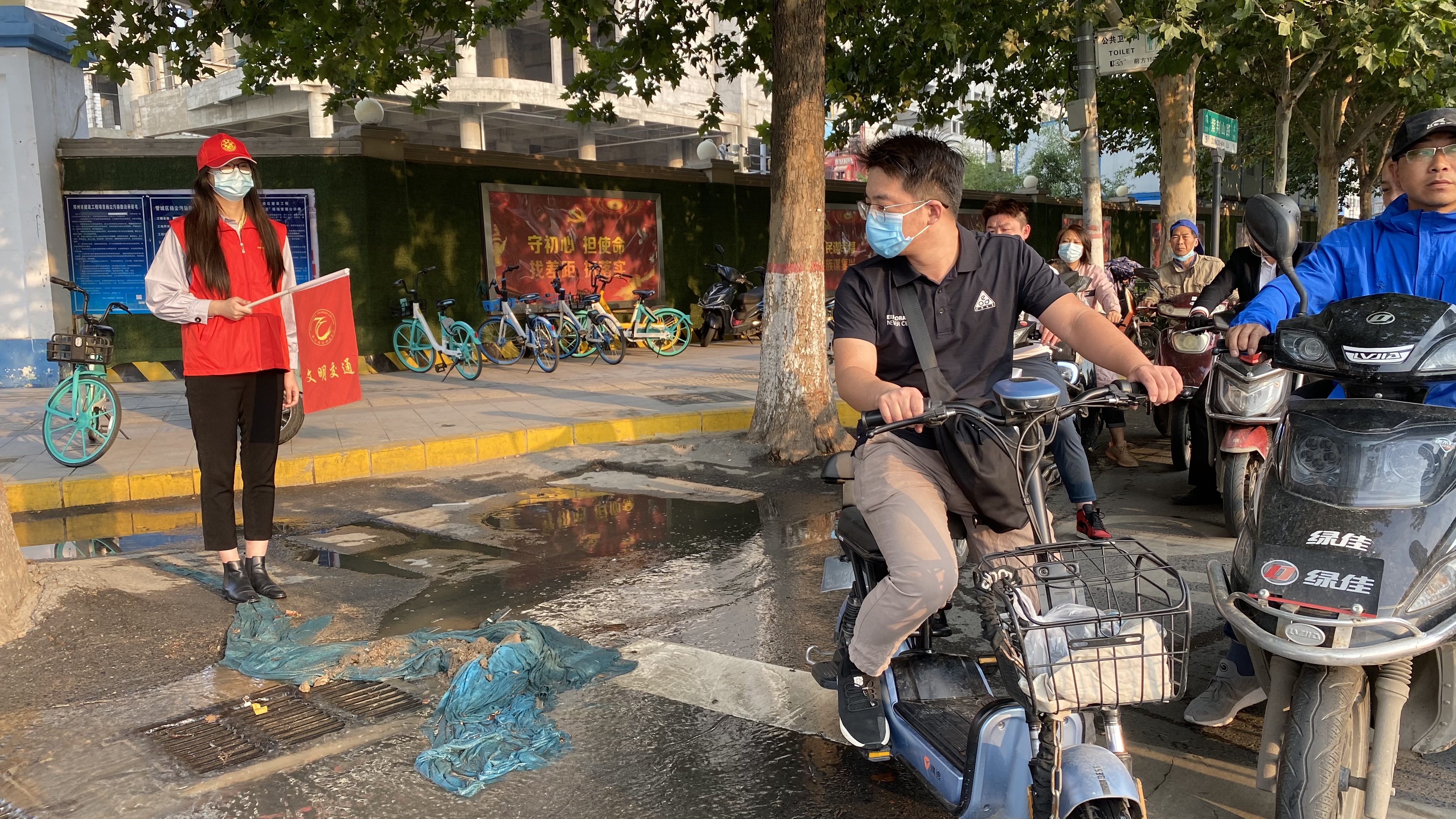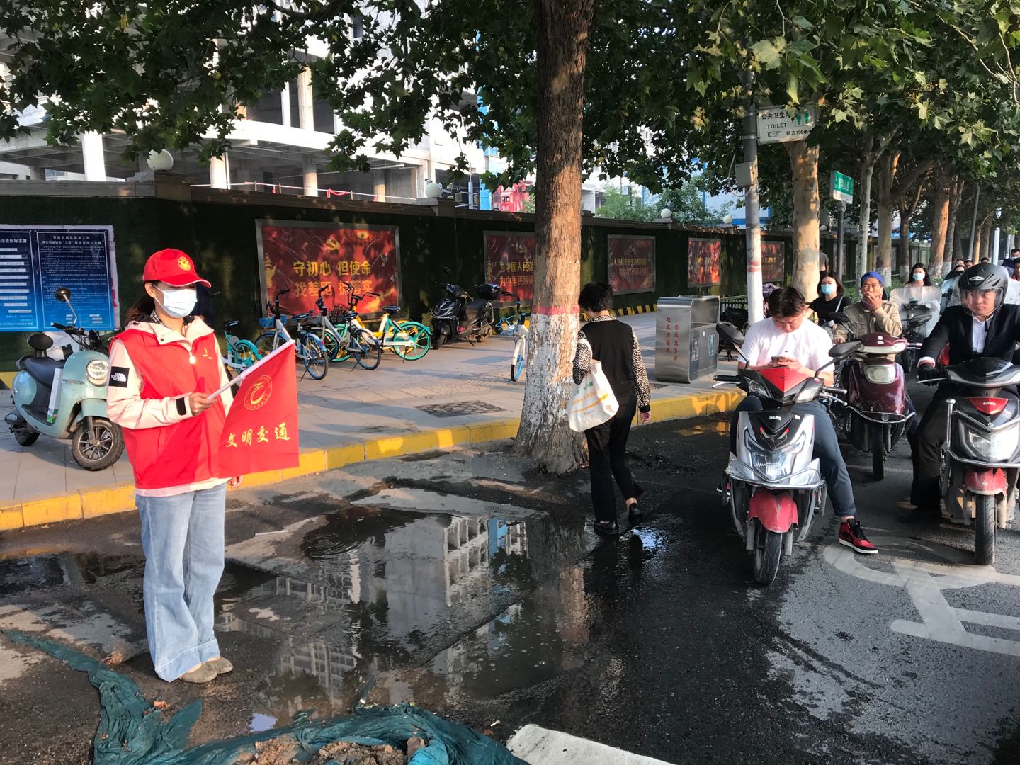 国际工商学院教师航海路紫荆山路西北角文明交通岗执勤中