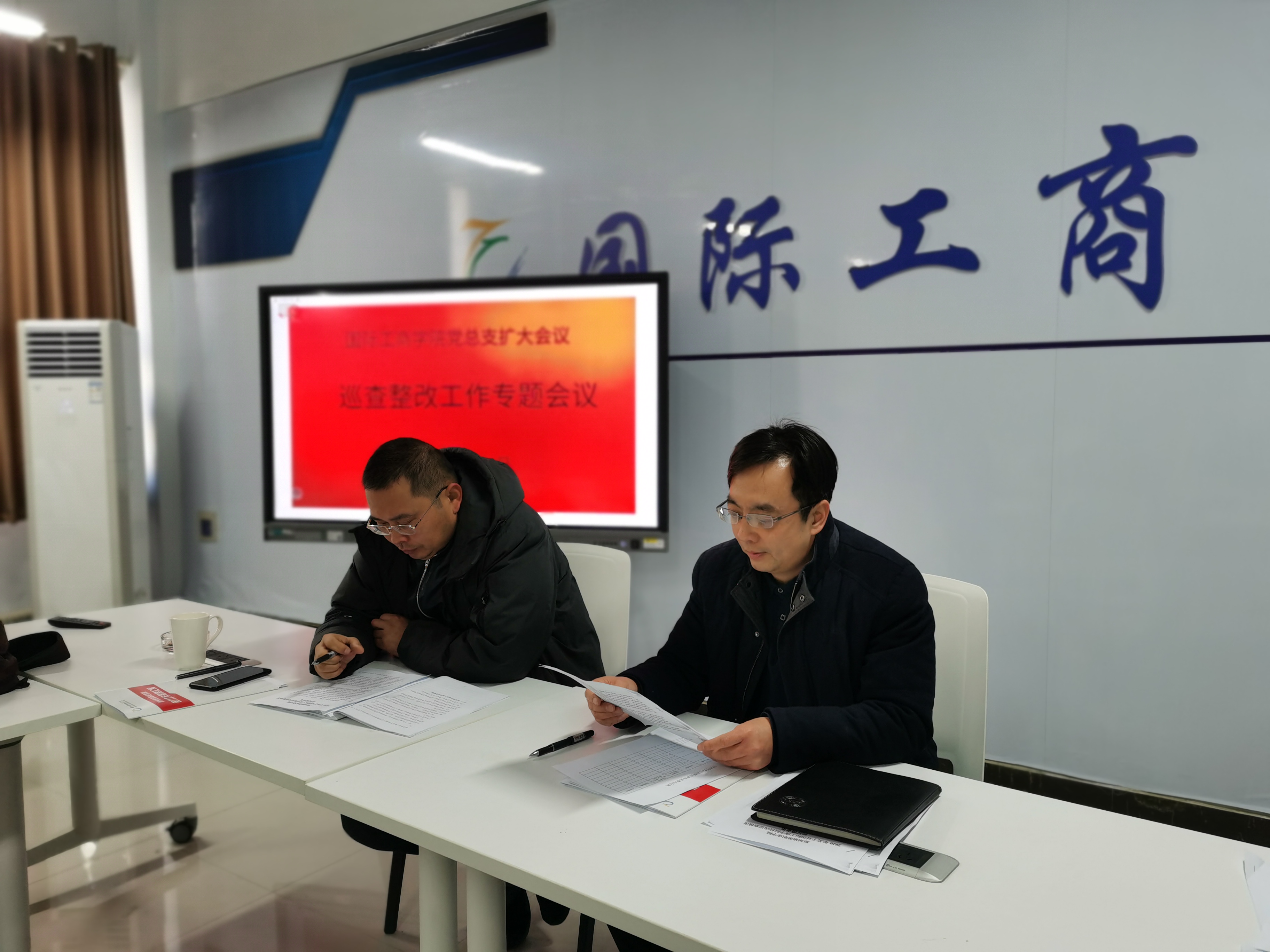 为落实学校对国际工商学院校内巡察情况的反馈意见,及时整改巡察发现的问题,1月9日,国际工商学院在教学楼1B304会议室召开扩大会议,会议包括巡察整改工作专题会、党政联席会、专题学习会三项内容。会议由国际工商学院党总支书记张鹏主持,国际工商学院院长兼党总支副书记孙权、国际工商学院副院长兼党总支副书记郭崖、各教研室主任、工会委员等参加会议。