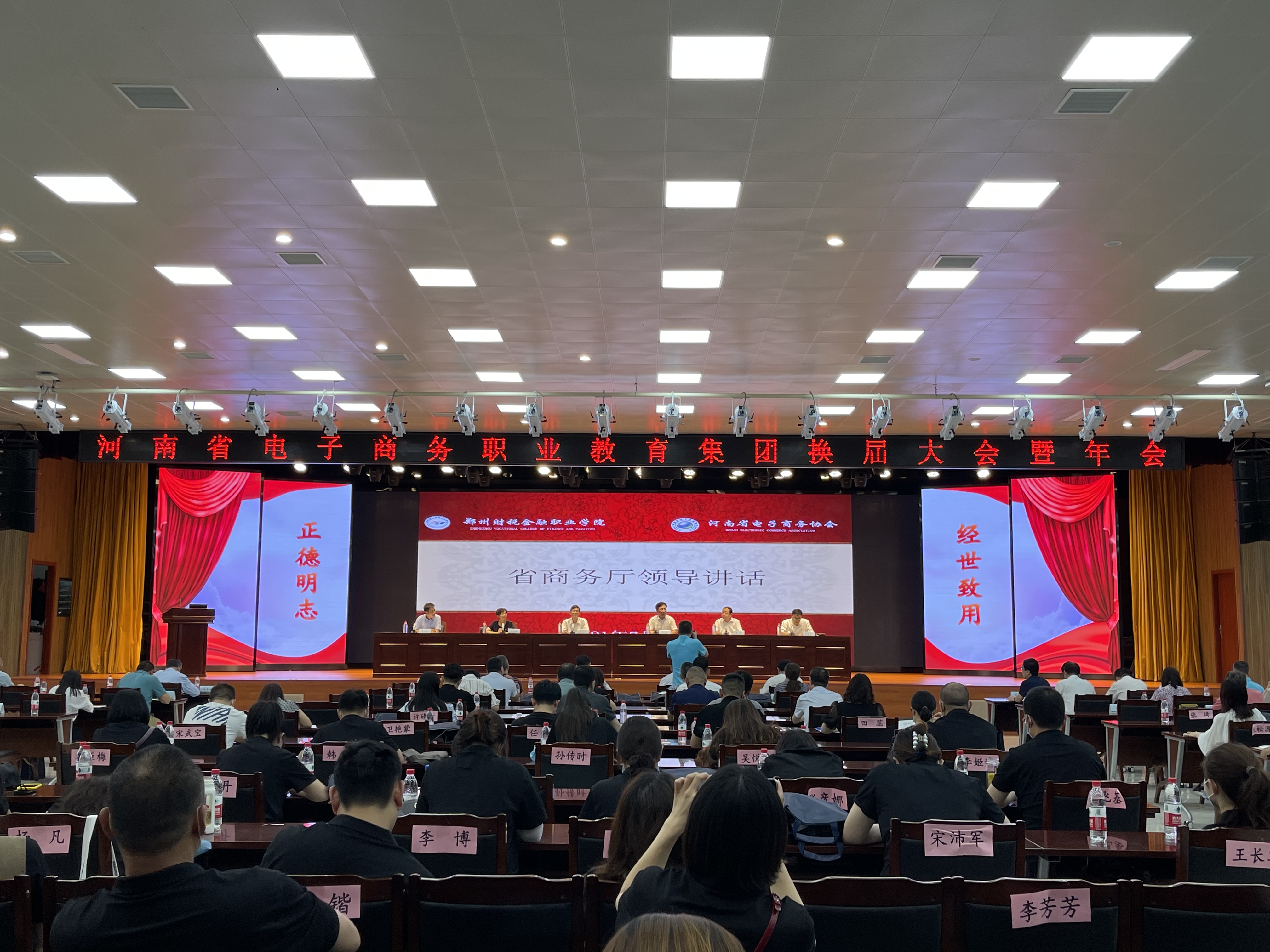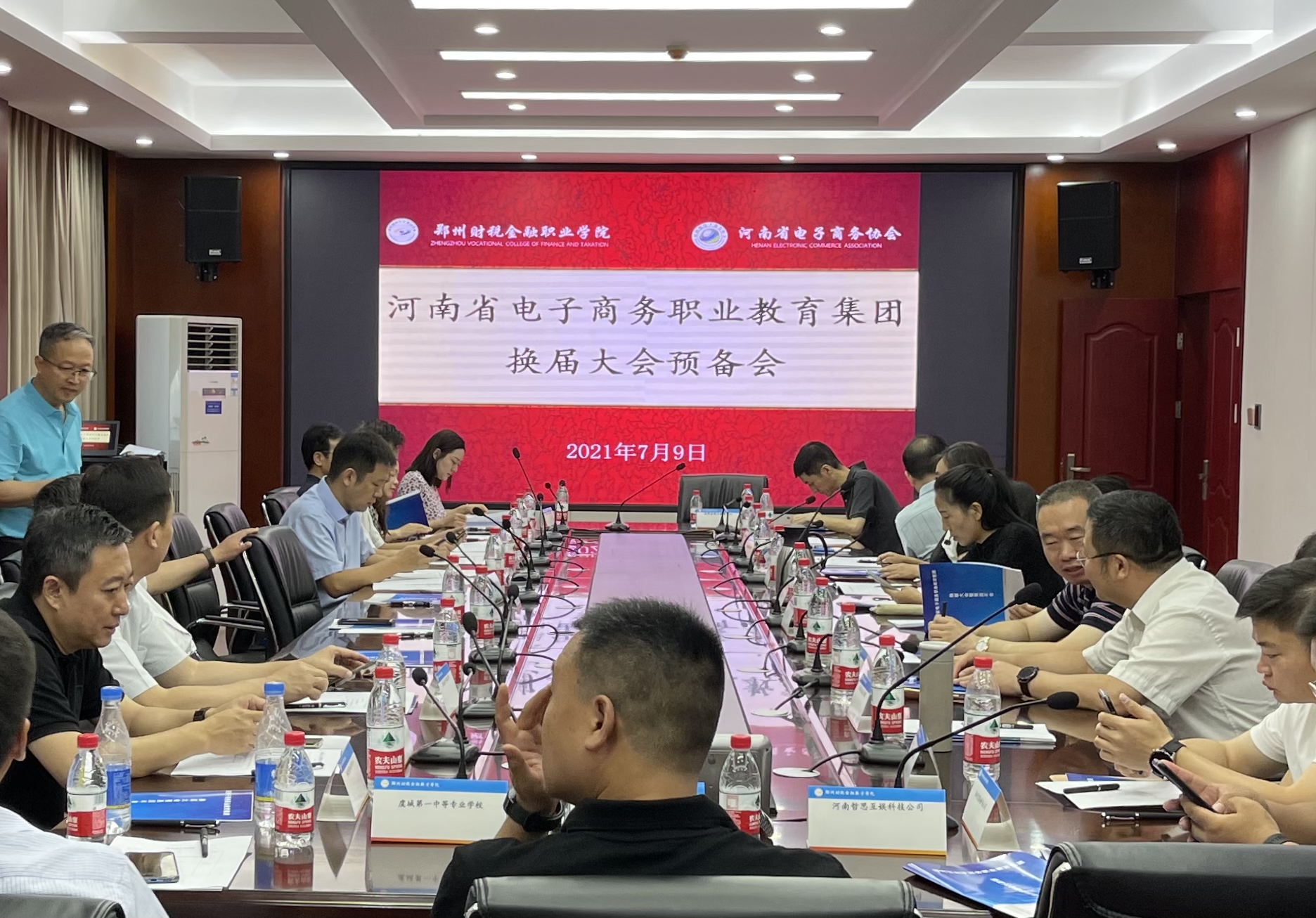 2021年7月9日上午8点30分,河南省电子商务职业教育集团换届大会暨2021年会在郑州财税金融职业学院举行,河南省教育厅职业教育与成人教育处处长秦剑臣、商务厅电子商务处处长孙琪、多所职业院校领导及教师代表、企业代表等出席会议。pp电子游戏平台网站副校长张建军带领国际工商学院院长孙权、电子商务专业教研室主任陈丽娟、教师郭薇参与此次会议。