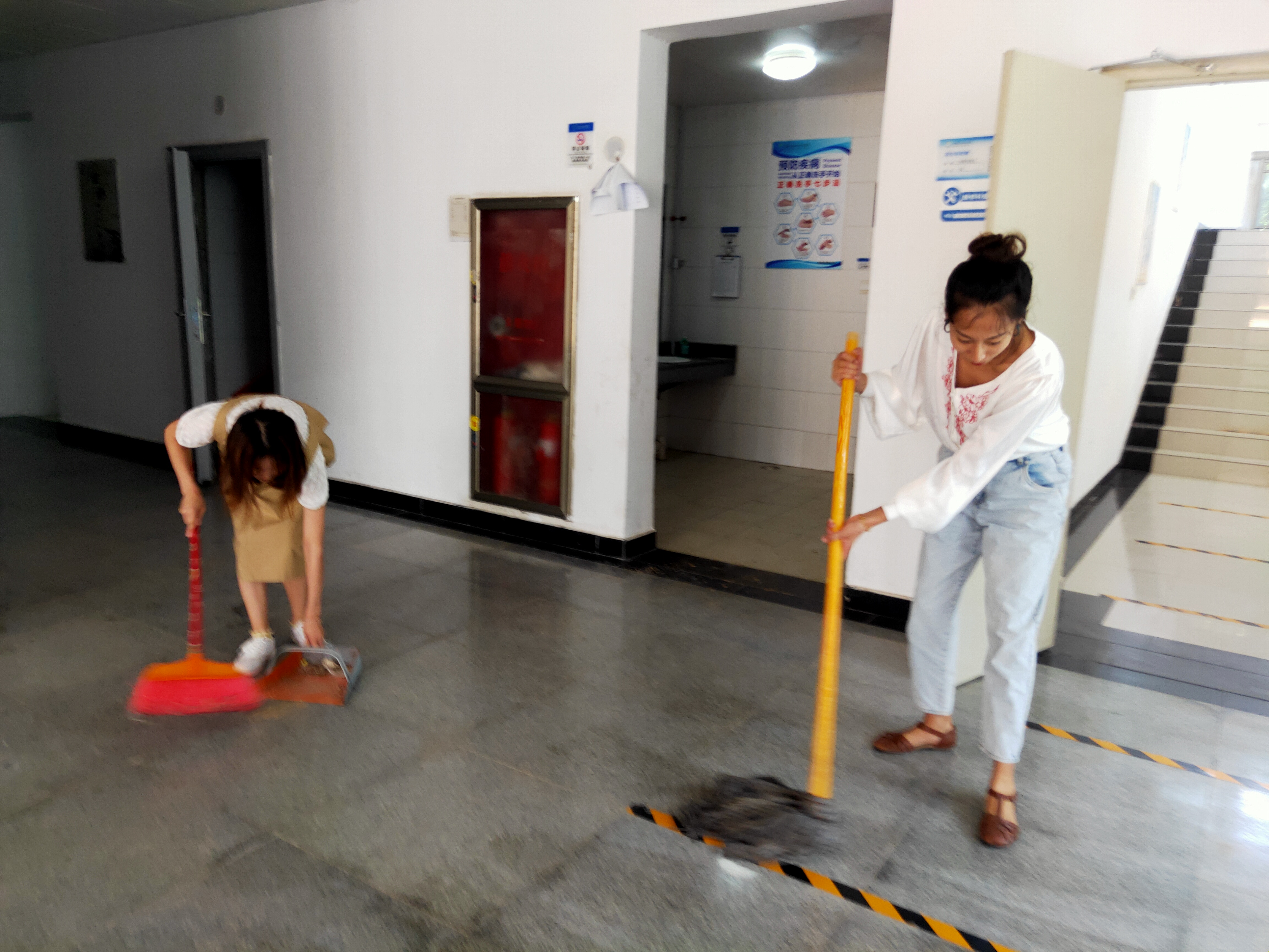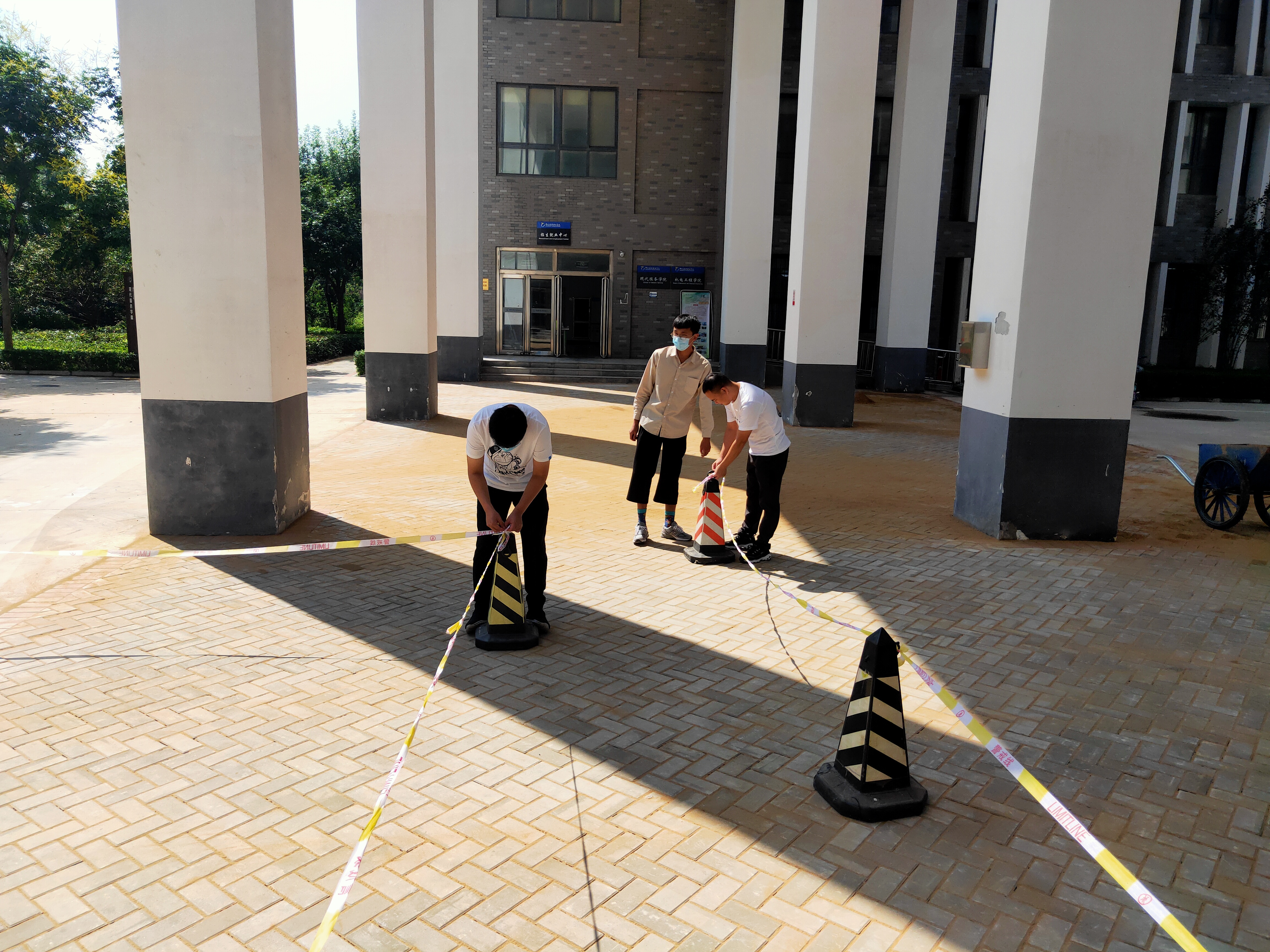 会后,学管团队对教学楼内办公室、公共区域进行卫生打扫,按照演练要求设置体温检测点、隔离带、粘贴间隔地标线、配备消杀物资等,并对演练场景进行简单模拟,查找存在的问题和薄弱环节,并对此进行完善。