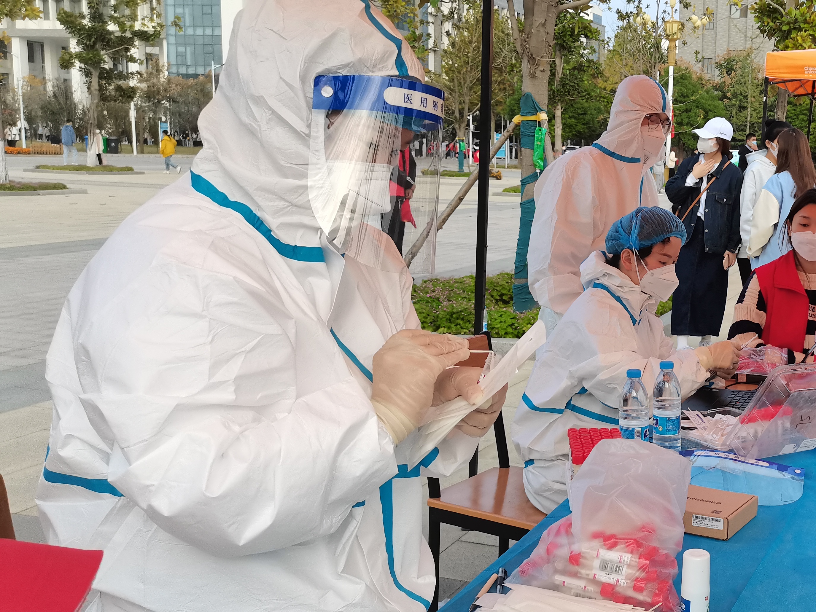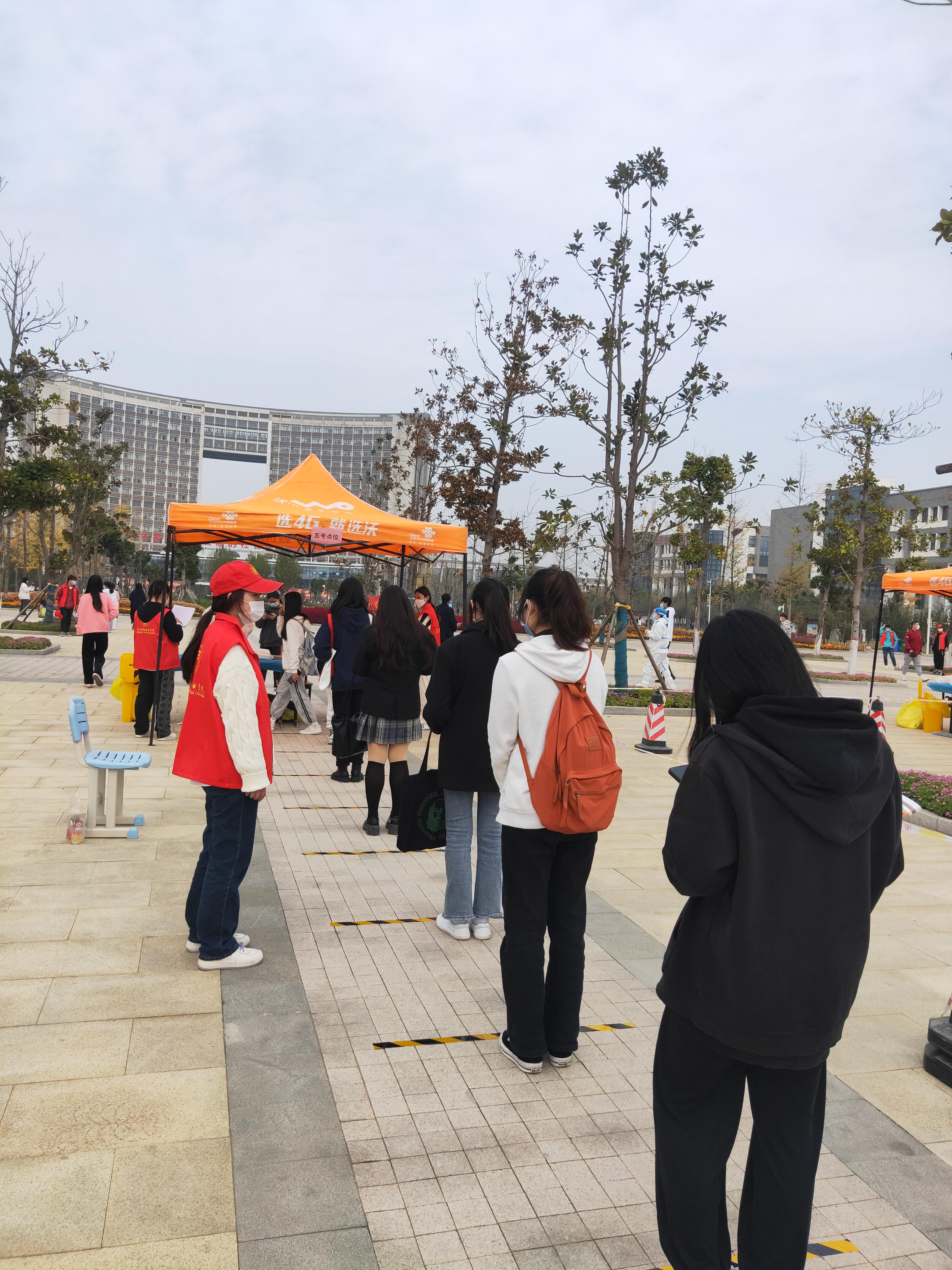 按照分批次、分时段开展核酸检测的要求,我院于12:30-17:20在南门西侧广场5号位、6号位开展核酸检测。中午12:20我院第一批学生在教学楼北门集合,按照时间节点进入检测点。在核酸检测过程中,我院学生严格遵守防疫规定,佩戴口罩、保持一米间隔,有序身份核对和样本采集,采样结束后迅速离开现场防止产生人员聚集。本着“应检必检不漏检”的原则,截止下午17:00,我院共计49个班级参加检测。