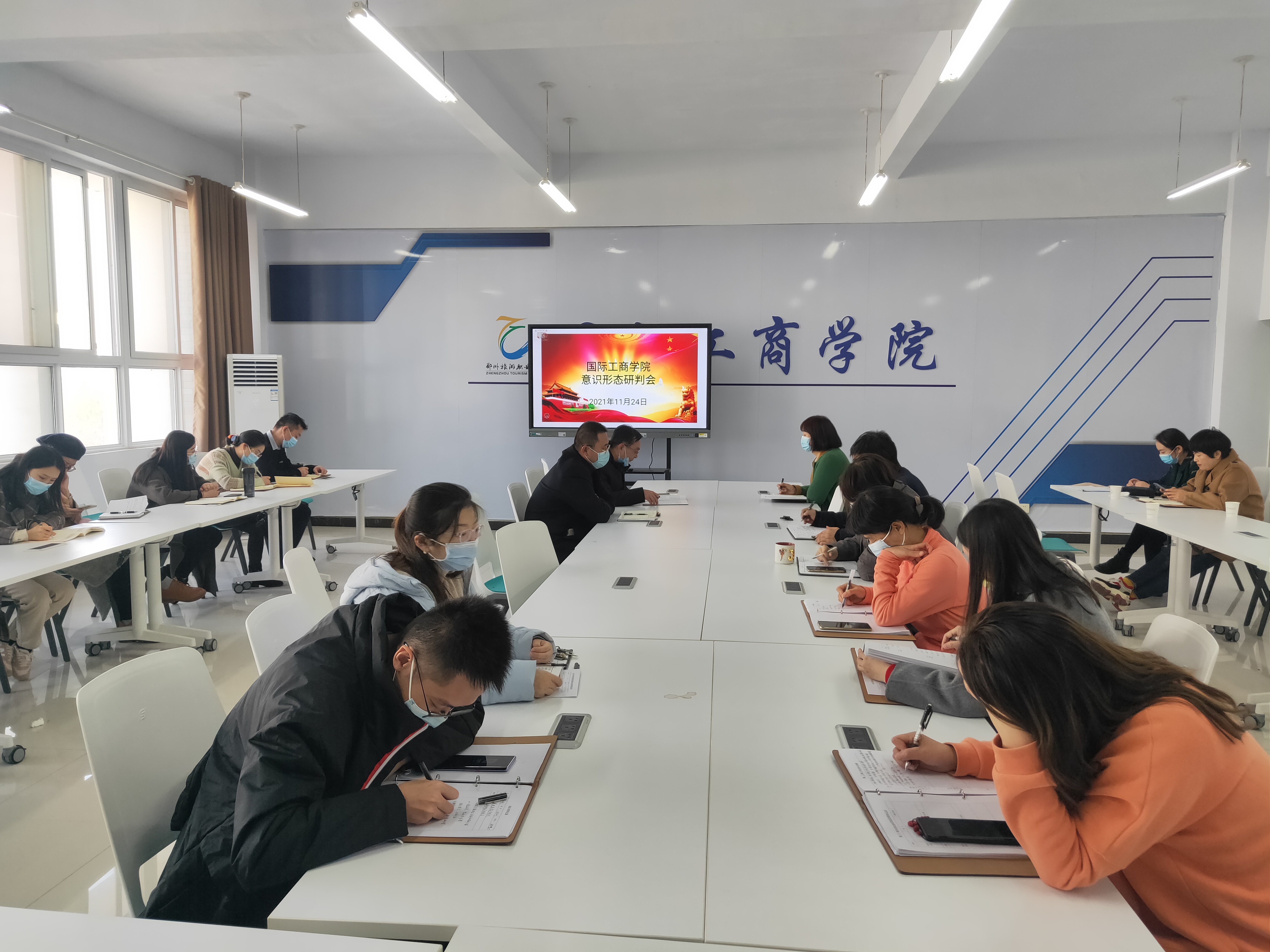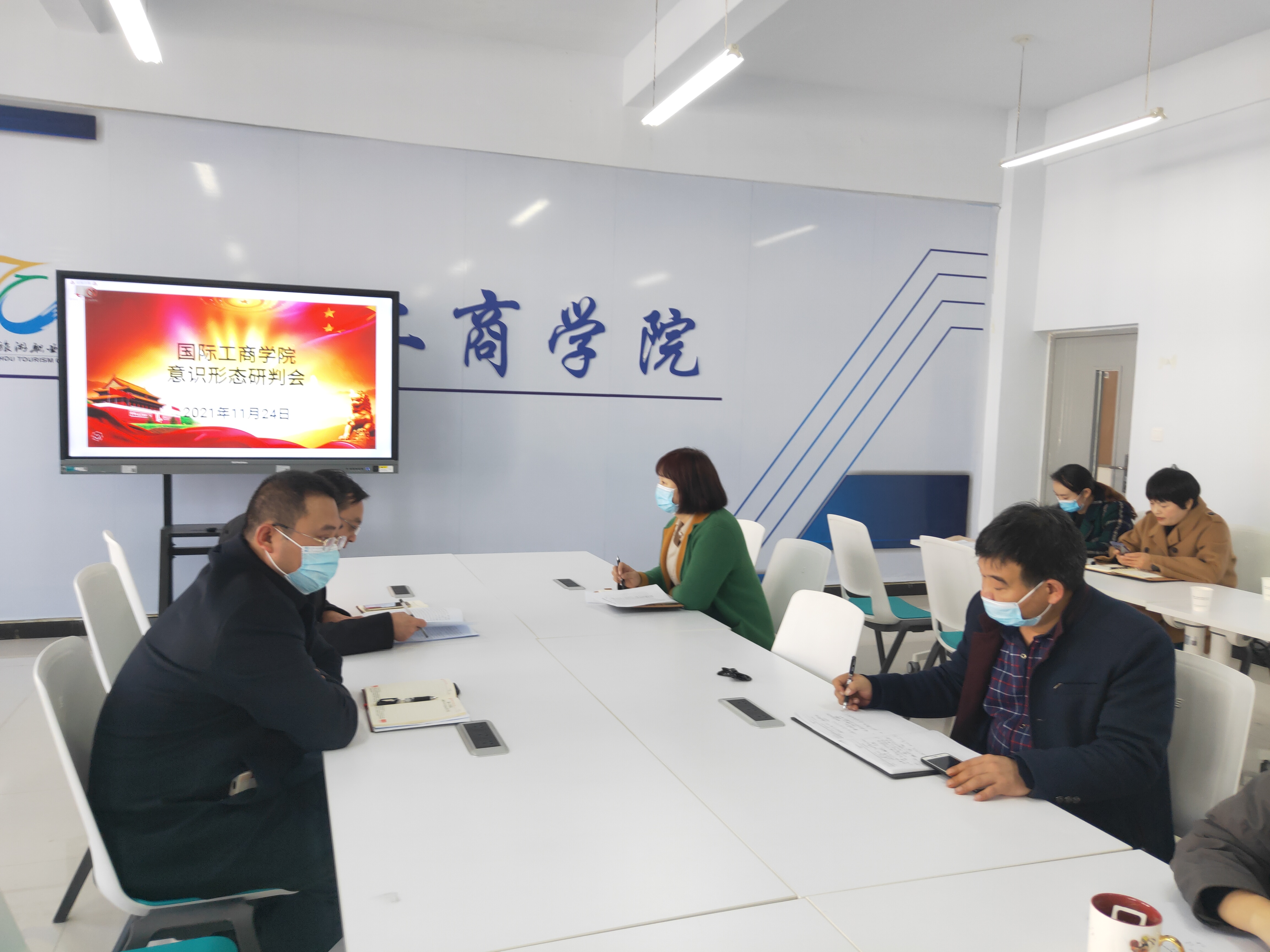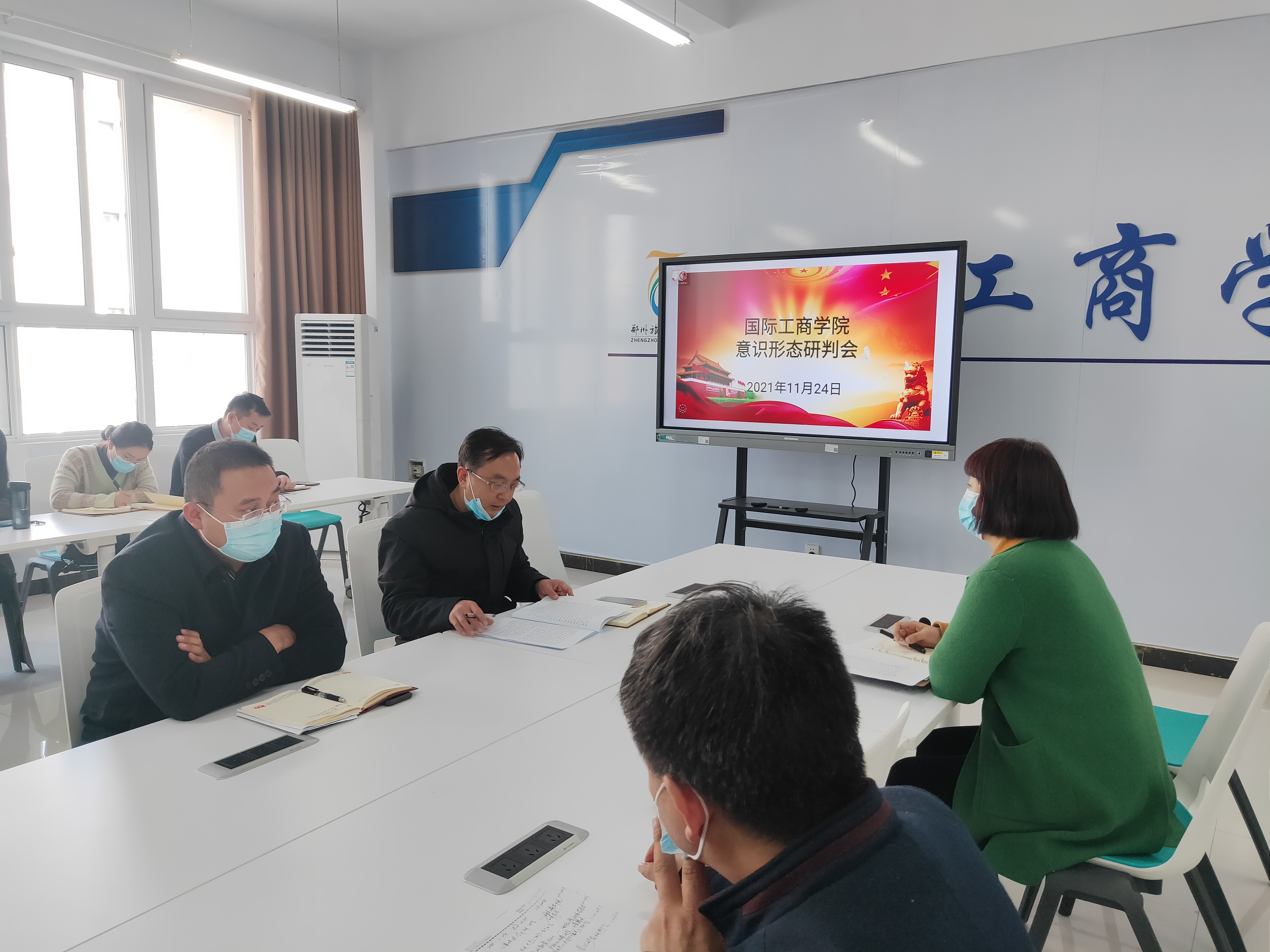 为牢牢掌握意识形态工作的主动权,有效防范化解重大意识形态风险,11月24日下午,国际工商学院在1B304会议室召开意识形态研判会。会议由国际工商学院党总支书记张鹏主持,院长孙权、副院长郭崖、党员干部参加。