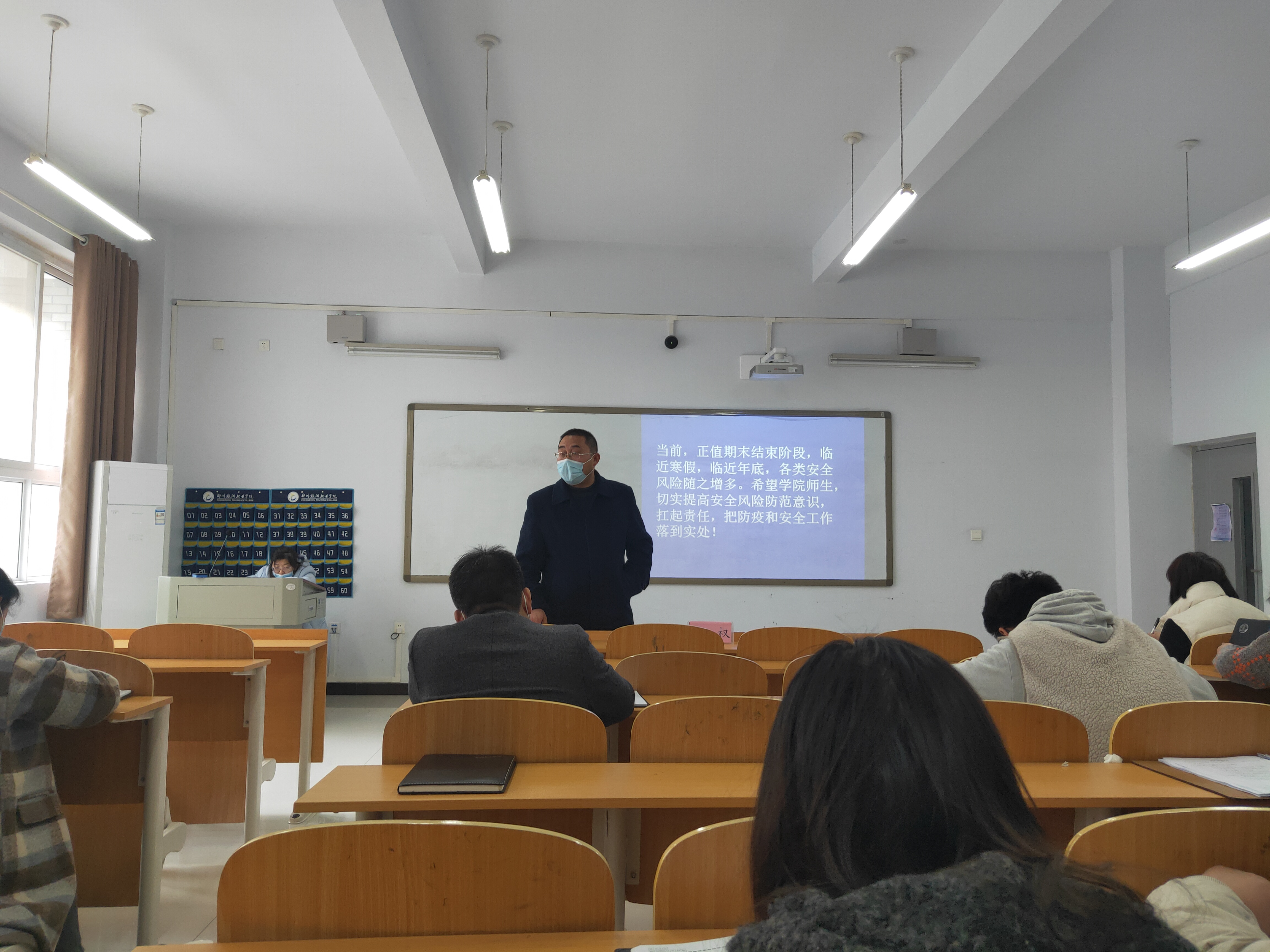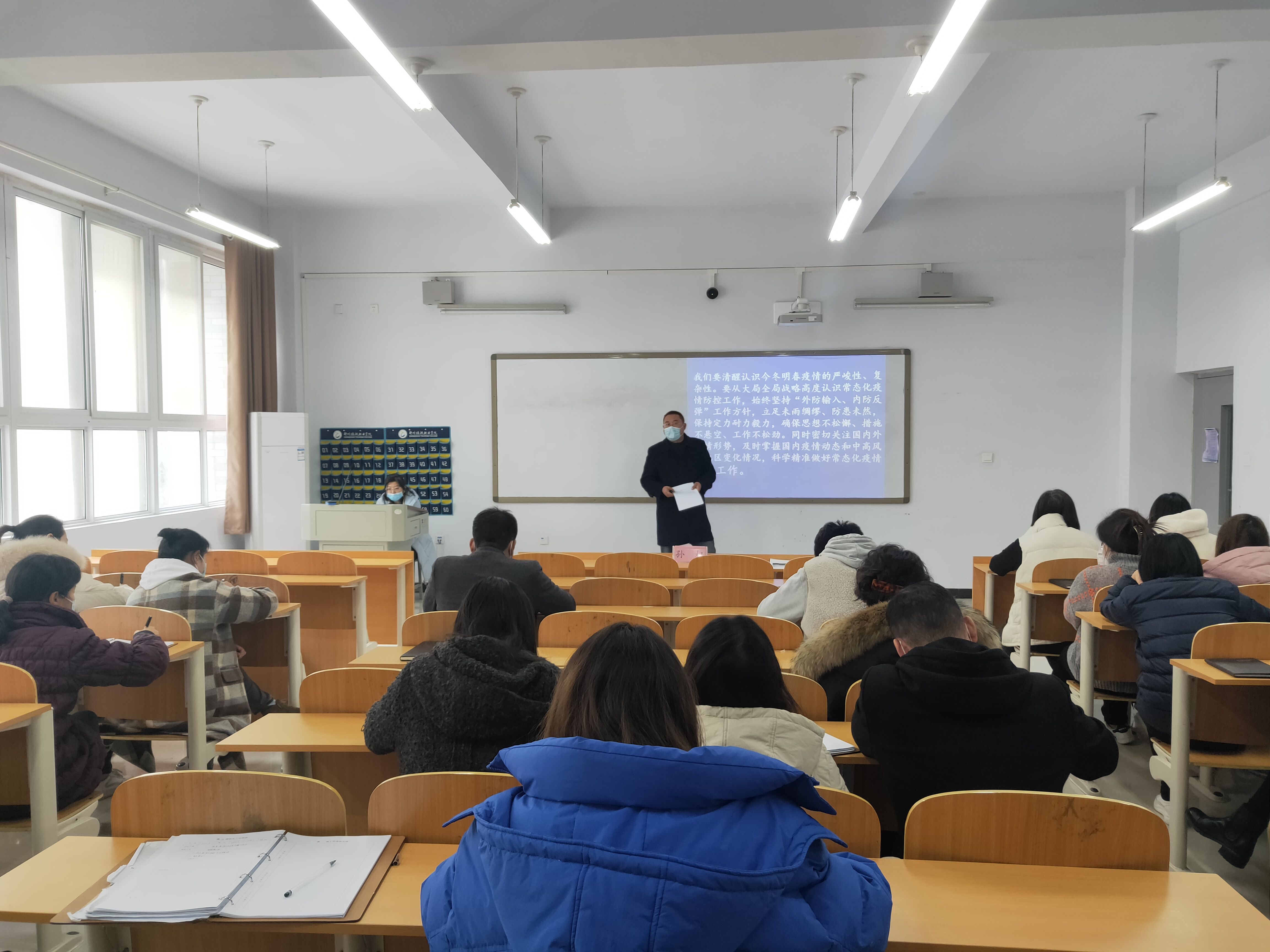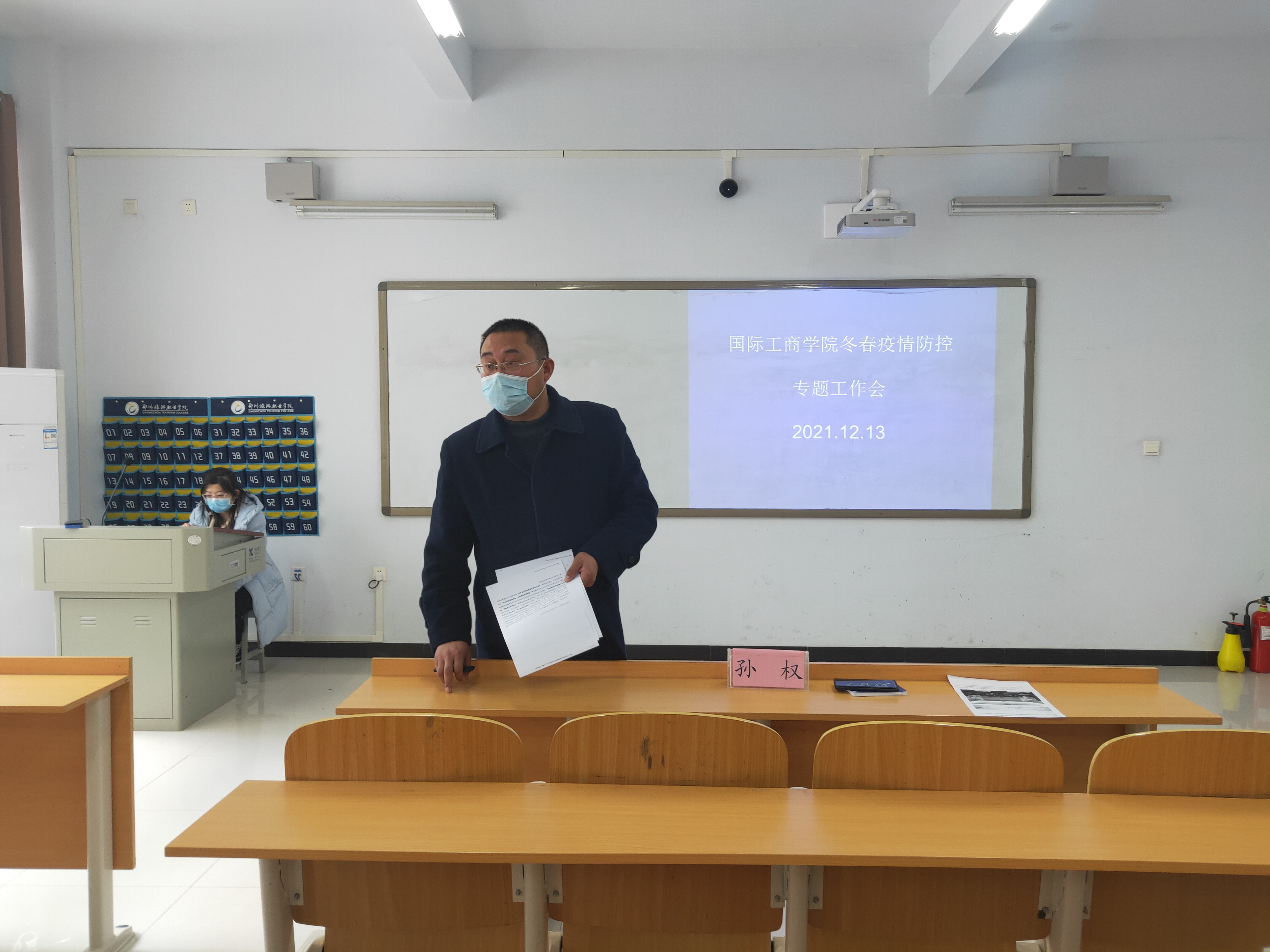 12月13日,国际工商学院于1B203教室召开冬春疫情防控工作会,会议由国际工商学院院长孙权主持,副院长郭崖、团总支书记谢锡莹、全体班主任、辅导员老师参加。