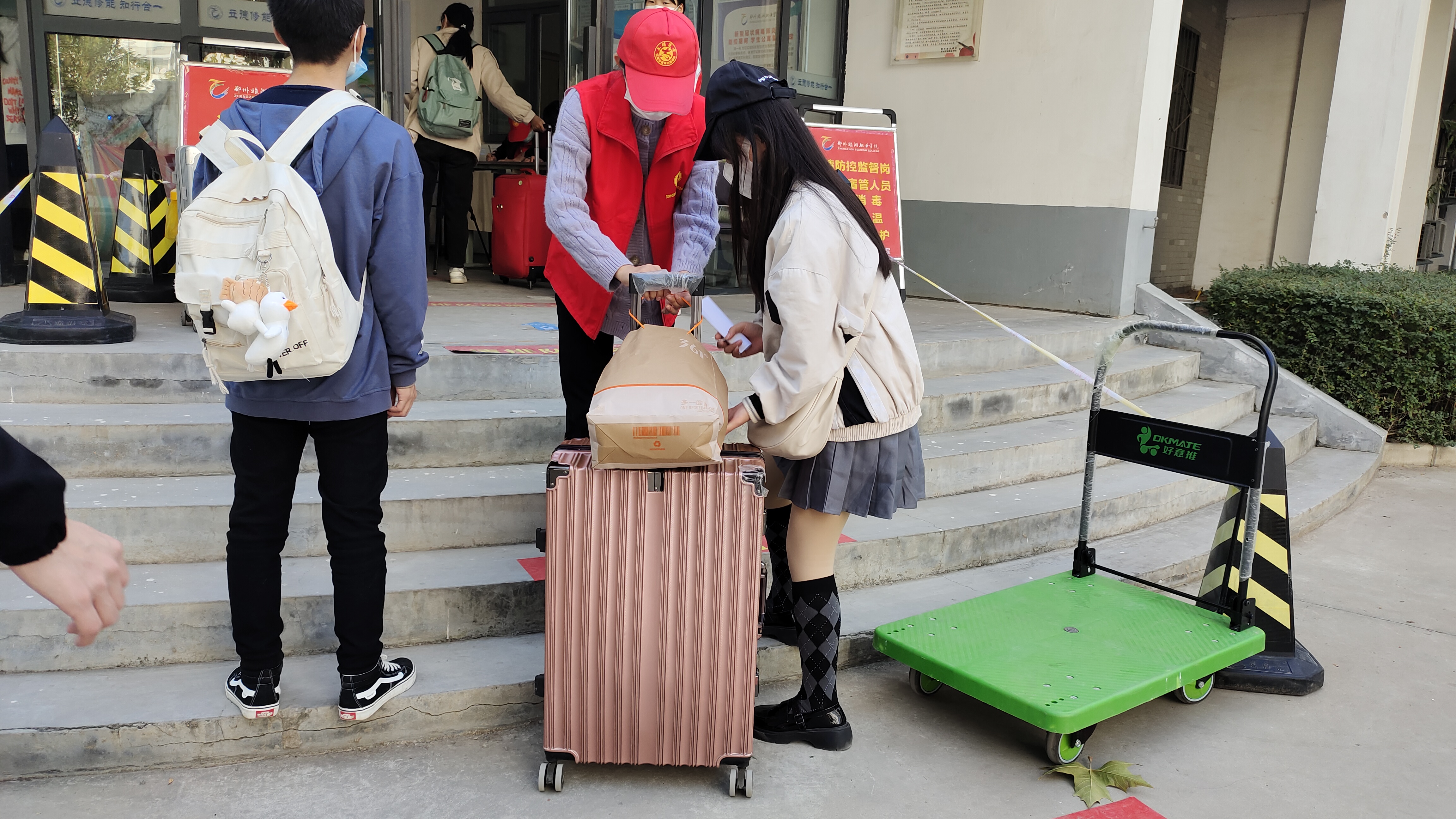 满“新”欢喜,也不放松防疫警惕。在新生抵达校门口报到之前,我院严格落实疫情防控要求,安排师生在校门口查验新生的健康档案、测温查码、行李消杀,逐一核验后方可准生入校。