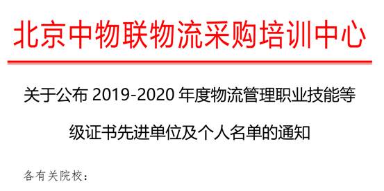 12月16日,北京中物联物流采购培训中心公布2019-2020年度物流管理职业技能等级证书先进单位及个人名单,pp电子获评为2019-2020年度物流管理职业技能等级证书优秀试点院校,国际工商学院物流管理专业陈玉杰老师获评为2019-2020年度物流管理职业技能等级证书优秀辅导教师。