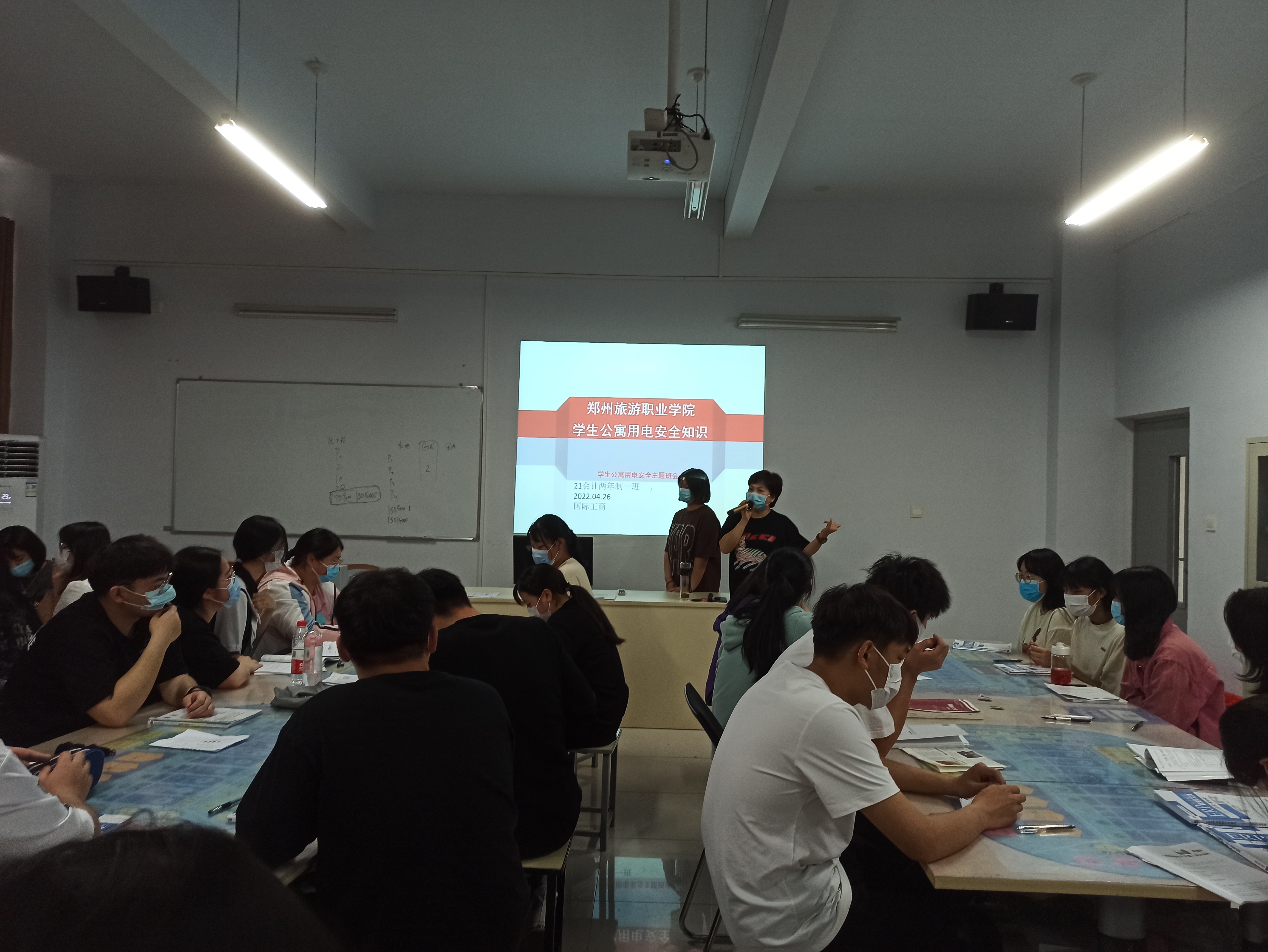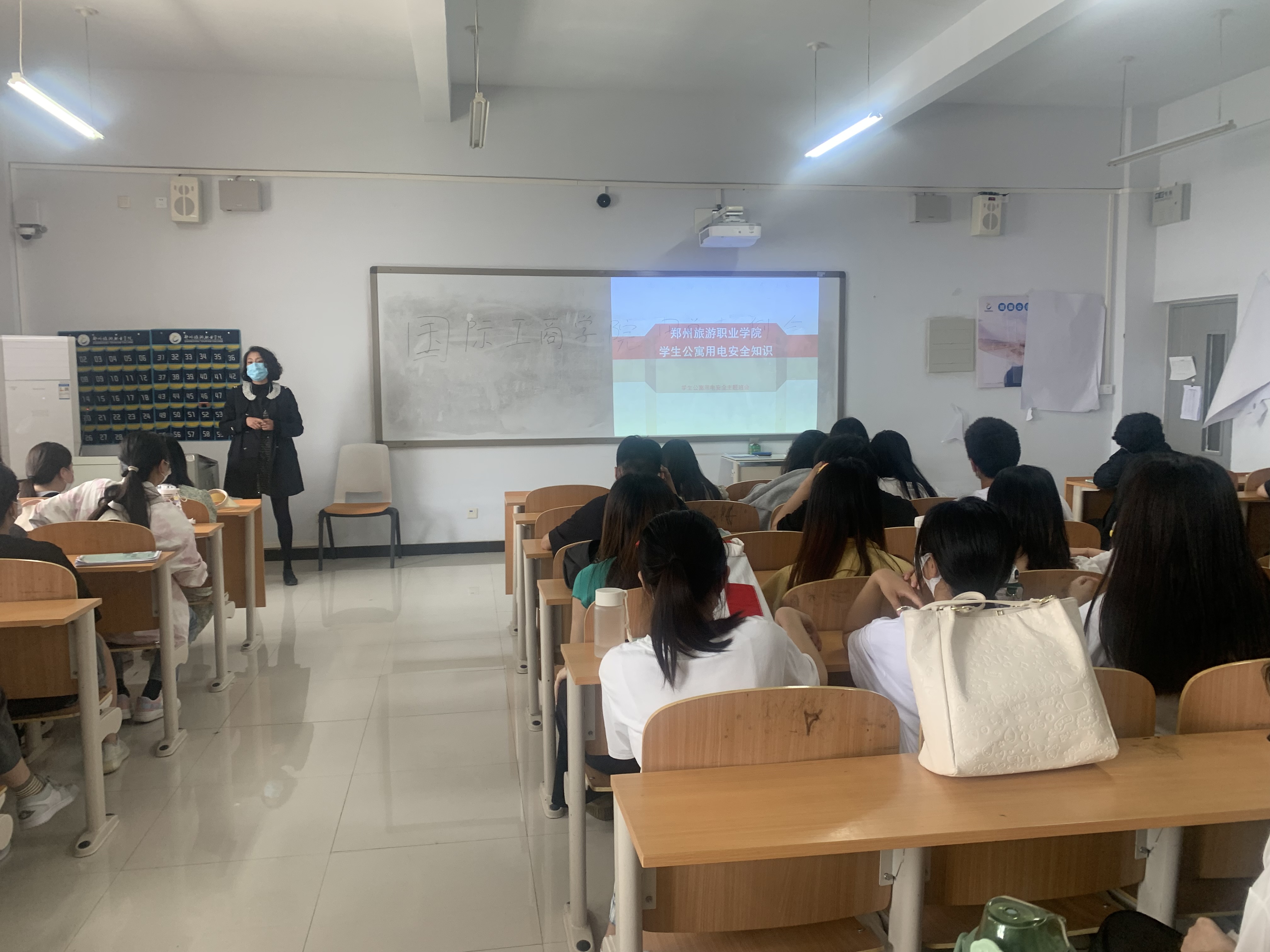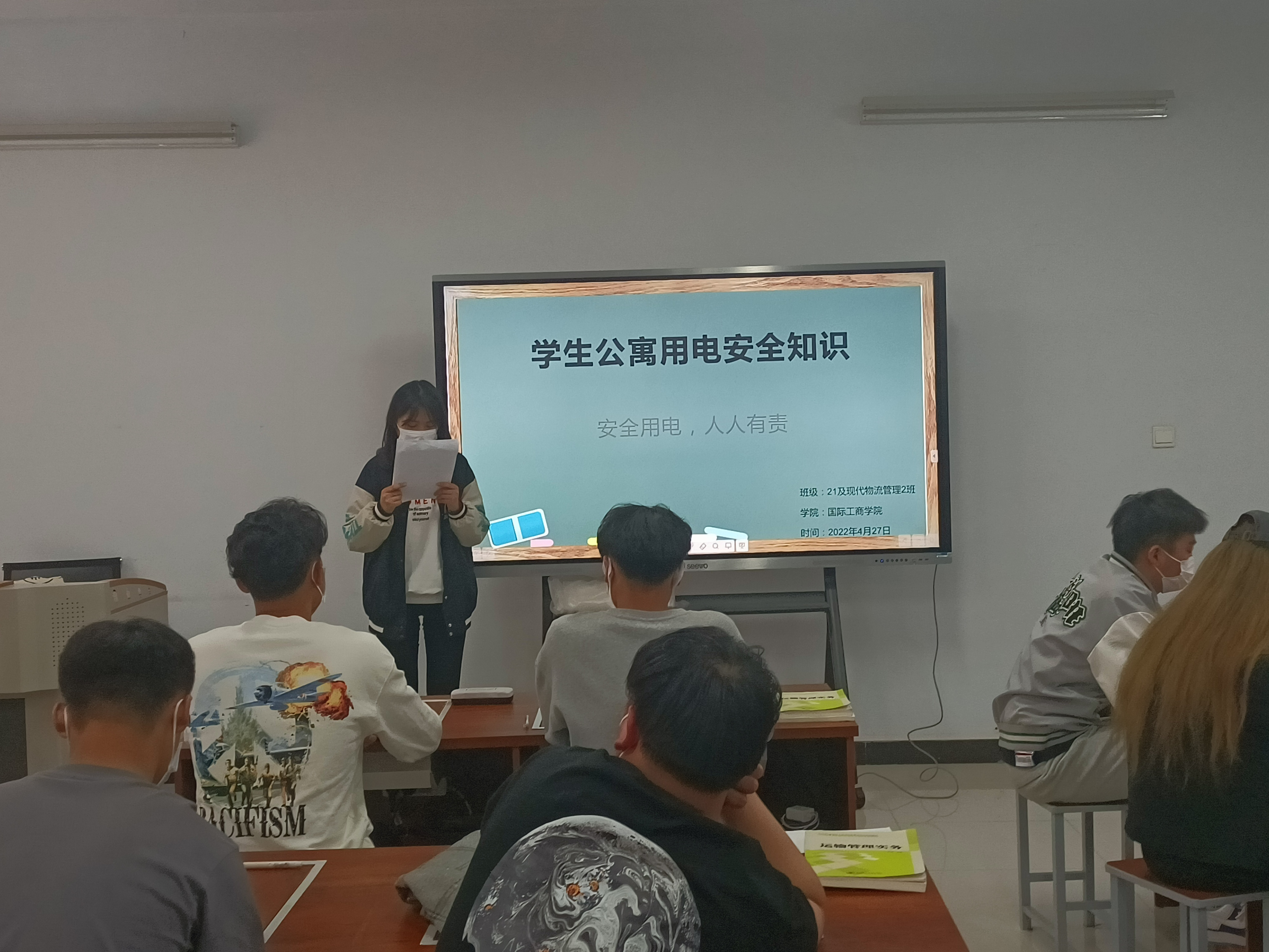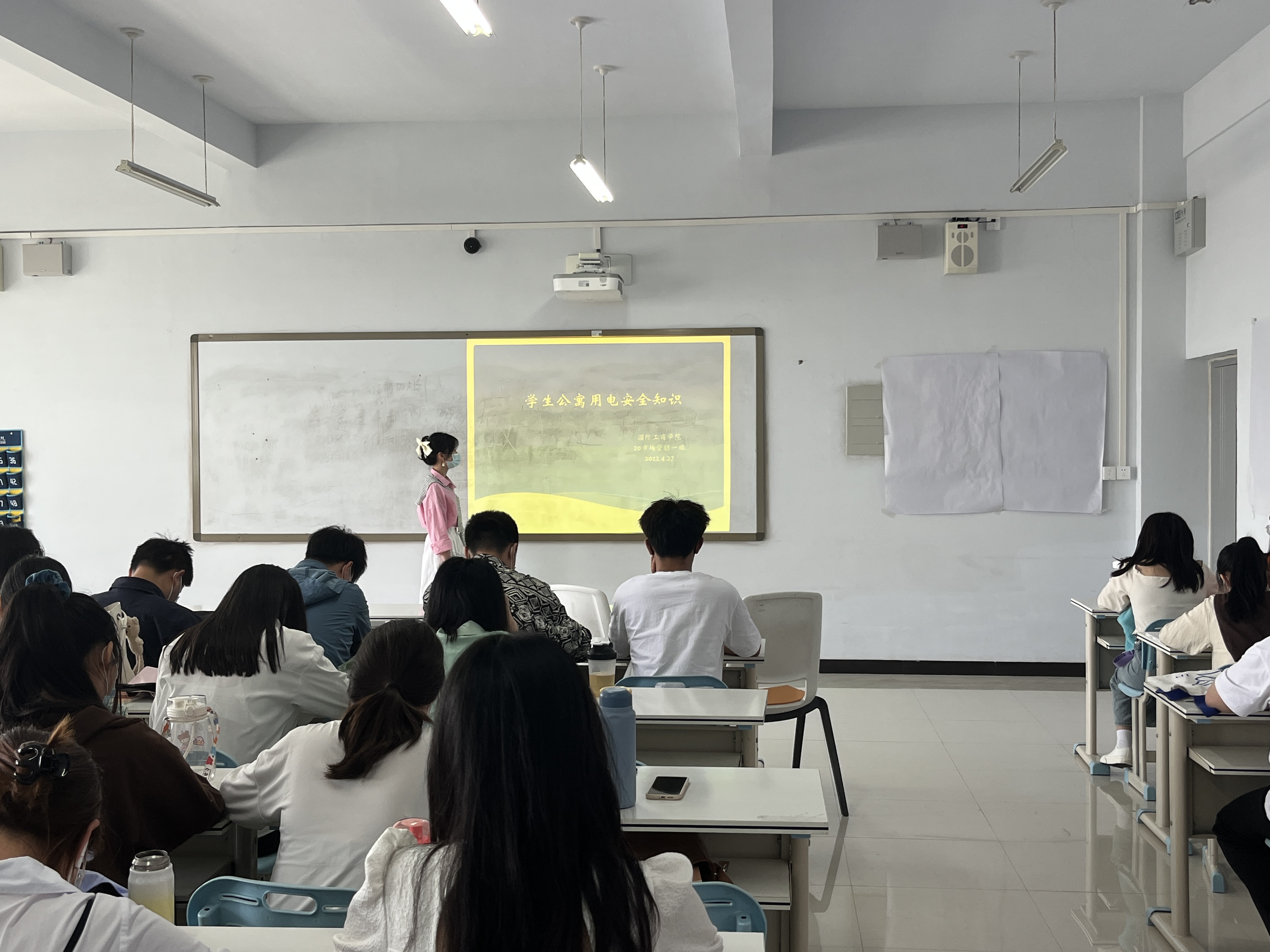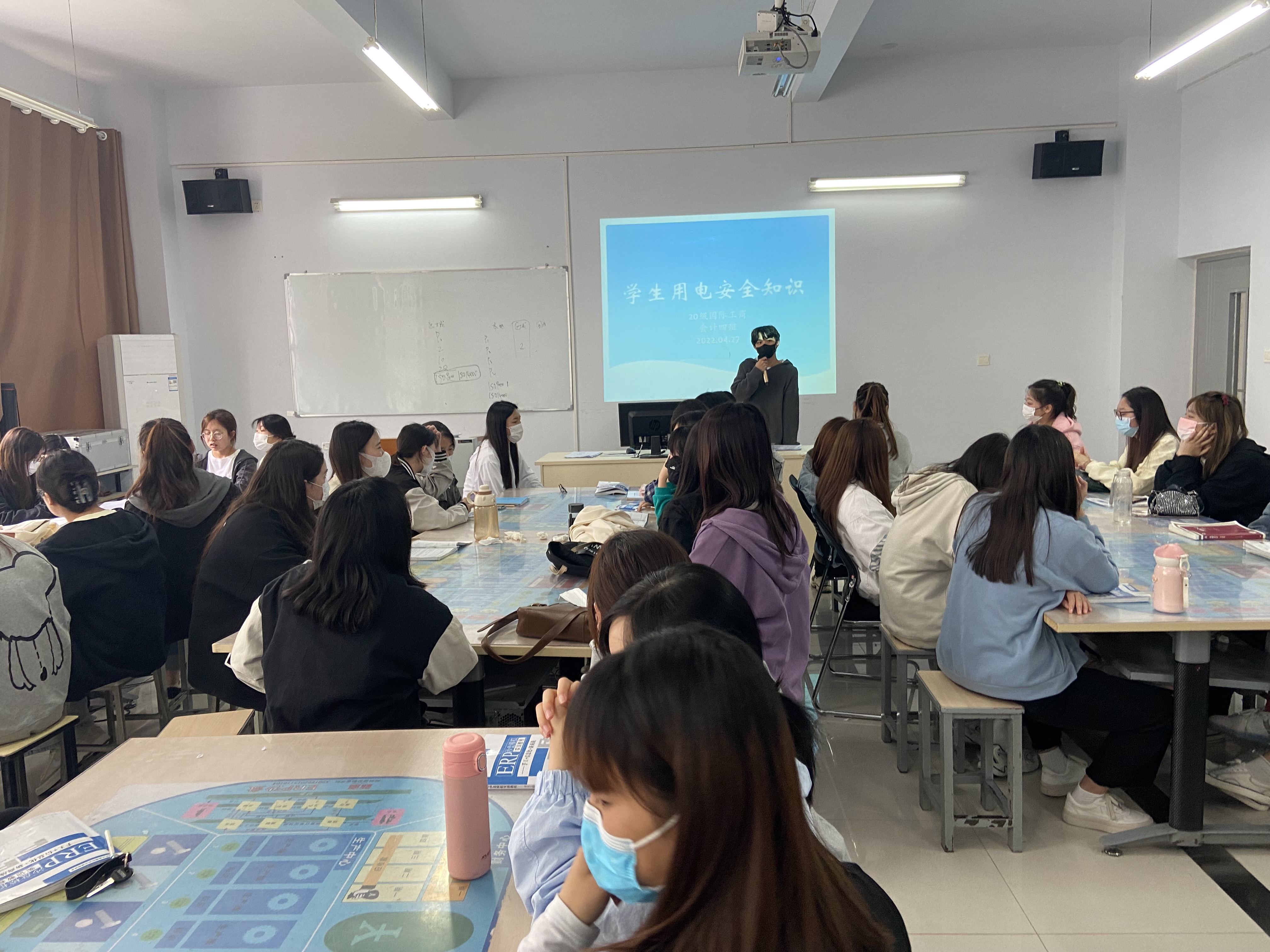 为进一步加强安全教育,提高学生对生命安全的关注和自我防范意识,营造安全宿舍环境。国际工商学院于2022年4月25日-27日在1B教学楼各班开展“学生公寓用电安全知识”主题班会活动。