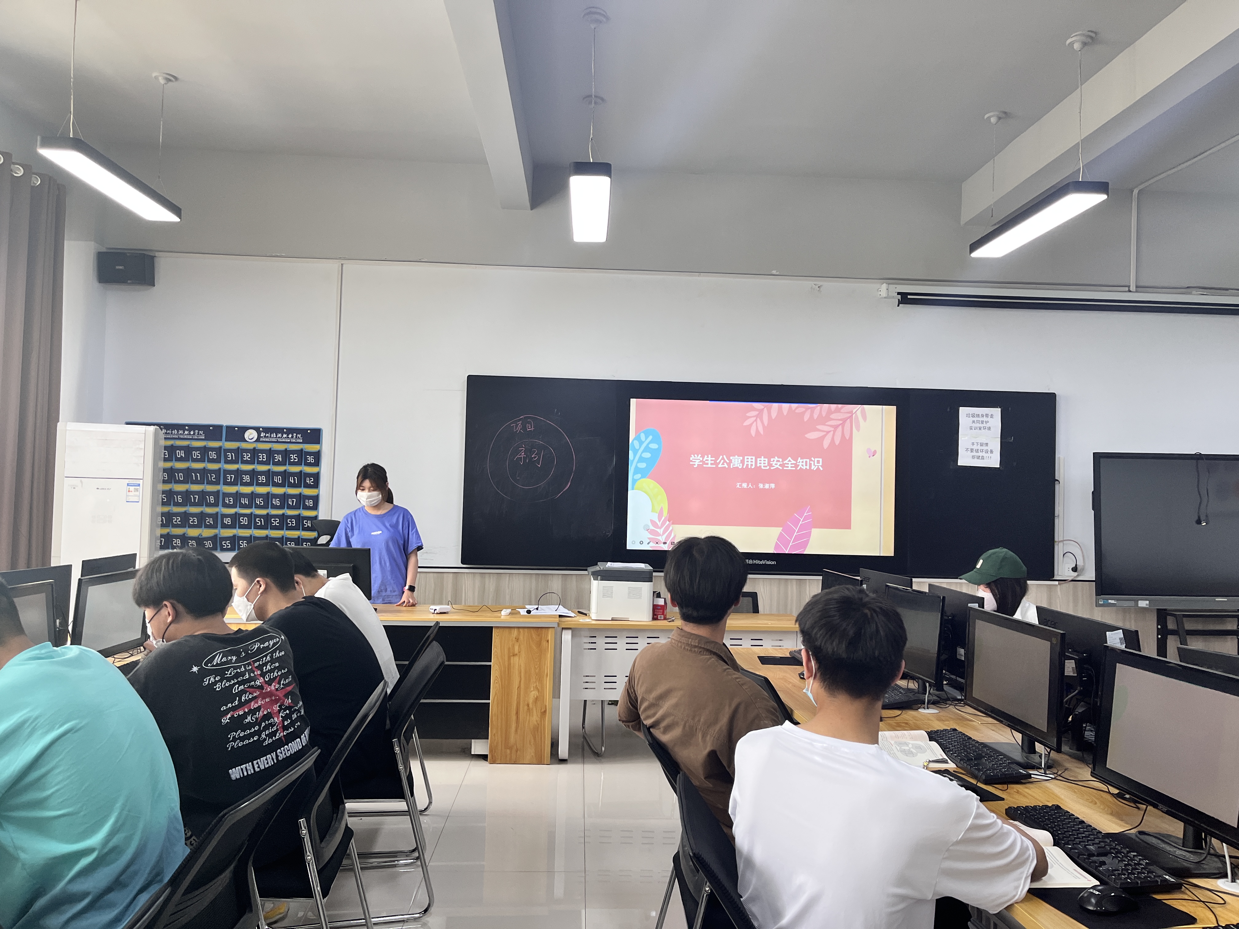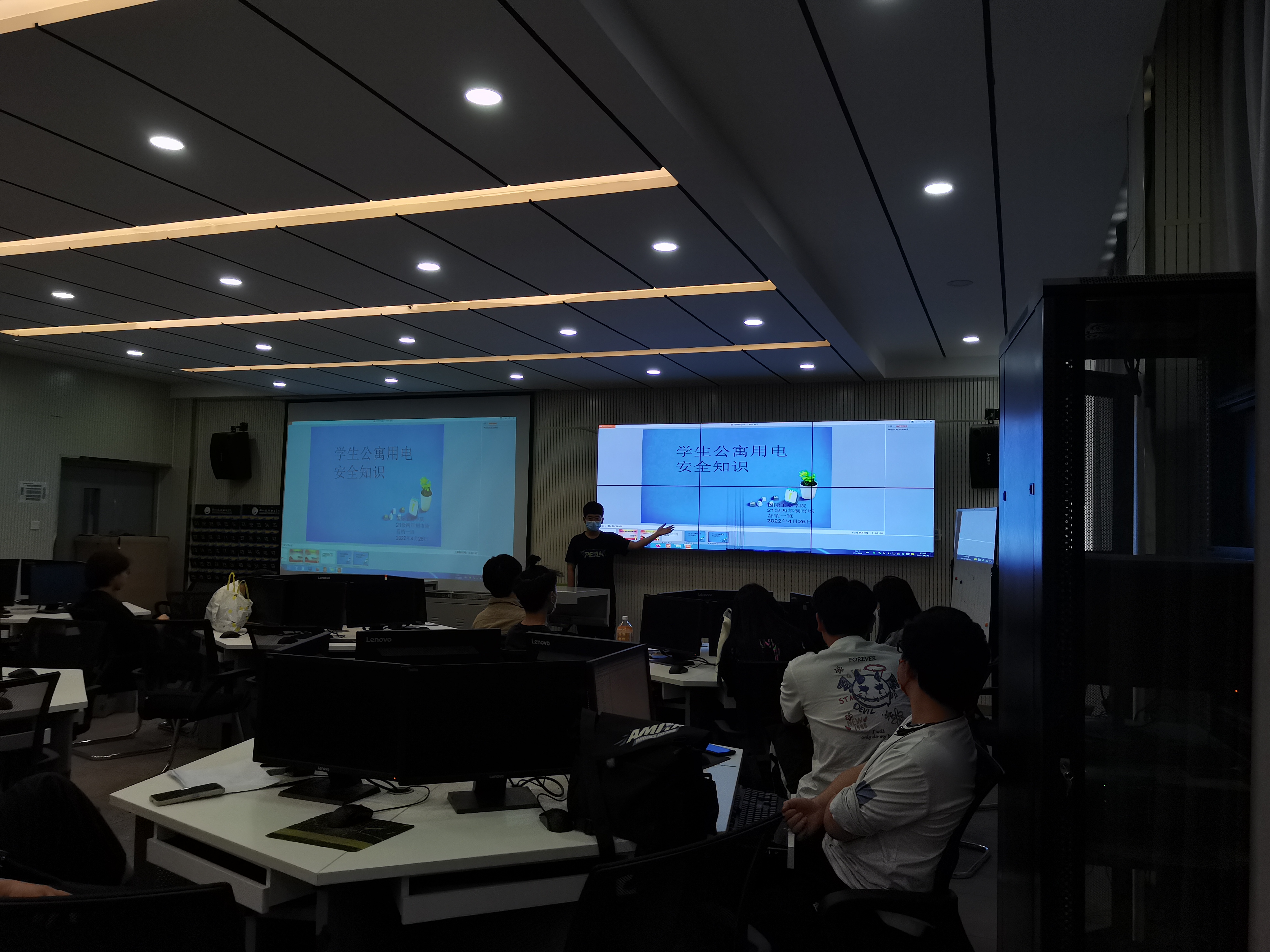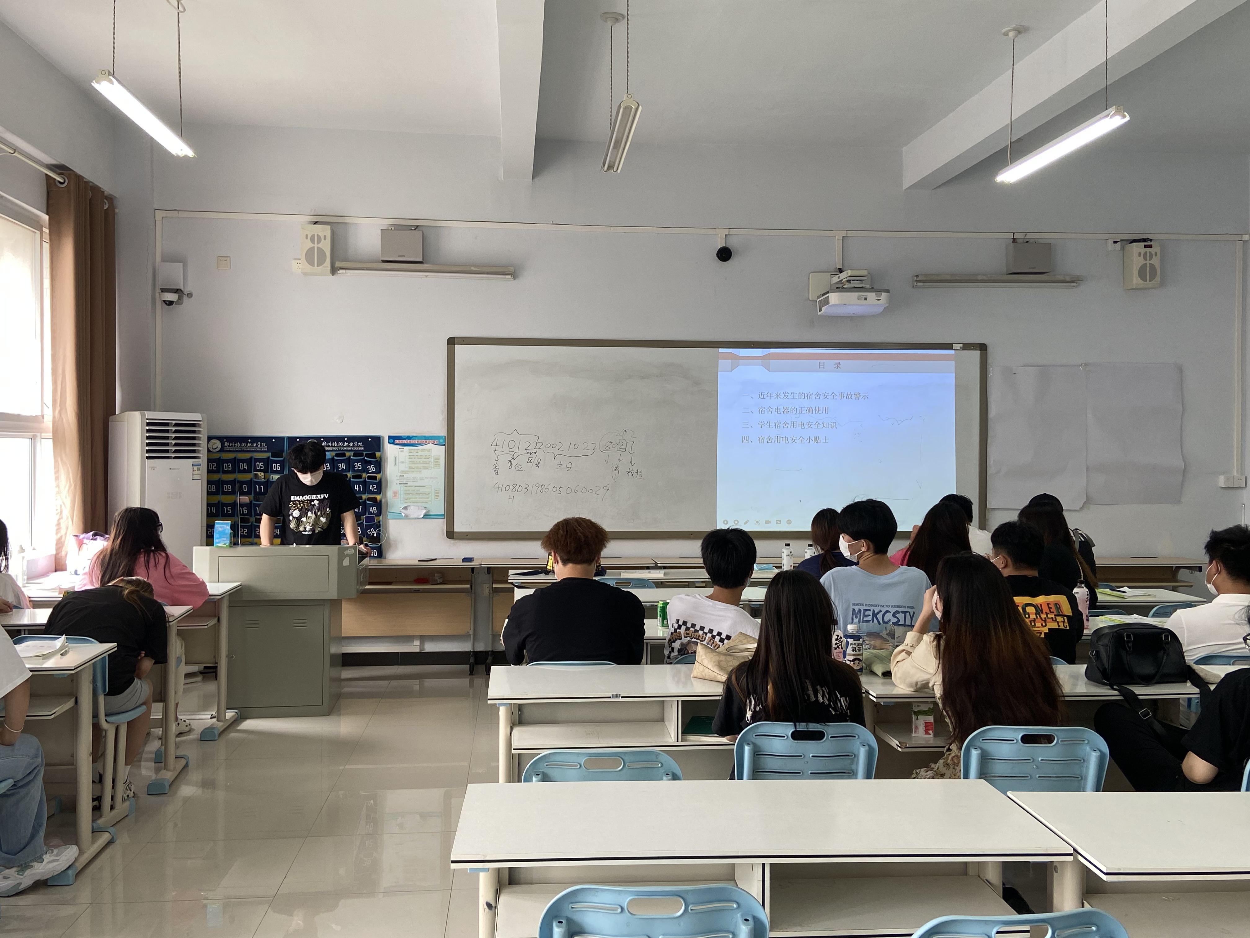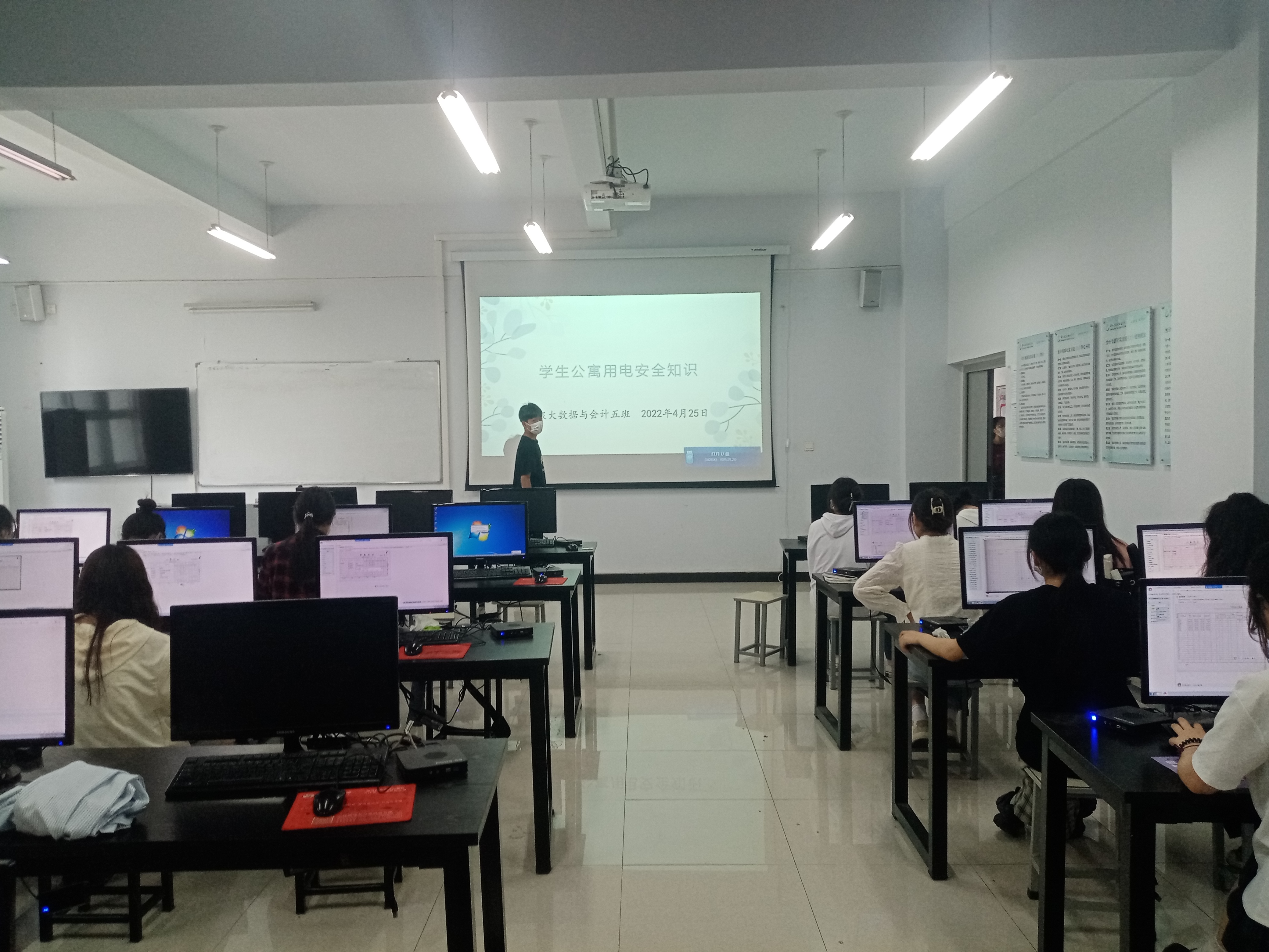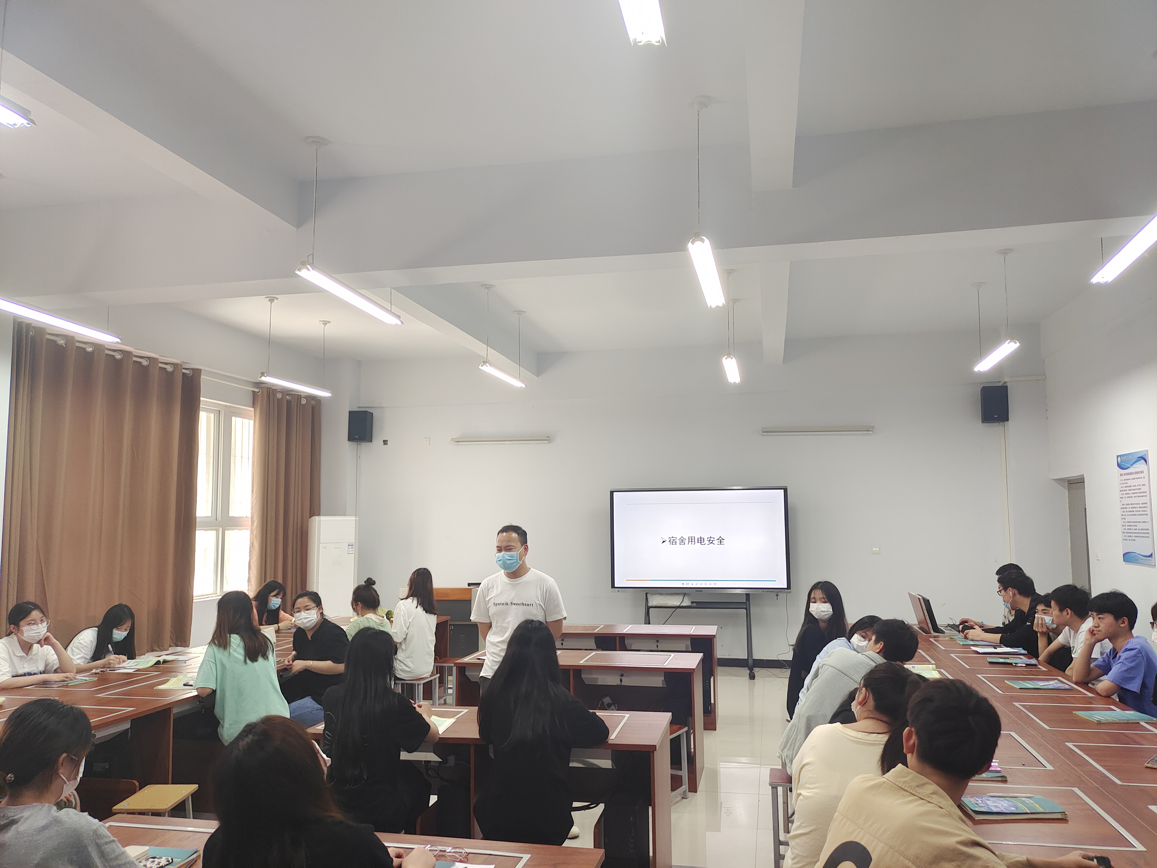 为进一步加强安全教育,提高学生对生命安全的关注和自我防范意识,营造安全宿舍环境。国际工商学院于2022年4月25日-27日在1B教学楼各班开展“学生公寓用电安全知识”主题班会活动。