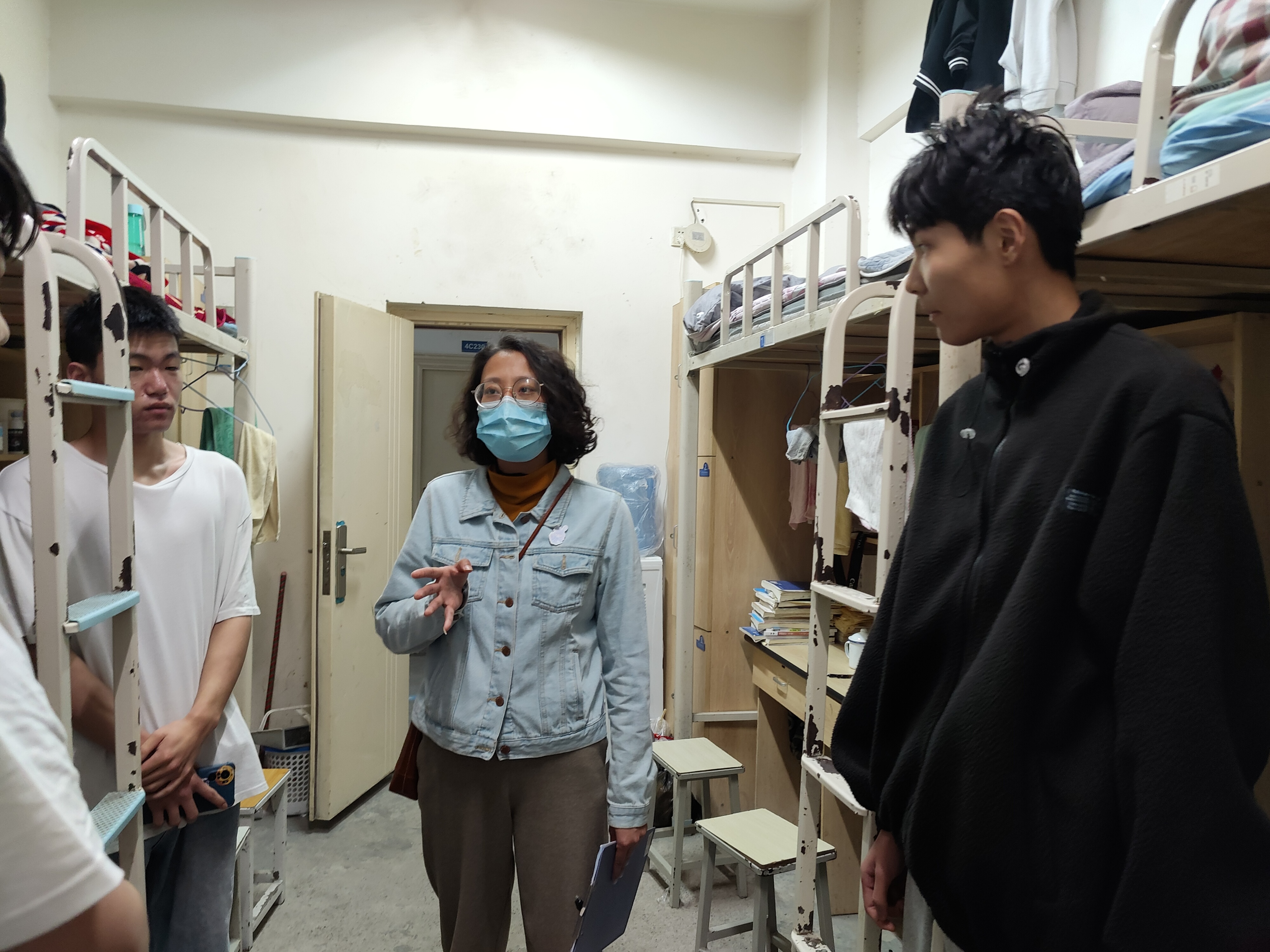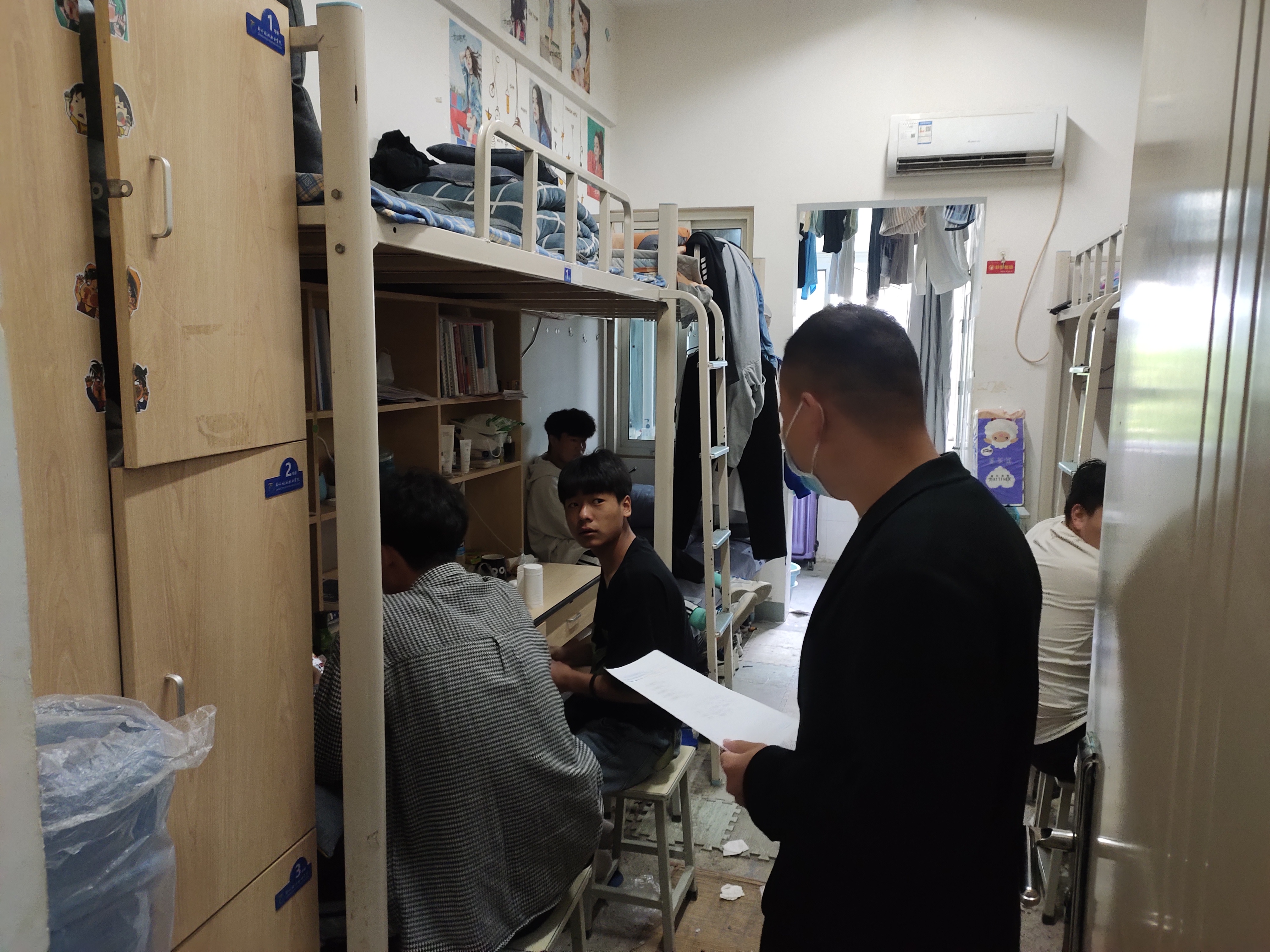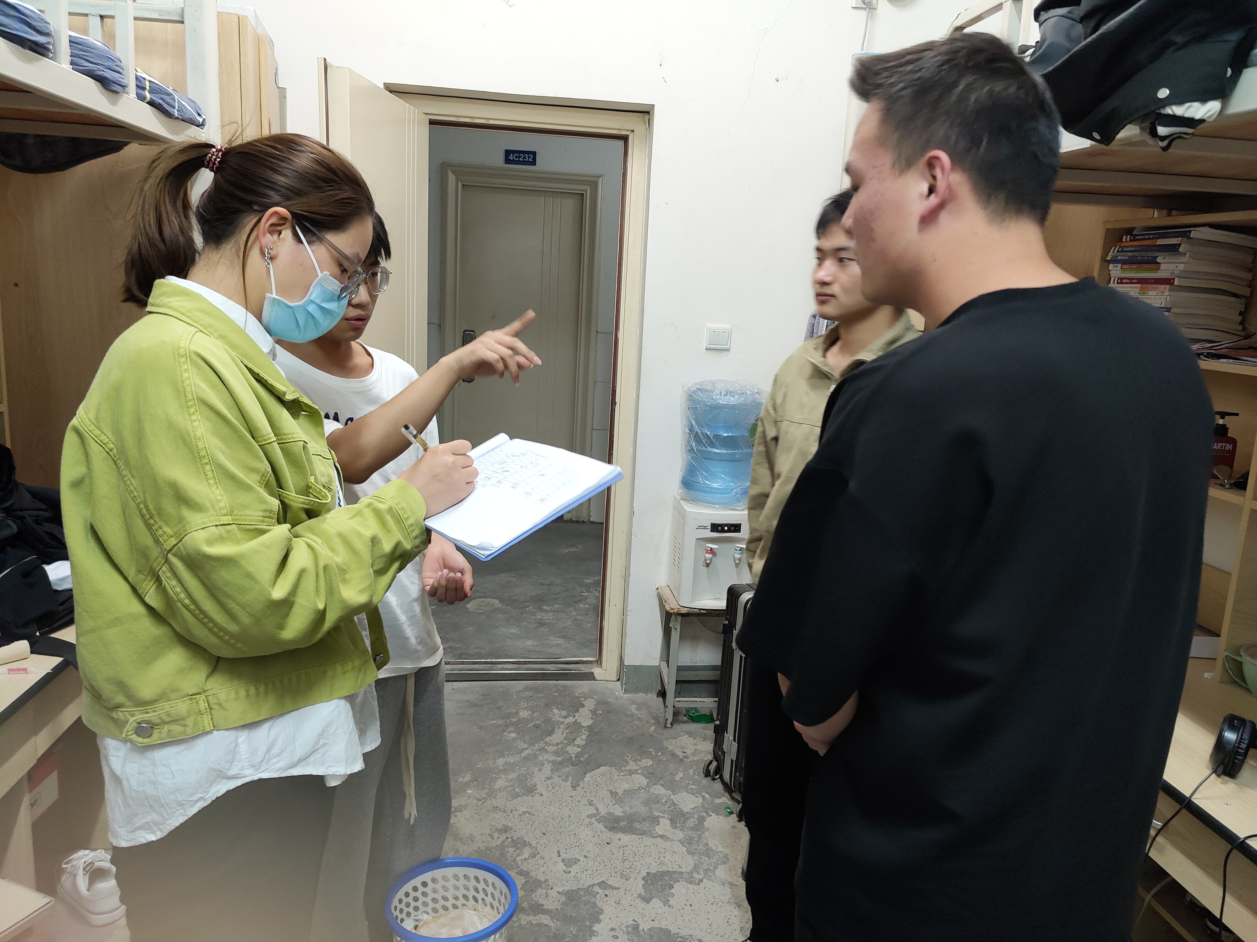 每日辅导员老师完成课业任务后,早晚走访学生宿舍,实时掌握学生动态,解决学生实际困难。走访过程中,我院辅导员们细心叮嘱向学生们一、在防疫期间,每日注意通风消杀,保证好宿舍安全卫生;二、出门务必佩戴好口罩,做好个人防护;三、保持健康心态,加强时间管理,养成良好学习和生活习惯,同时加强体育锻炼,提高抗压和抗挫折能力;最后,辅导员老师们提醒同学们如有困难及时与辅导员联系交流,师生共同努力,坚定抗疫必胜的决心,共同打造平安健康校园。