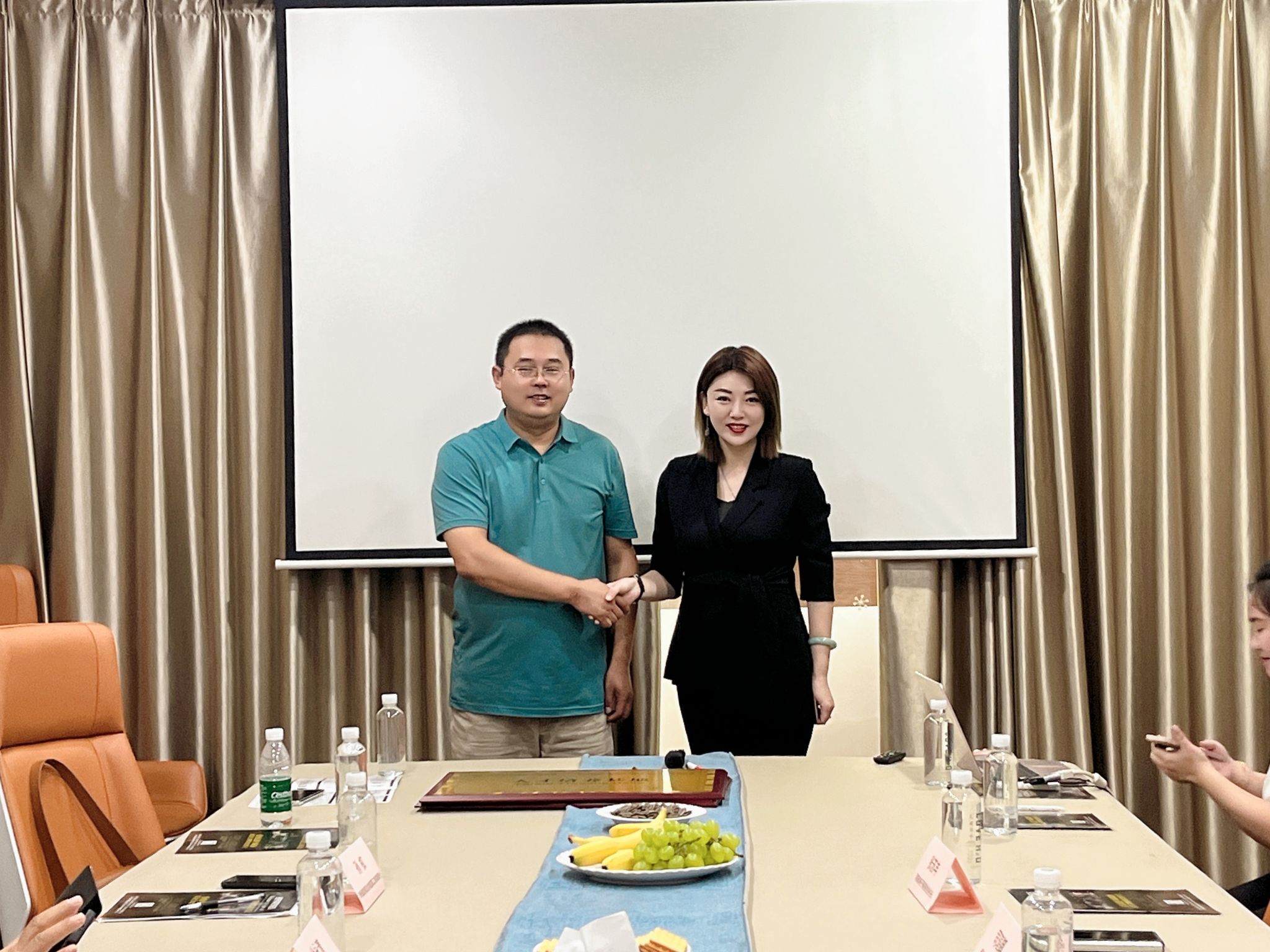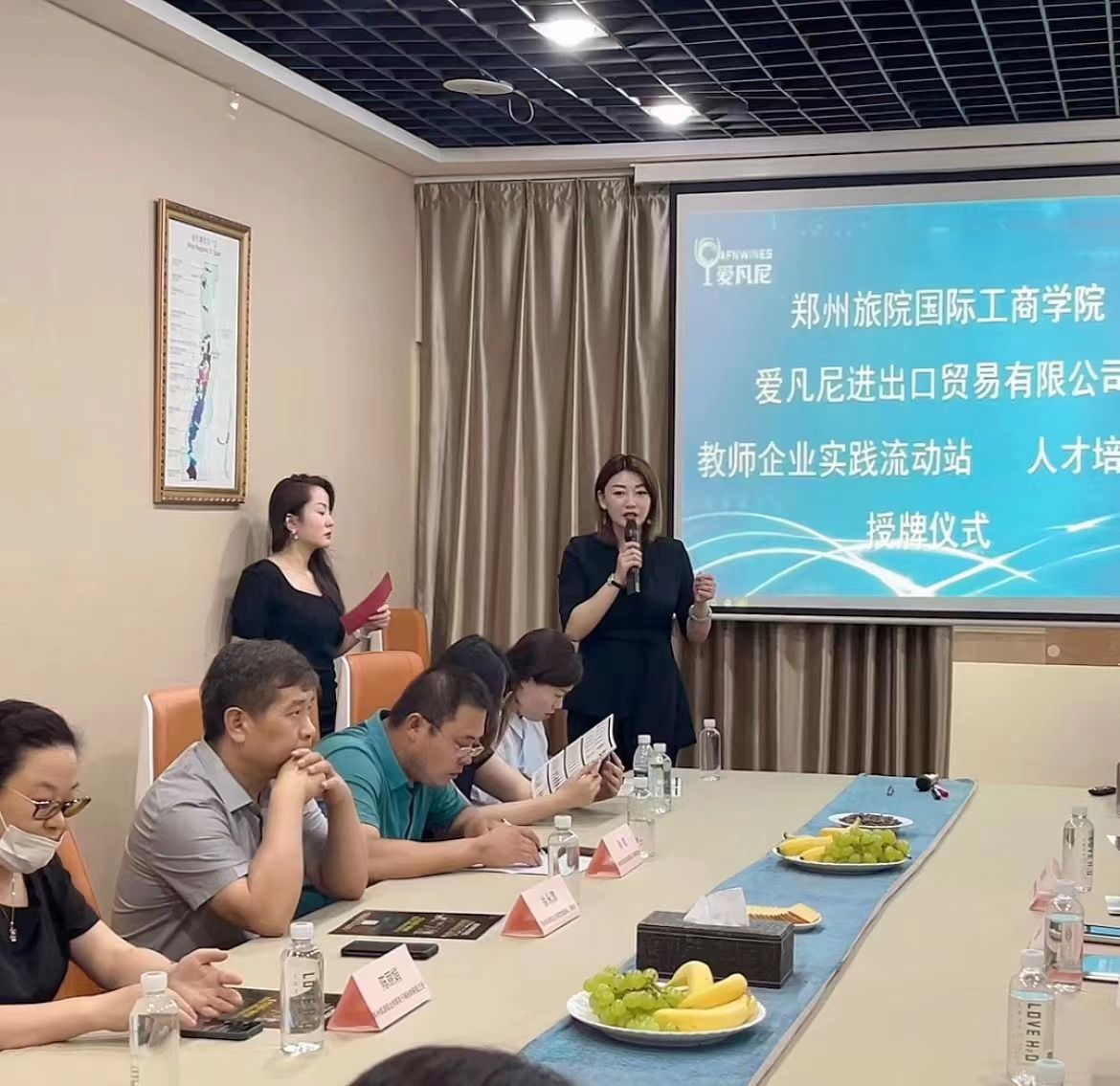座谈结束后,校企双方分别为对方颁发“教师企业实践流动站”和“人才培养基地”两块铭牌。国际工商学院与郑州爱凡尼进出口贸易有限公司进行了企业教师流动工作站协议的签署。