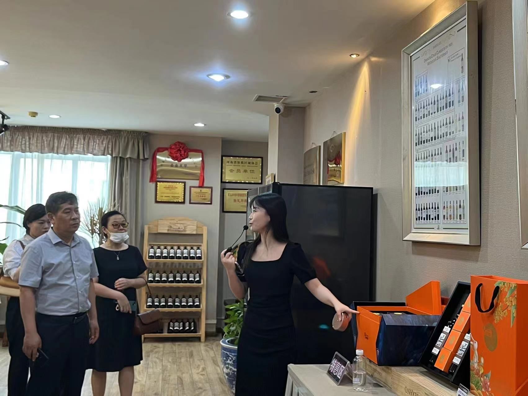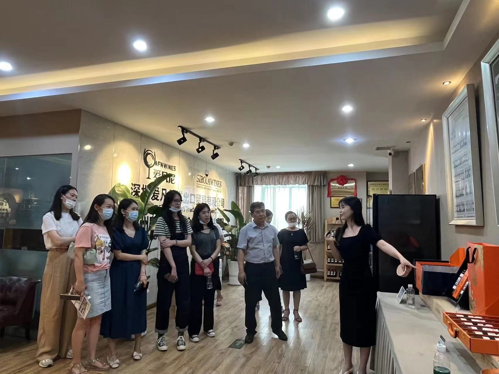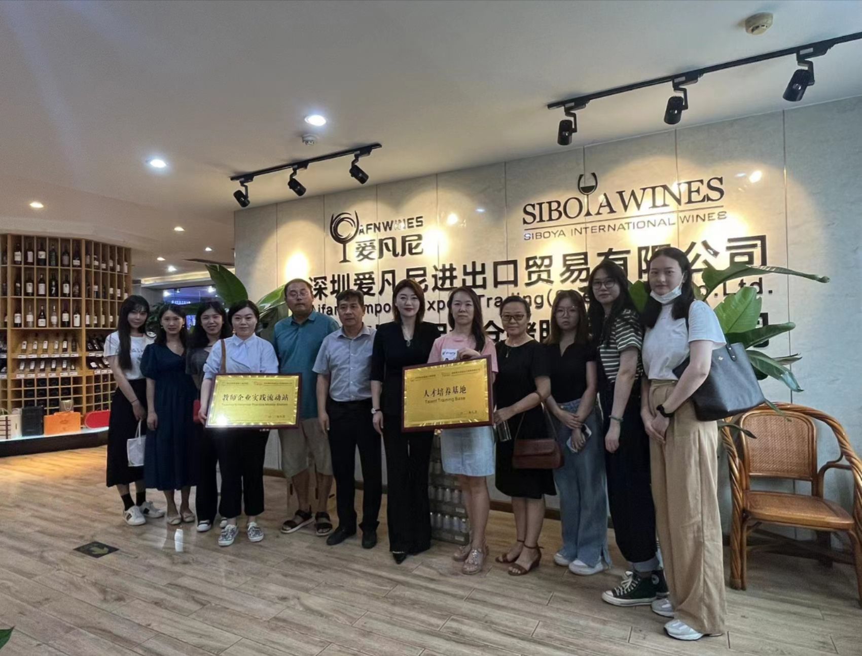 授牌仪式后,在企业优秀员工的引领下,教师团队共同了解了公司酒款,参观保税仓,考察保税仓的仓储条件和环境。