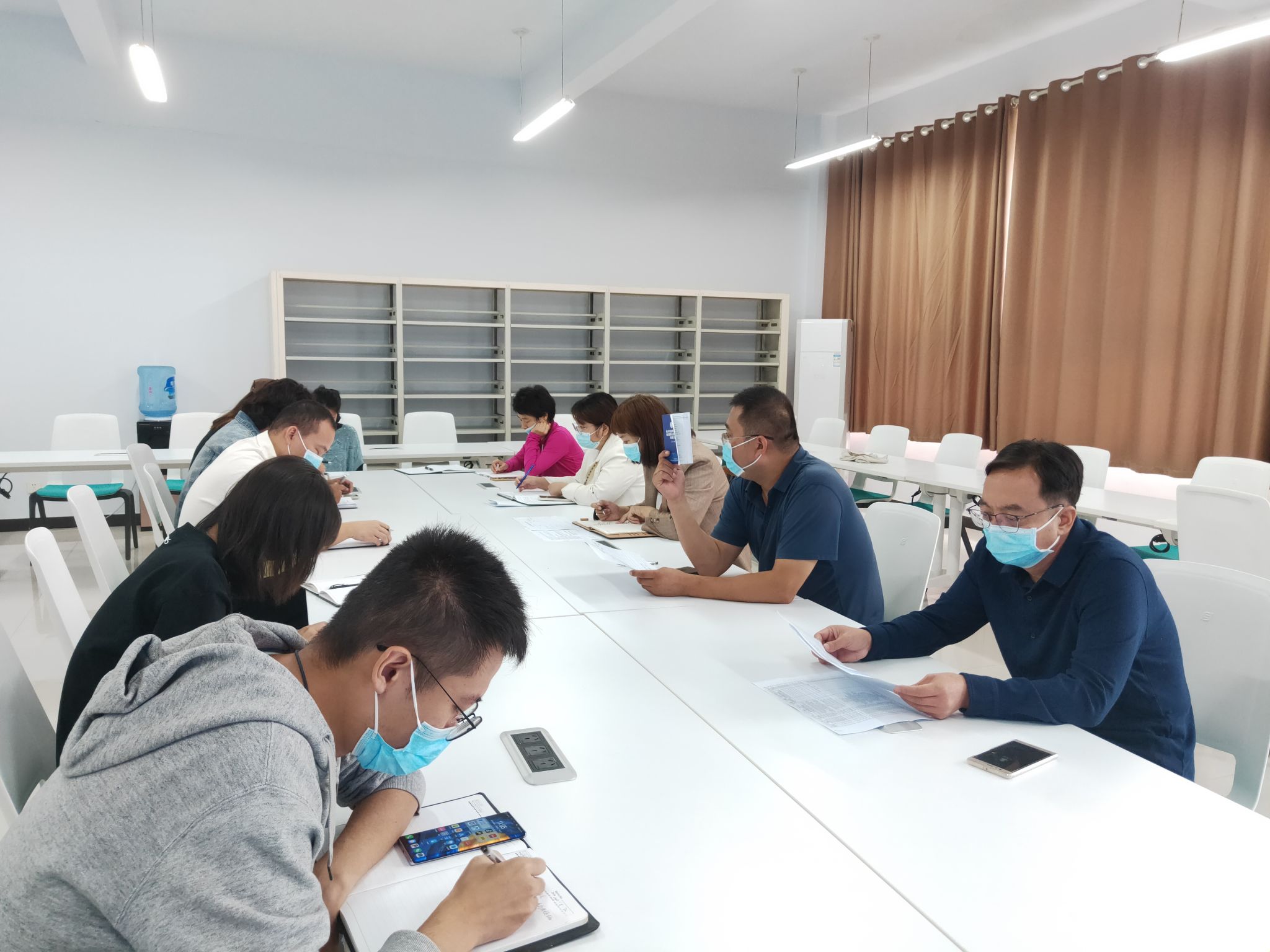 郭崖汇报了教学相关的工作安排。她表示,经多方协调,我院的教学课程已经安排完毕,学生教材已经到位,但由于疫情防控,老生将进行线上授课。为有效开展线上授课,教师们要积极参加职教云(新版)线上教学培训,及时确定授课平台,做好线上授课准备工作。