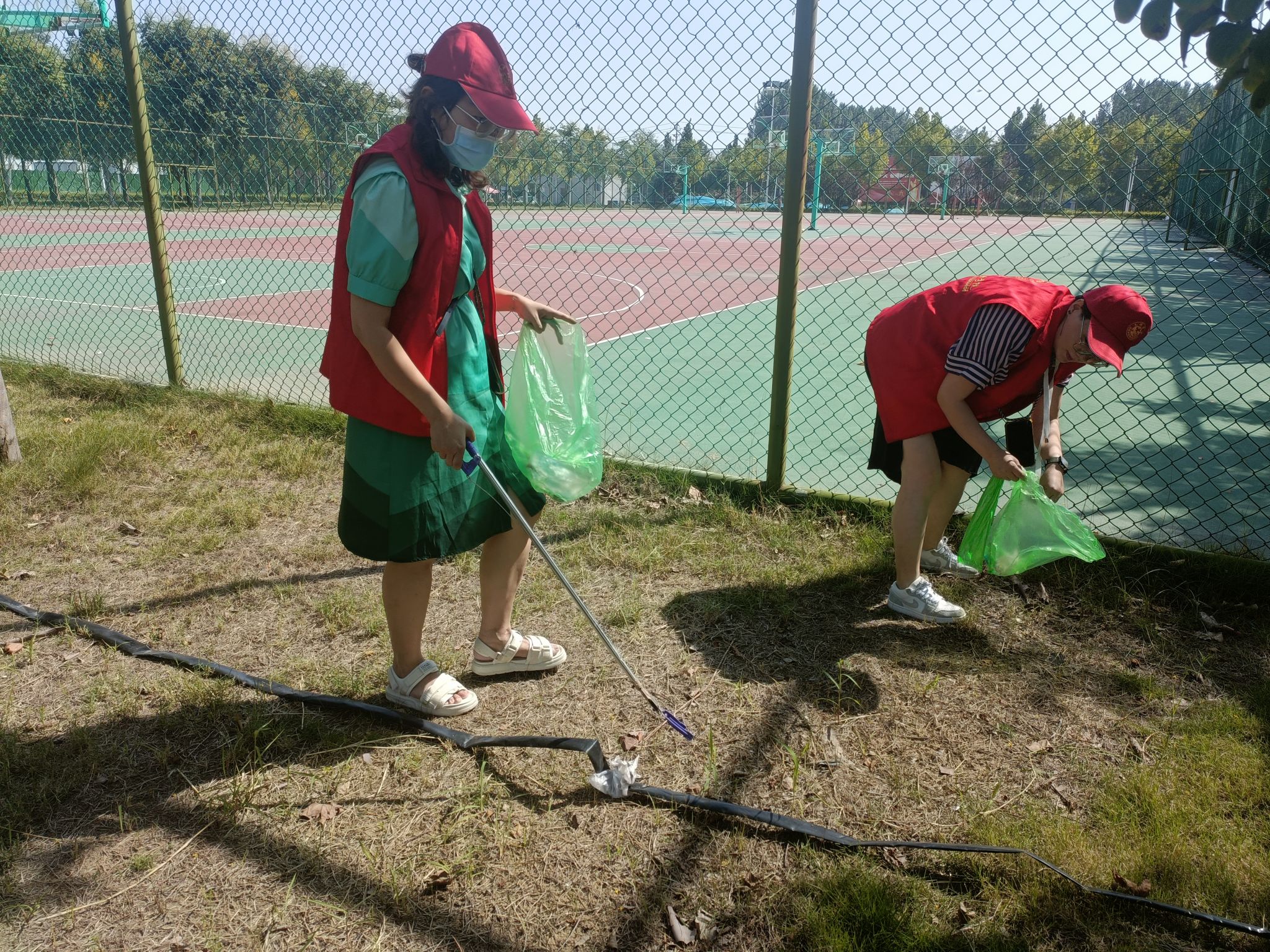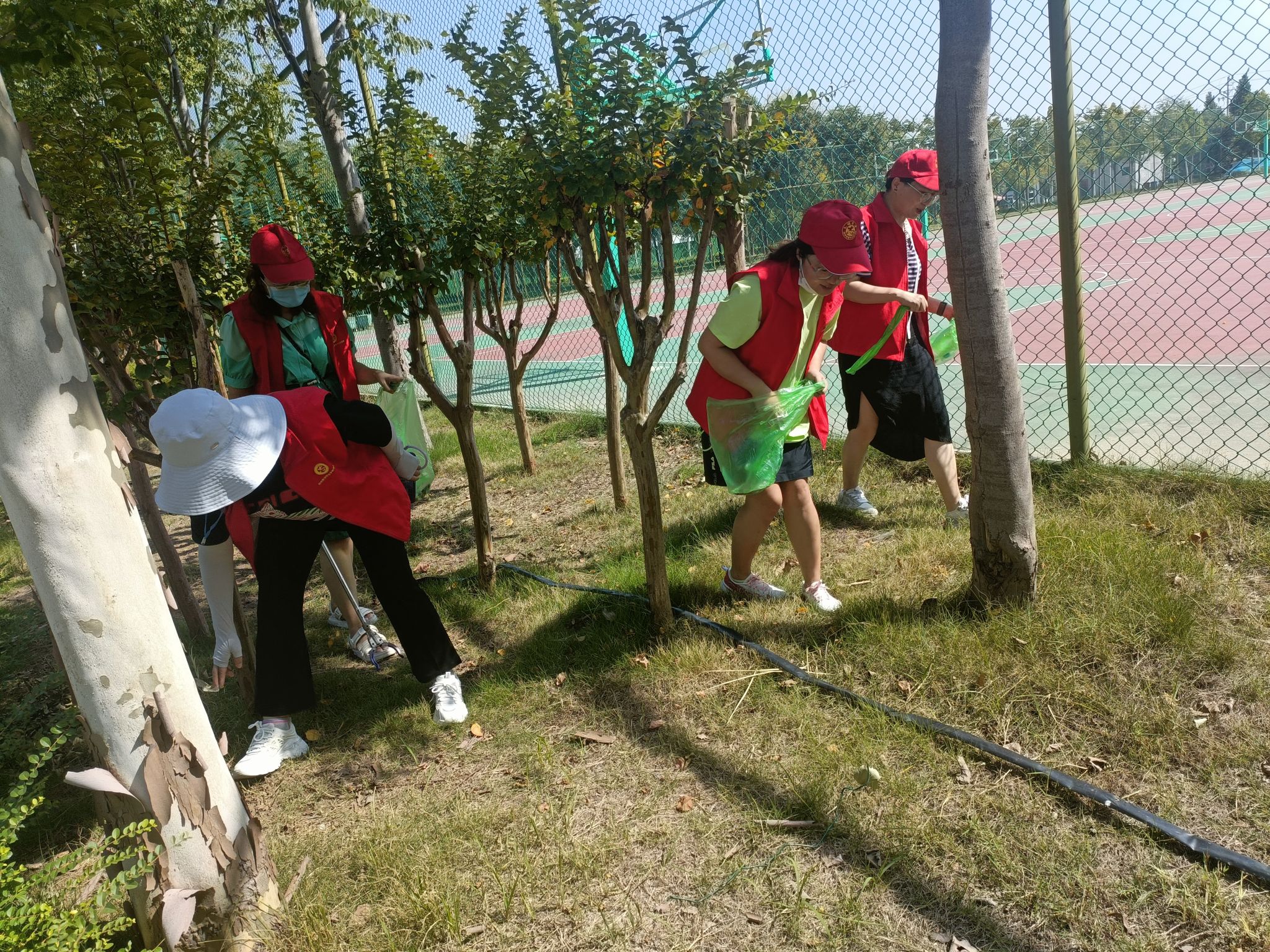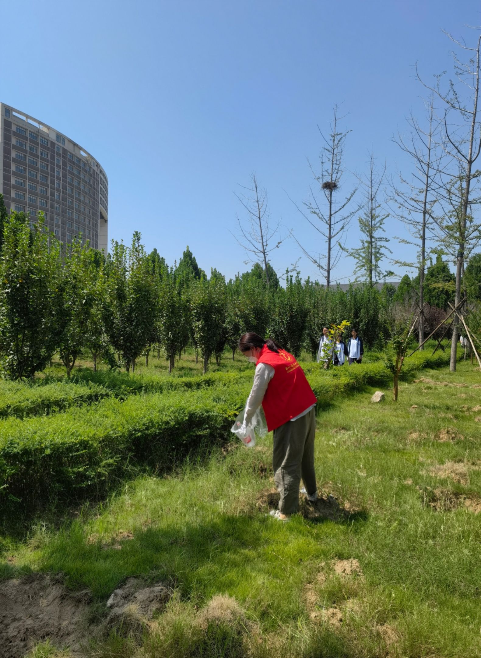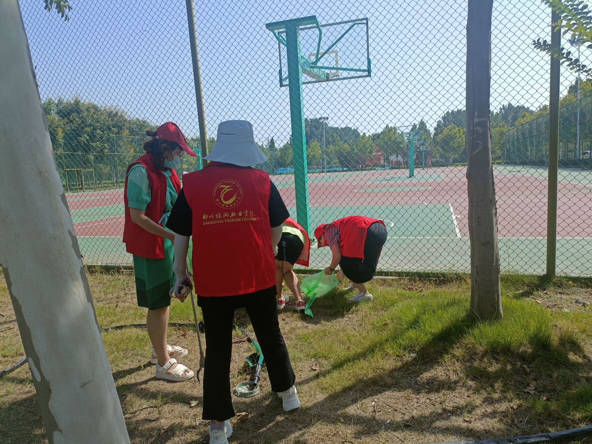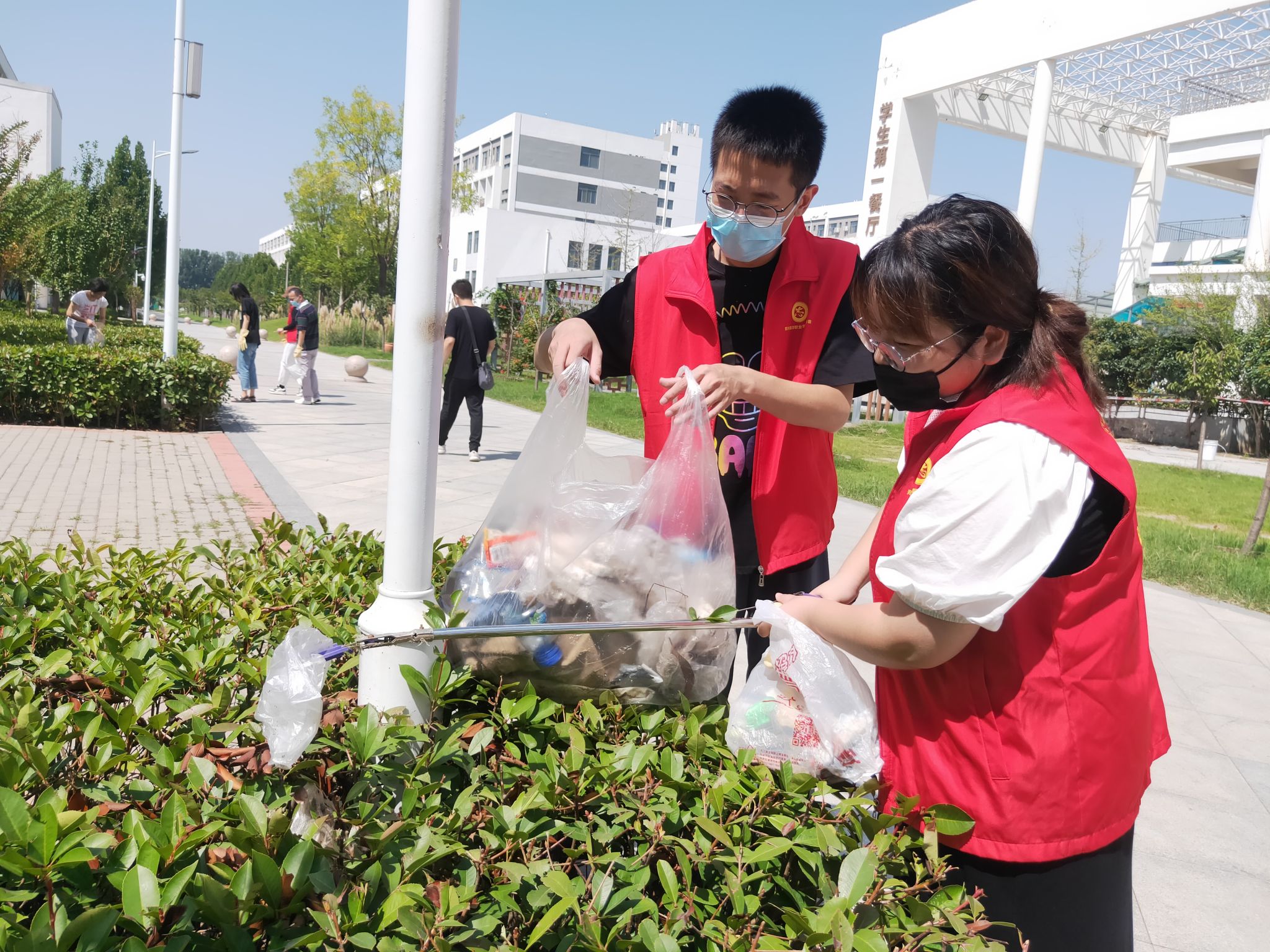 除此之外,我院教师还对学院分管的绿地区域进行了细致的清扫。虽然天气炎热,但教师们不怕脏、不怕累,不顾枝桠的剐蹭,捡起草坪上、绿化带丛中的各类垃圾,并分类处理,做到卫生无死角、无污物。经过大家的辛勤劳动,绿地区域的环境更加干净清爽,营造了浓厚的绿色校园氛围。
