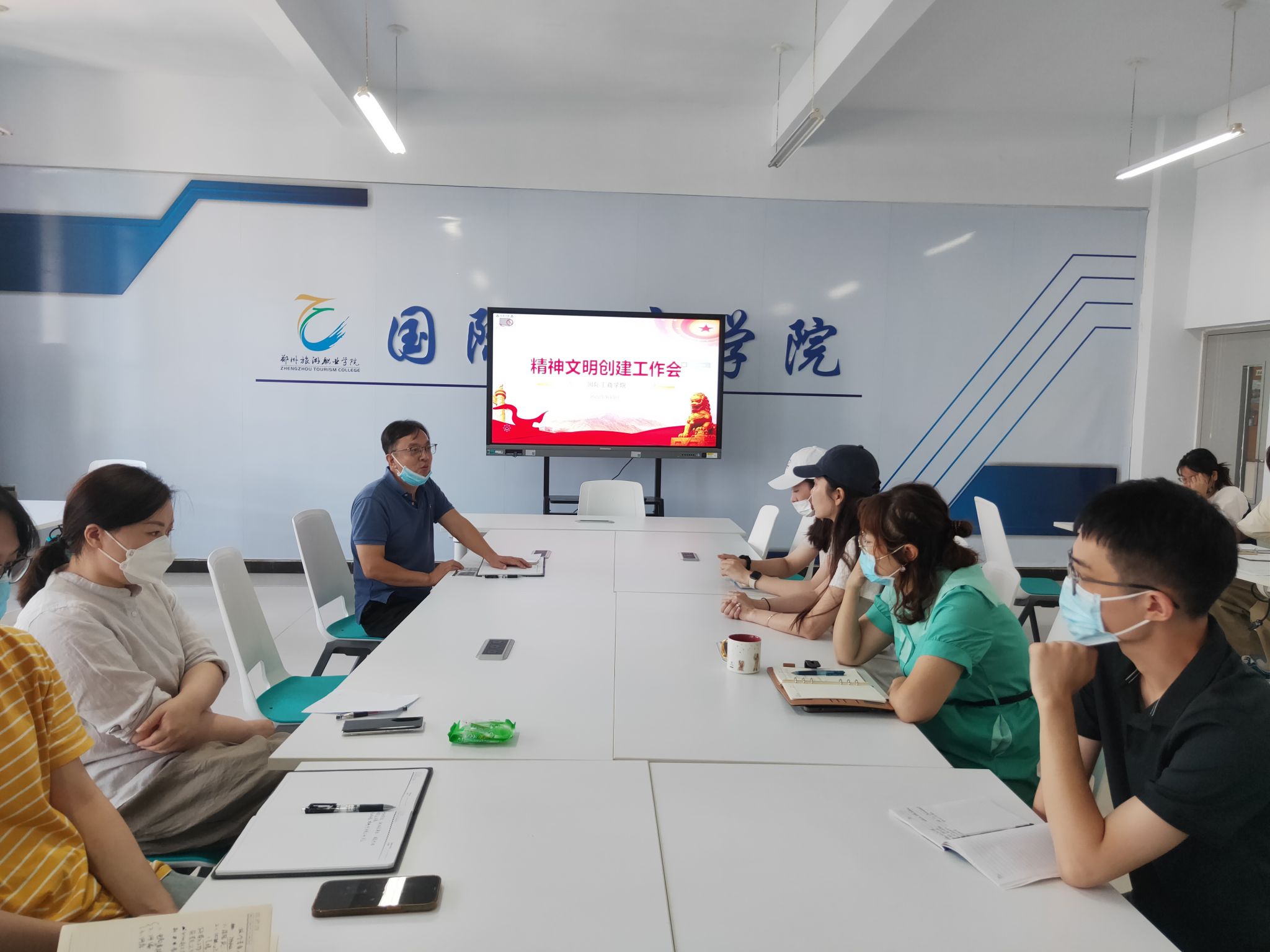 在活动开始前,我院在1B304会议室召开精神文明创建工作会。党总支书记张鹏向大家强调文明创建工作的重要性,讲解本次创文检查的注意事项与具体分工。张鹏表示,创文检查在即,希望大家积极响应文明号召,特别是党员干部,更要以身作则,发挥党员示范带头作用,自觉遵守交通规则,认真做好文明创建工作,努力营造向善向上的校园文明之风,争创河南省文明校园标兵单位。