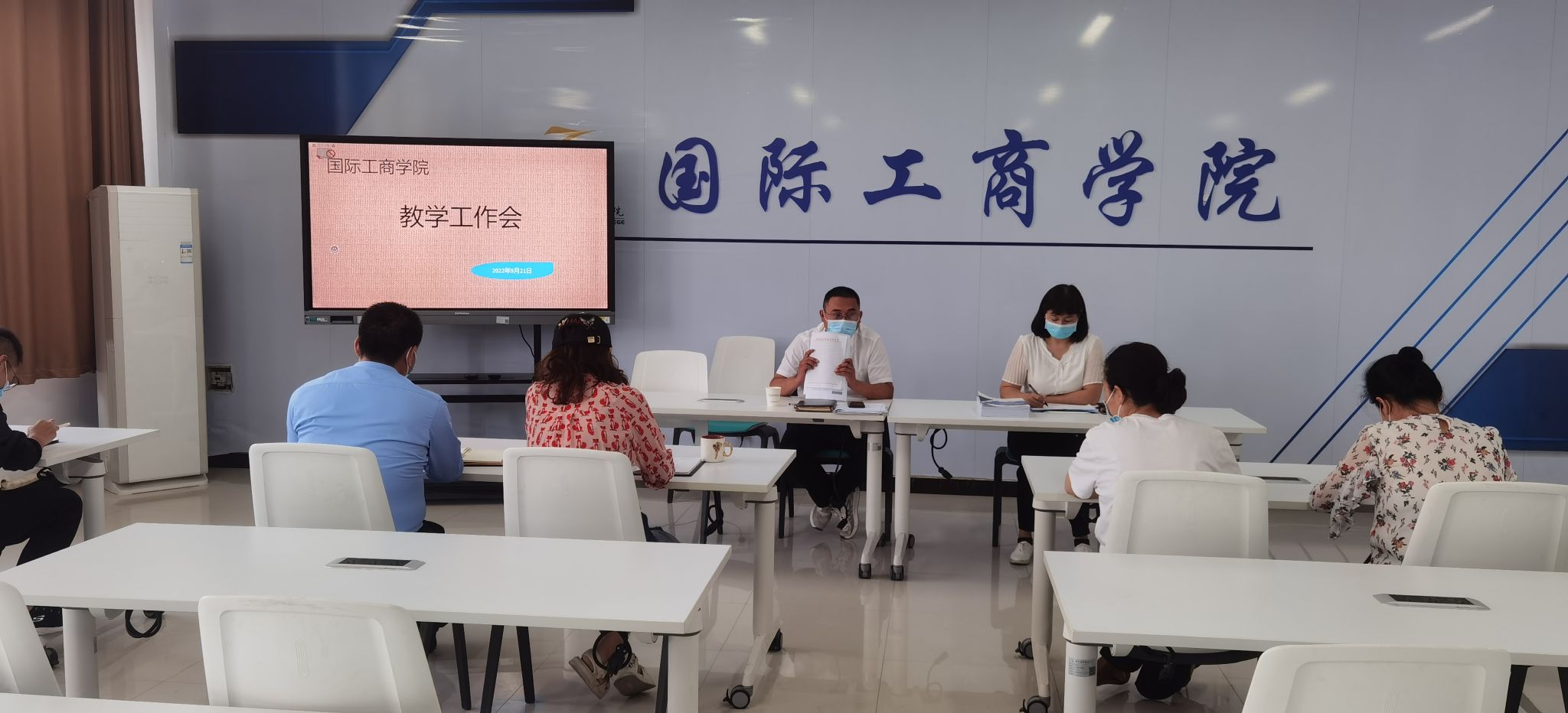 9月21日下午,国际工商学院于1B304会议室召开教学工作会。国际工商学院孙权院长、郭崖副院长、各专业教研室主任参加会议。会议由孙权院长主持。