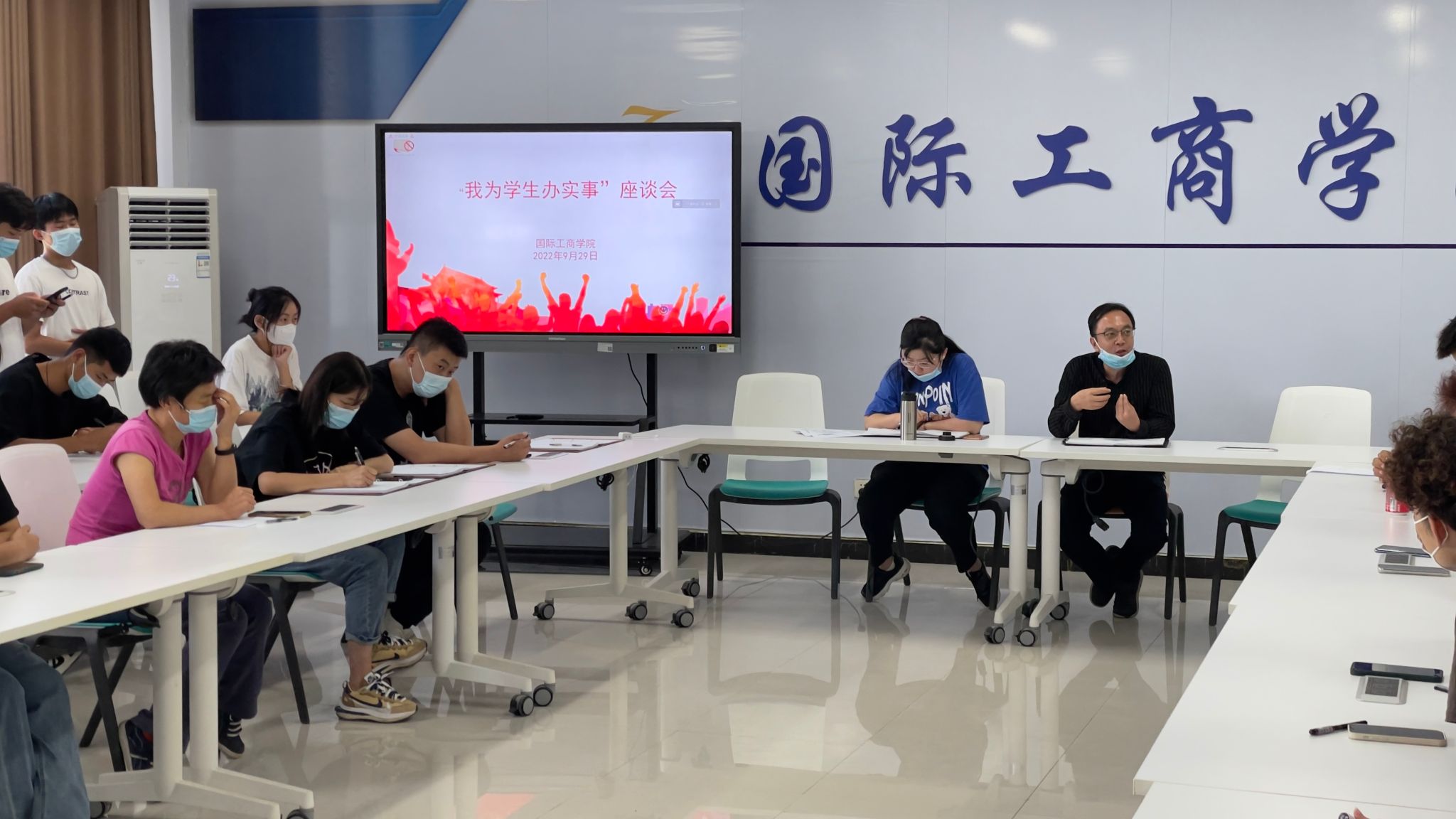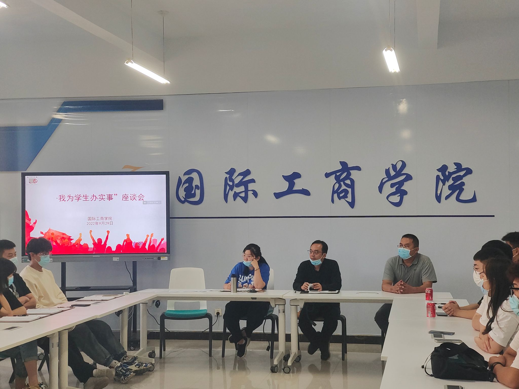 为深入开展“我为学生办实事”实践活动,听取学生对学校发展的意见建议,了解学生在工作、学习和生活中的困难问题,9月28日下午,国际工商学院在1B304会议室召开“我为学生办实事”实践调研座谈会。我院党总支书记张鹏、我院院长孙权出席会议,学院团总支书记谢锡莹、辅导员、学生干部、在校班级班长和班级学生代表参加会议。会议由团总支书记谢锡莹主持。