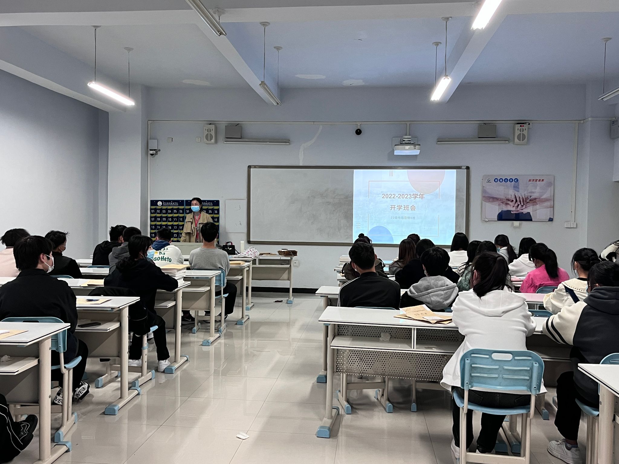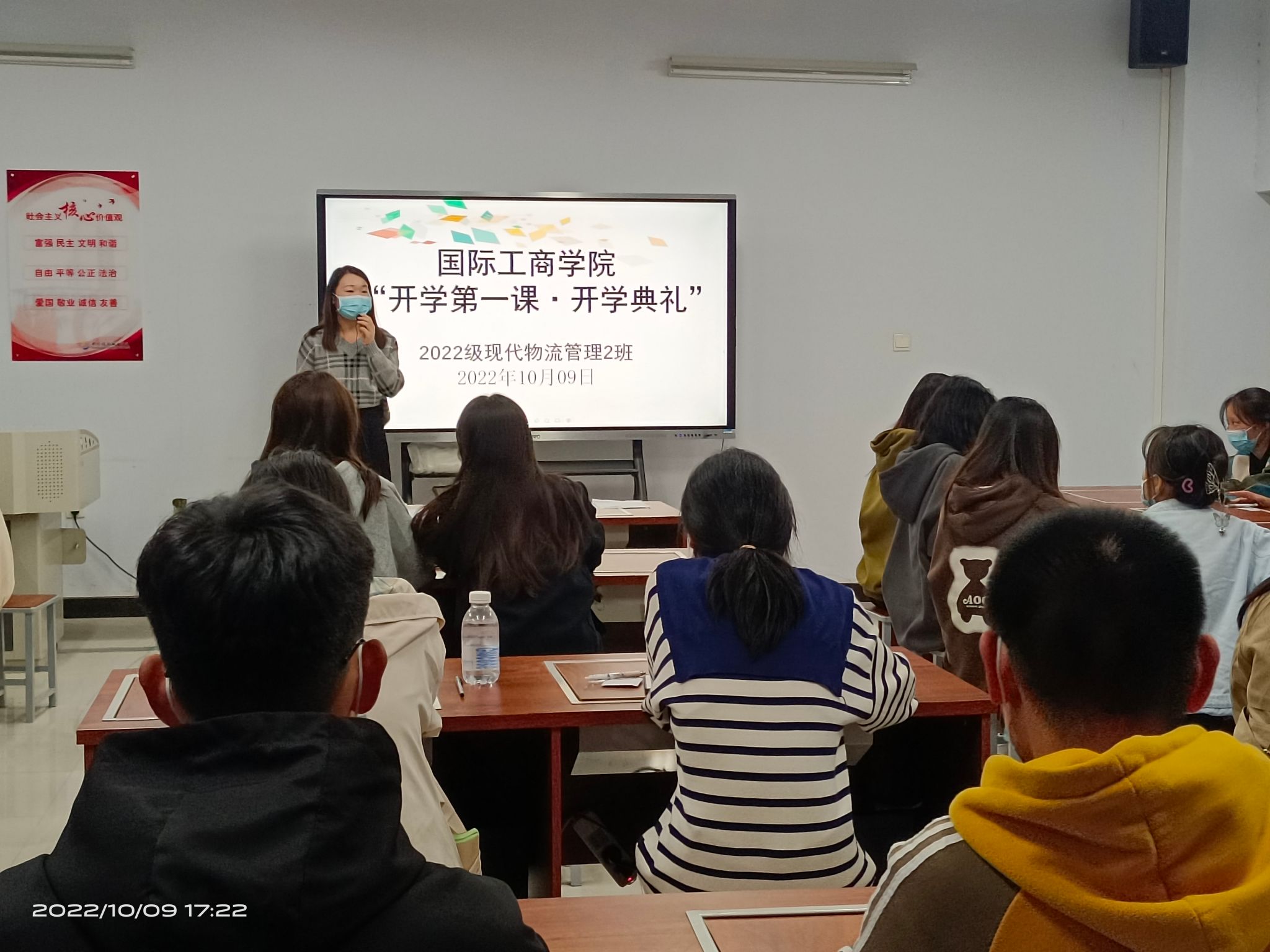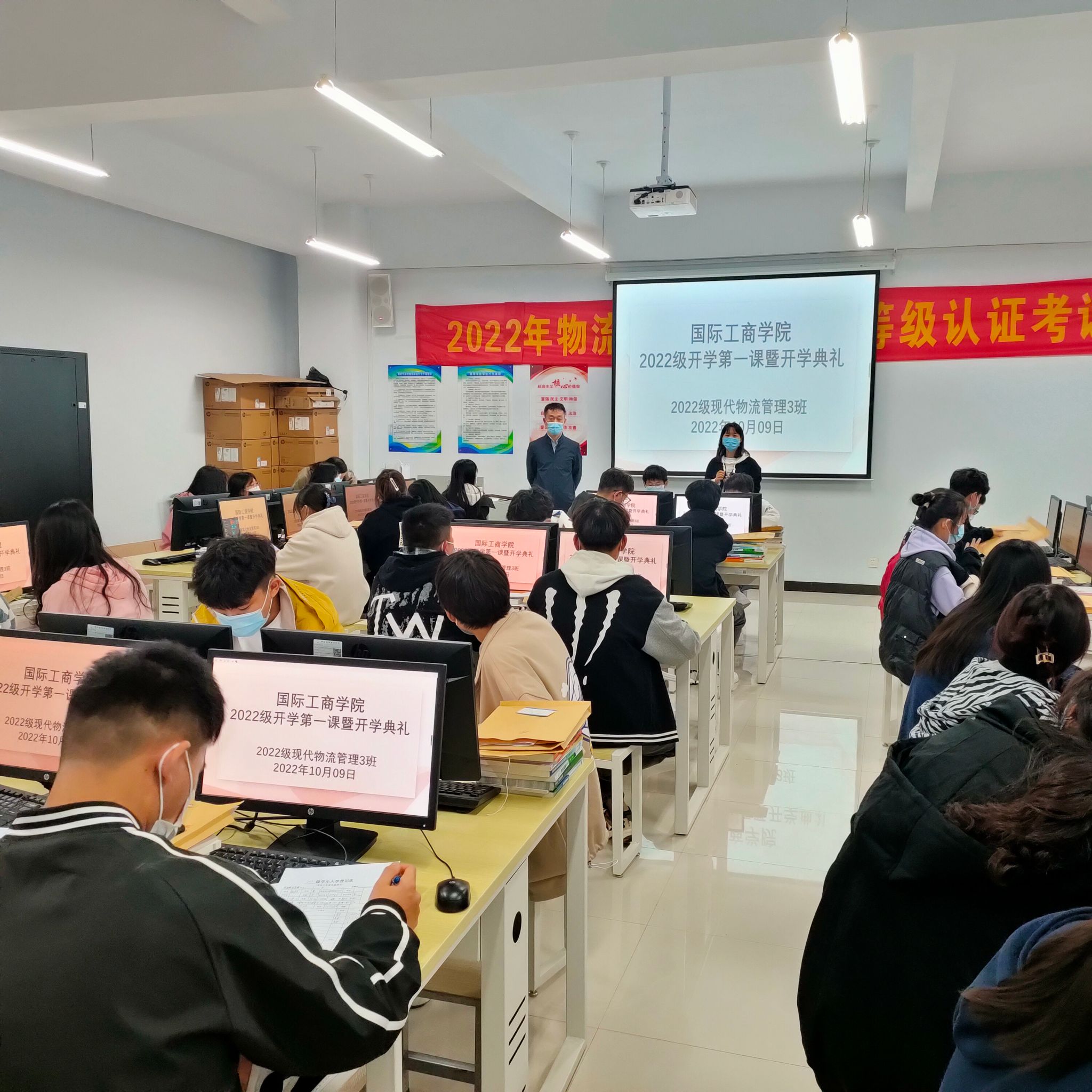 随着新生入学报到工作的圆满结束,2022级新生正式开启了大学生活。为了帮助新生快速熟悉学校,上好开学第一课,10月9日晚上,我院2022级新生班主任、辅导员老师在教学楼开展新生开学第一课暨开学典礼启动仪式。