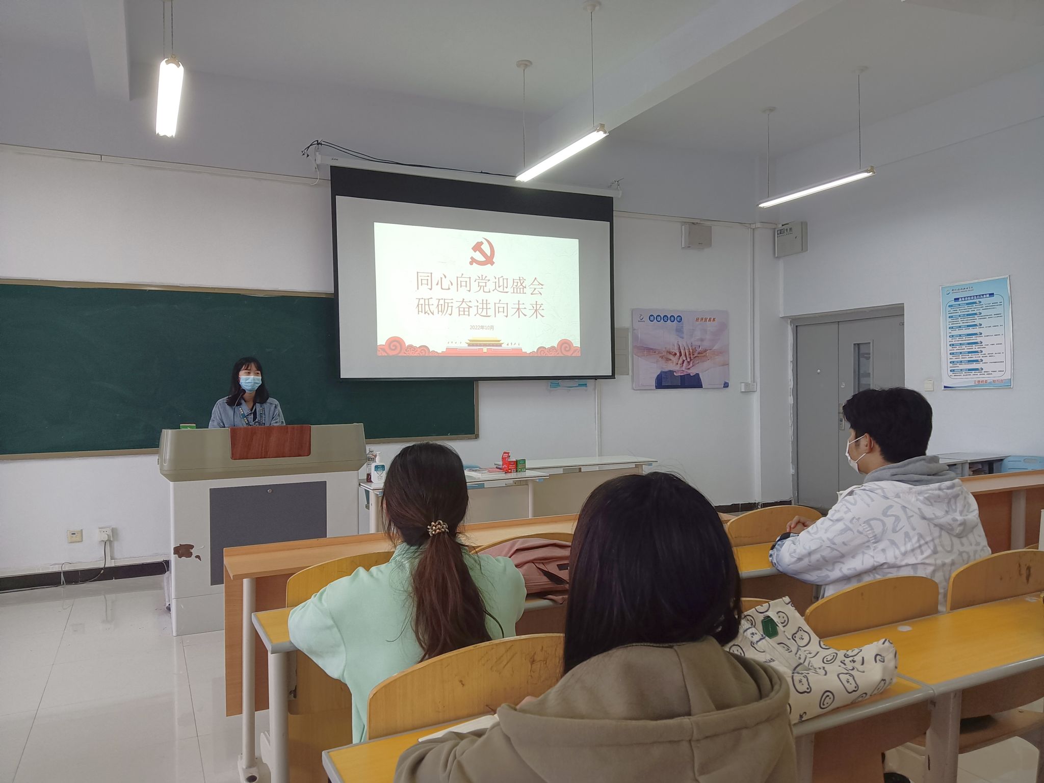 党的二十大召开在即,10月15日下午国际工商学院学生党支部在1B602教室举行“同心向党迎盛会,砥砺奋进向未来”党日活动,进一步营造喜迎党的二十大胜利召开的热烈氛围,引导入党积极分子统一思想,凝结共识,坚定理想信念,永远跟党走。本次活动由国际工商学院党支部书记葛秀丽、副书记孙文霞主持,在校入党积极分子及发展对象共同参加。