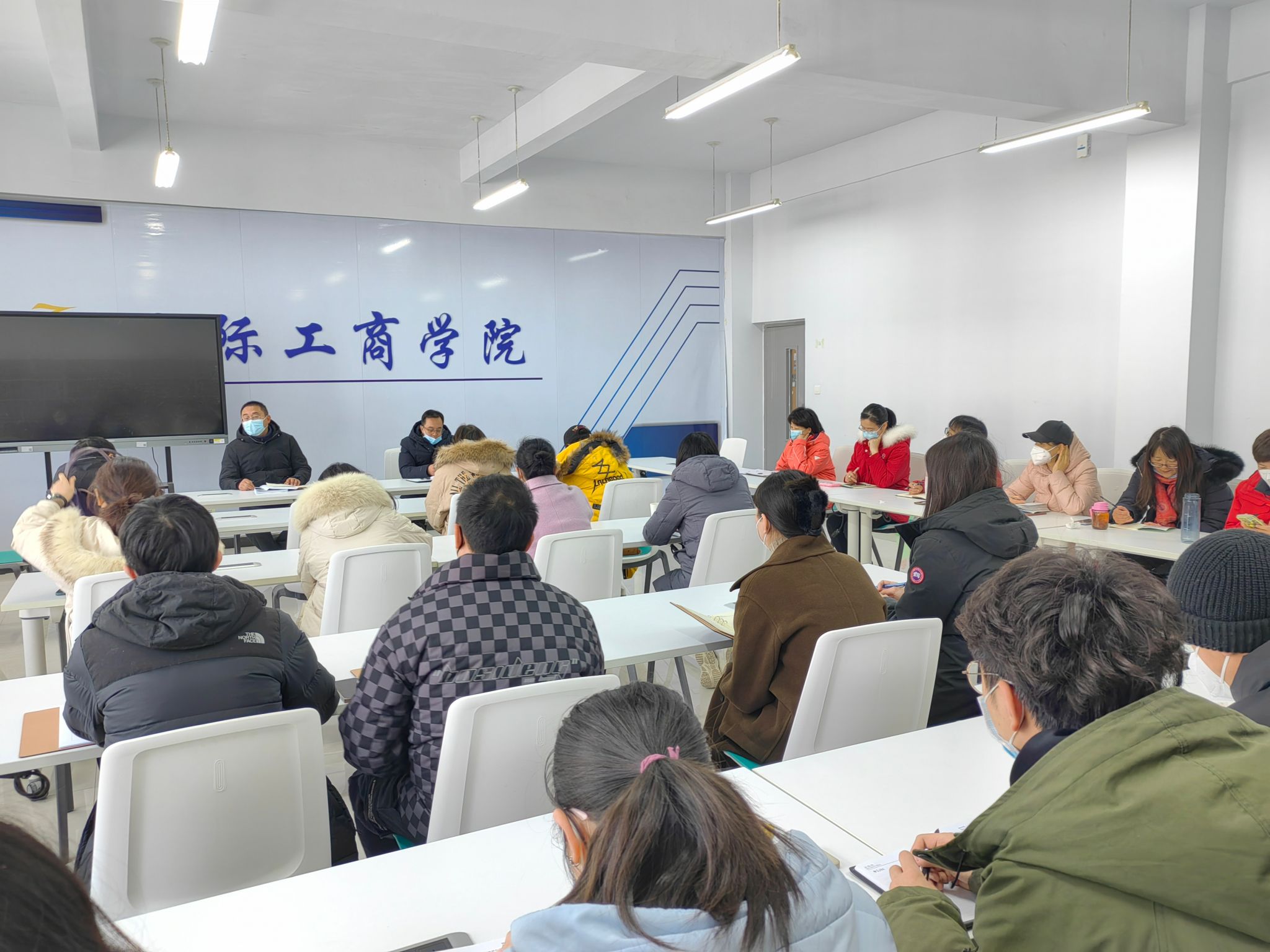 2月14日,国际工商学院在1B304会议室召开开学后第一次教学工作会。孙权院长、张鹏书记、郭崖副院长、全体教职工参加会议。会议由孙权院长主持。