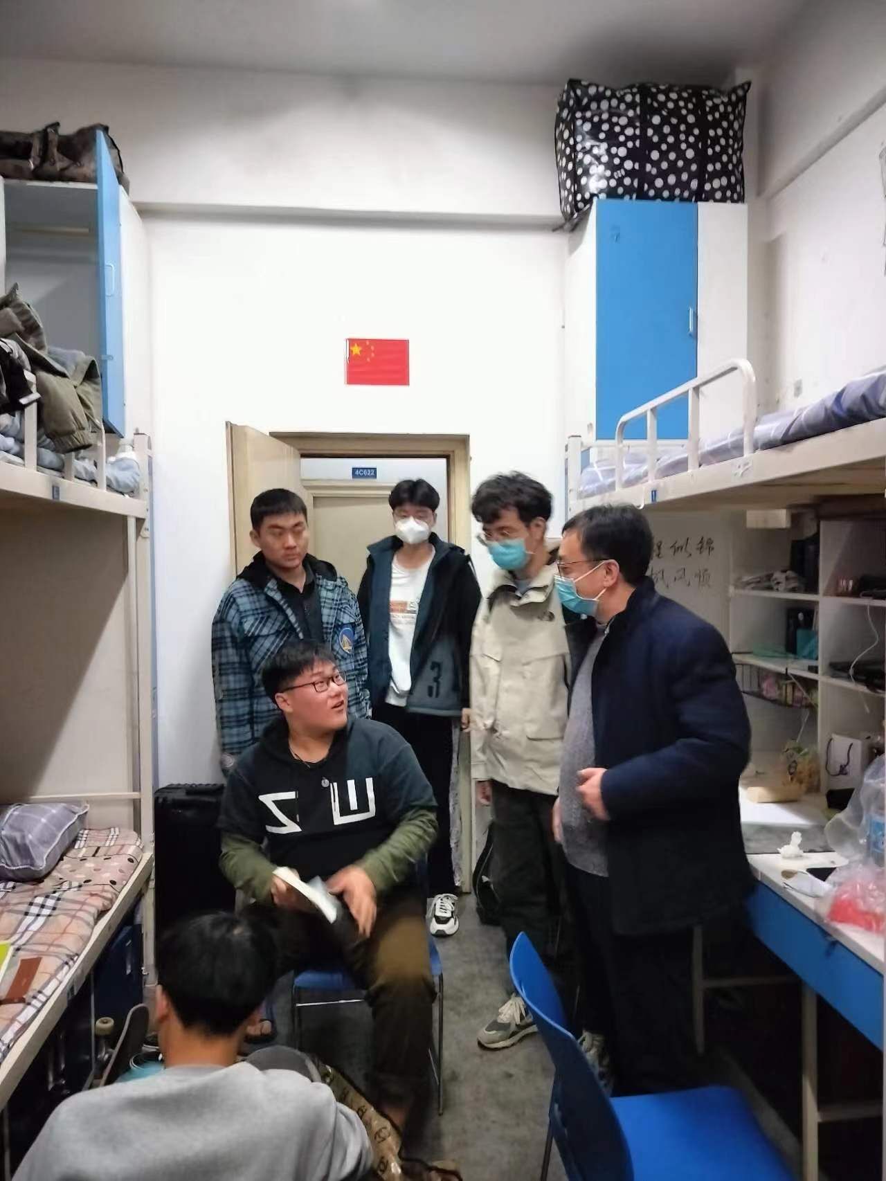 开学伊始,春寒料峭,阻挡不了国际工商学院学工队伍走访宿舍的脚步。2月19日晚,国际工商学院党总支书记张鹏带领全体专兼职辅导员深入学生宿舍,走访慰问新学期返校学生。
