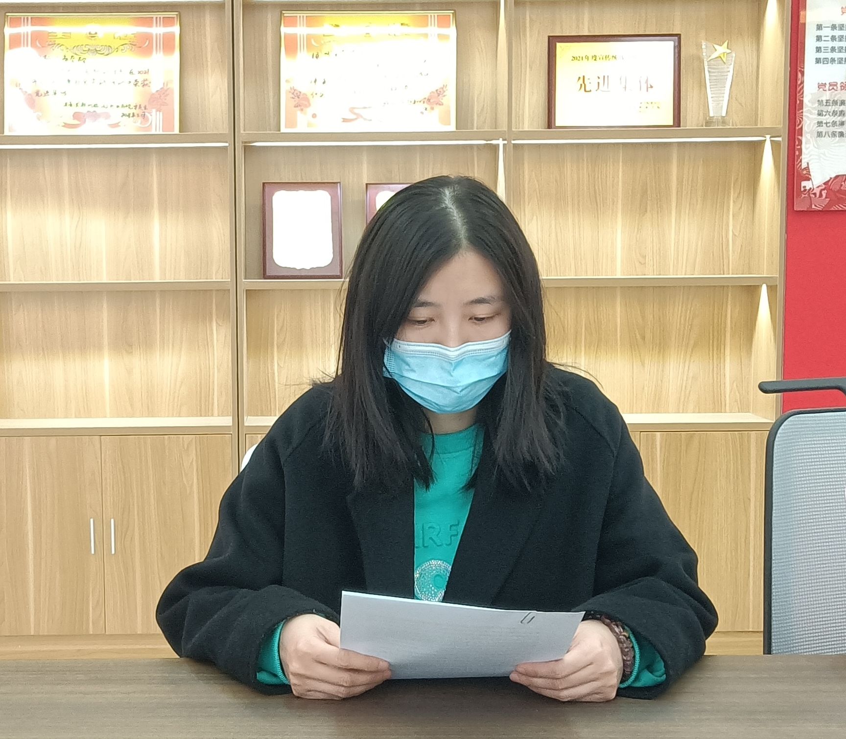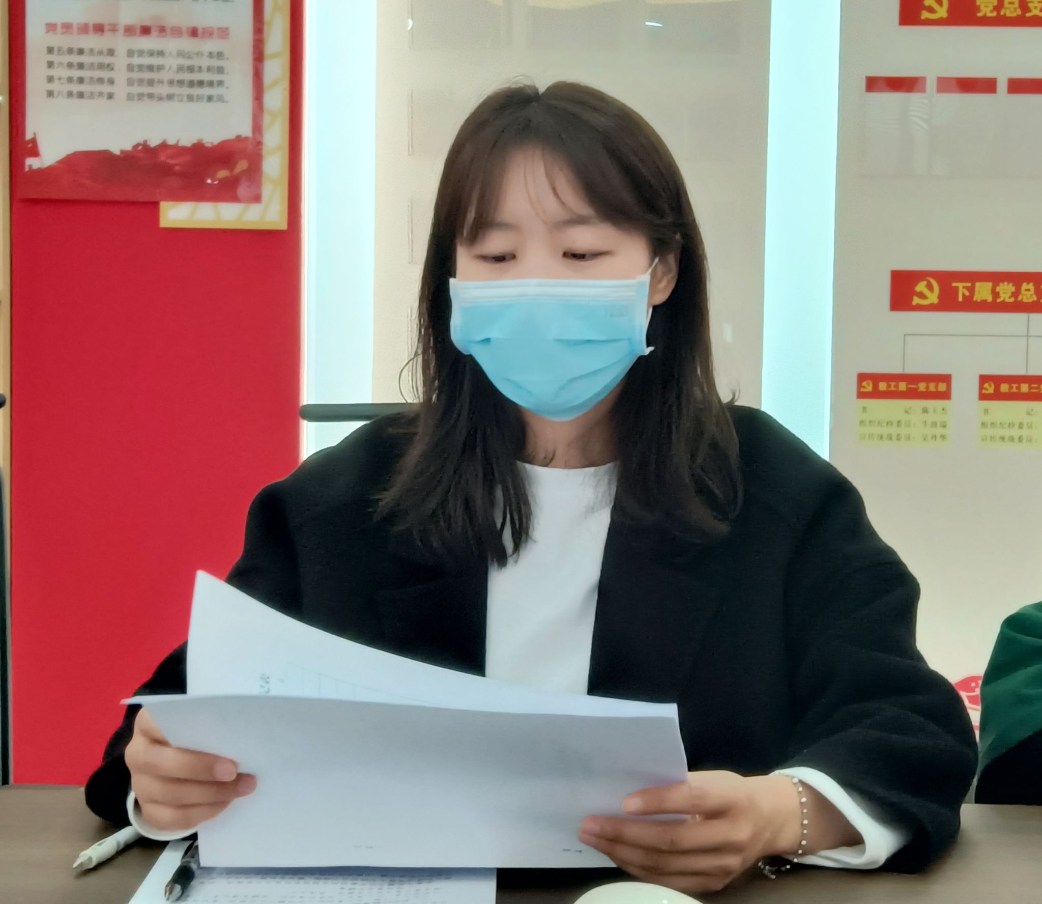 最后,葛秀丽进行总结,表明支部要紧紧围绕深入学习贯彻党的二十大精神,把全体党员的思想统一到党的二十大精神上来,认真抓好整改落实,推动广大党员将党的二十大精神内化于心、外化于行。