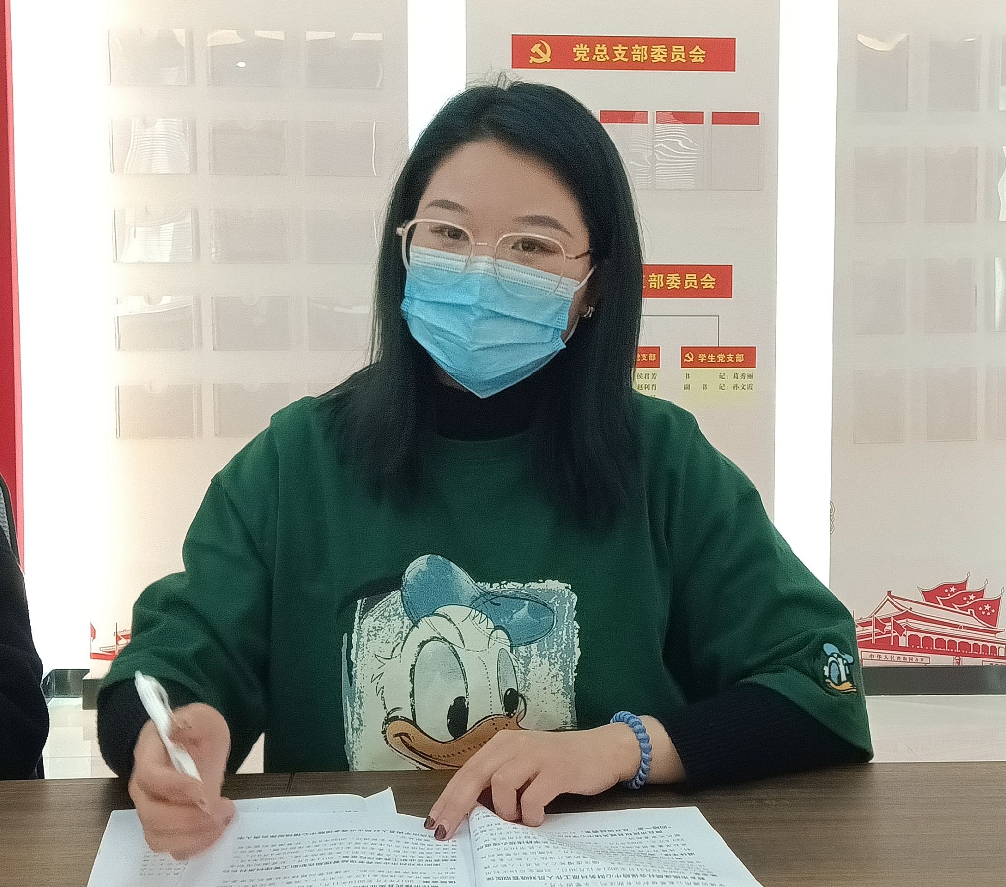 会议开始,学生党支部副书记孙文霞带领大家一起学习了《党的二十大报告》相关内容,各位党员同志就本次学习发表学习感言,表示将在以后工作中努力把党的二十大精神落实到实践中、体现在成效上。