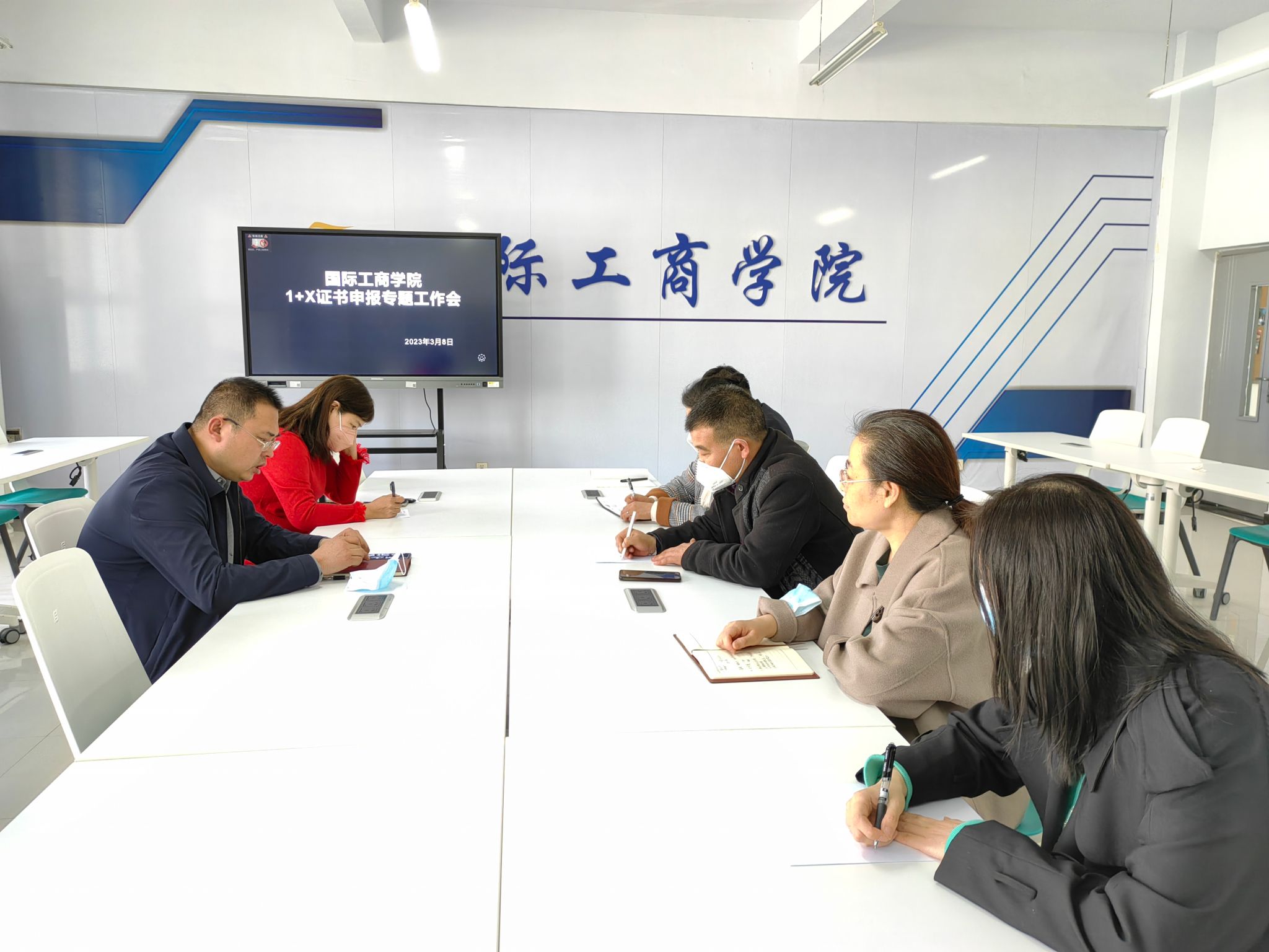3月8日,国际工商学院在1B304会议室召开1+X证书申报专题工作会。国际工商学院院长孙权、副院长郭崖、各专业负责人参加会议。会议由孙权院长主持。