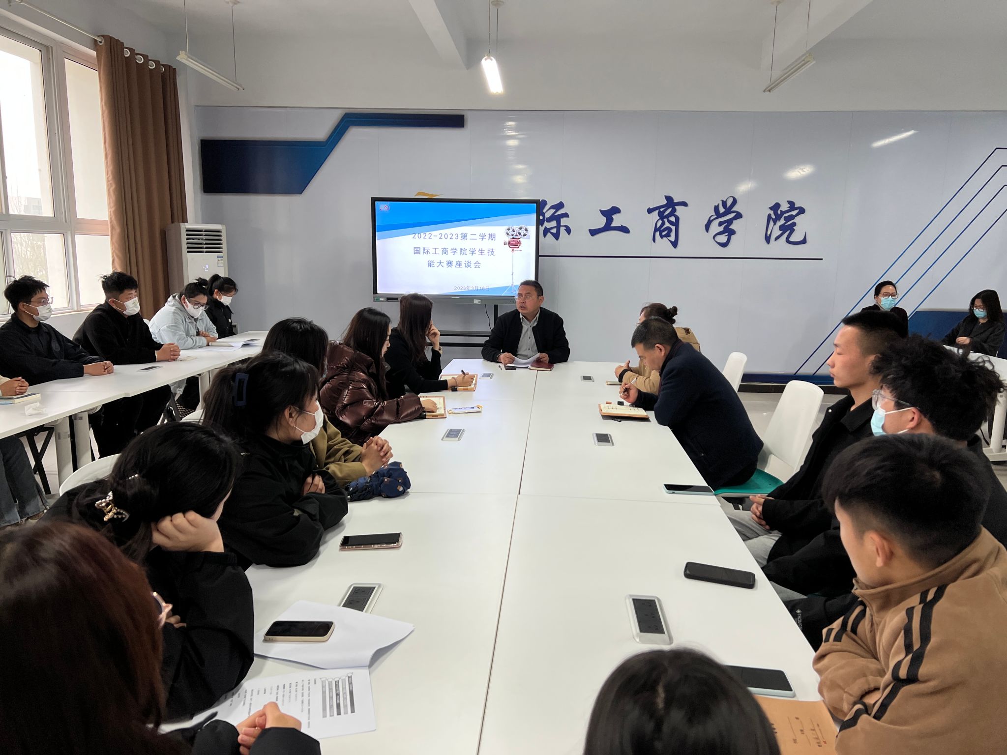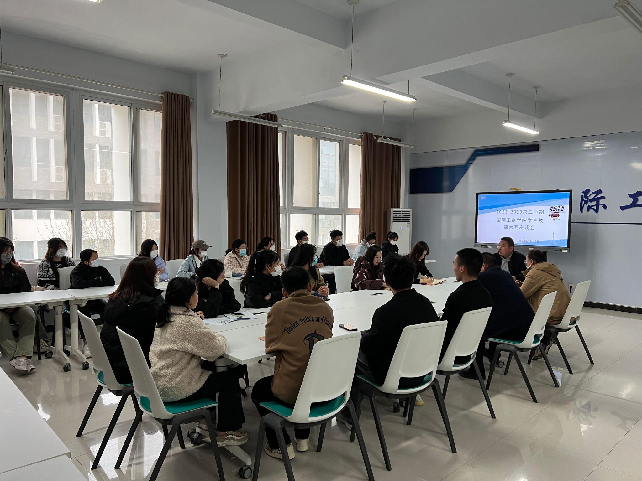 3月16日中午,国际工商学院在1B304会议室召开2022—2023学年第二学期学生技能大赛座谈会。国际工商学院孙权院长、技能大赛指导教师、参赛学生参加会议。会议由孙权院长主持。