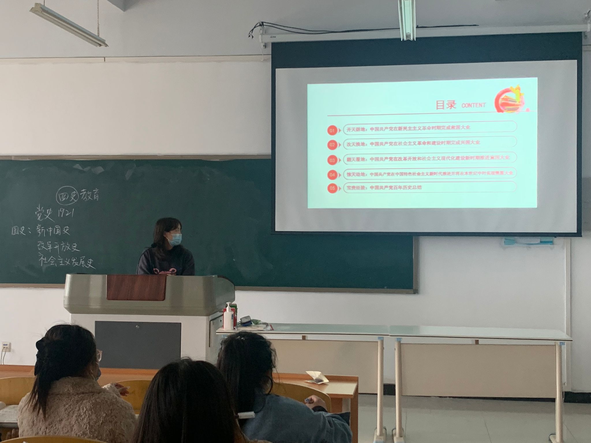 党课开始,孙文霞老师指出:我们党的百年历史是用鲜血、汗水、泪水、勇气、智慧、力量写就的,是筚路蓝缕、披荆斩棘、艰苦创业、砥砺前行、充满艰险、充满神奇的百年,是苦难中铸就辉煌、挫折后毅然奋起、探索中收获成功、转折中开创新局、奋斗后赢得未来的百年,以此引出今天的党课培训。