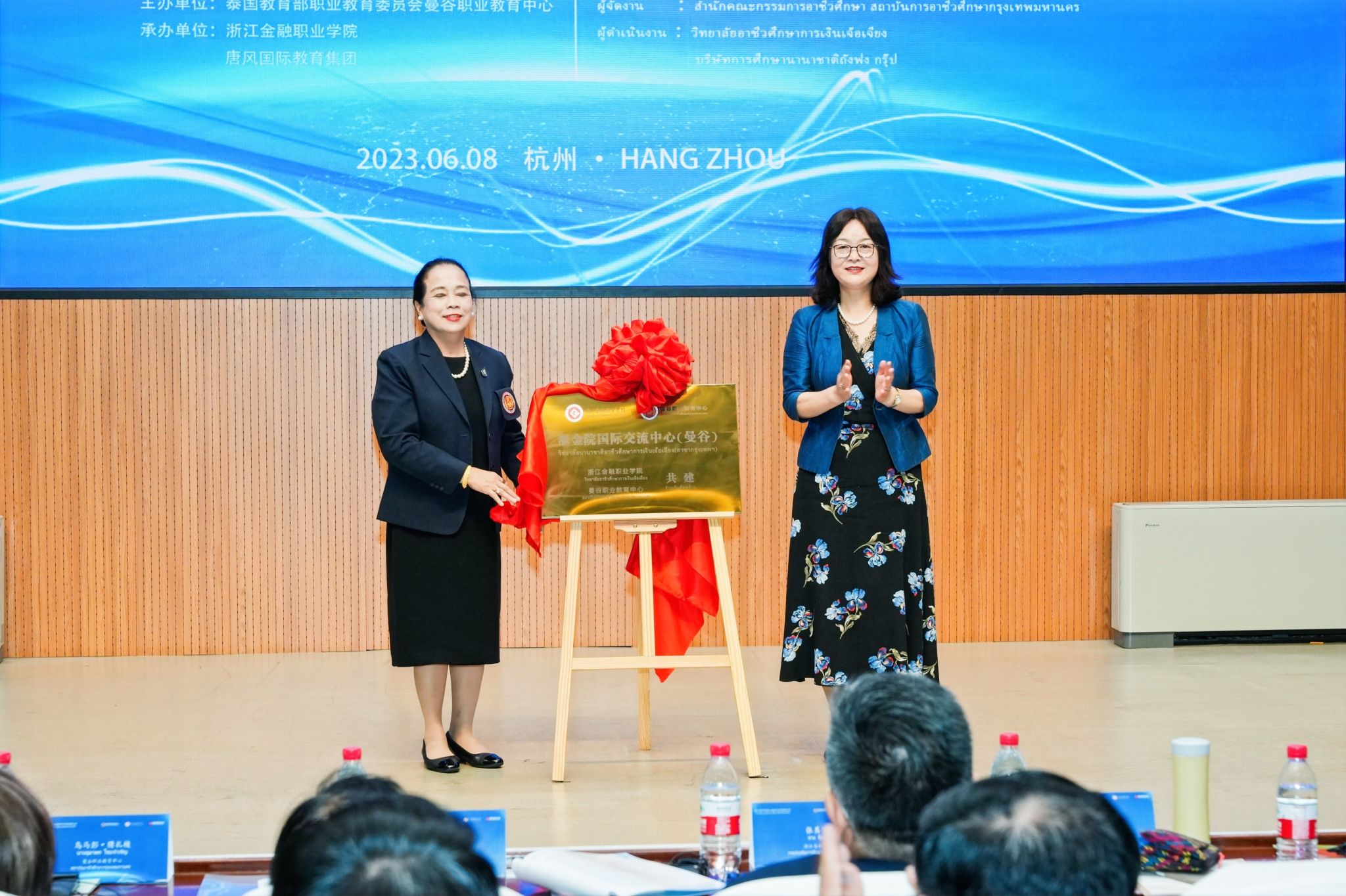 在各方共同见证下,浙江金融职业学院泰国师资培训基地、浙金院国际交流中心揭牌仪式成功举办,浙江金融职业学院院长郑亚莉对项目的成功落地表示热烈祝贺,期待未来能做好师资培训基地和国际交流中心的建设工作,为服务中国“一带一路”和“泰国4.0计划”等做出新贡献。